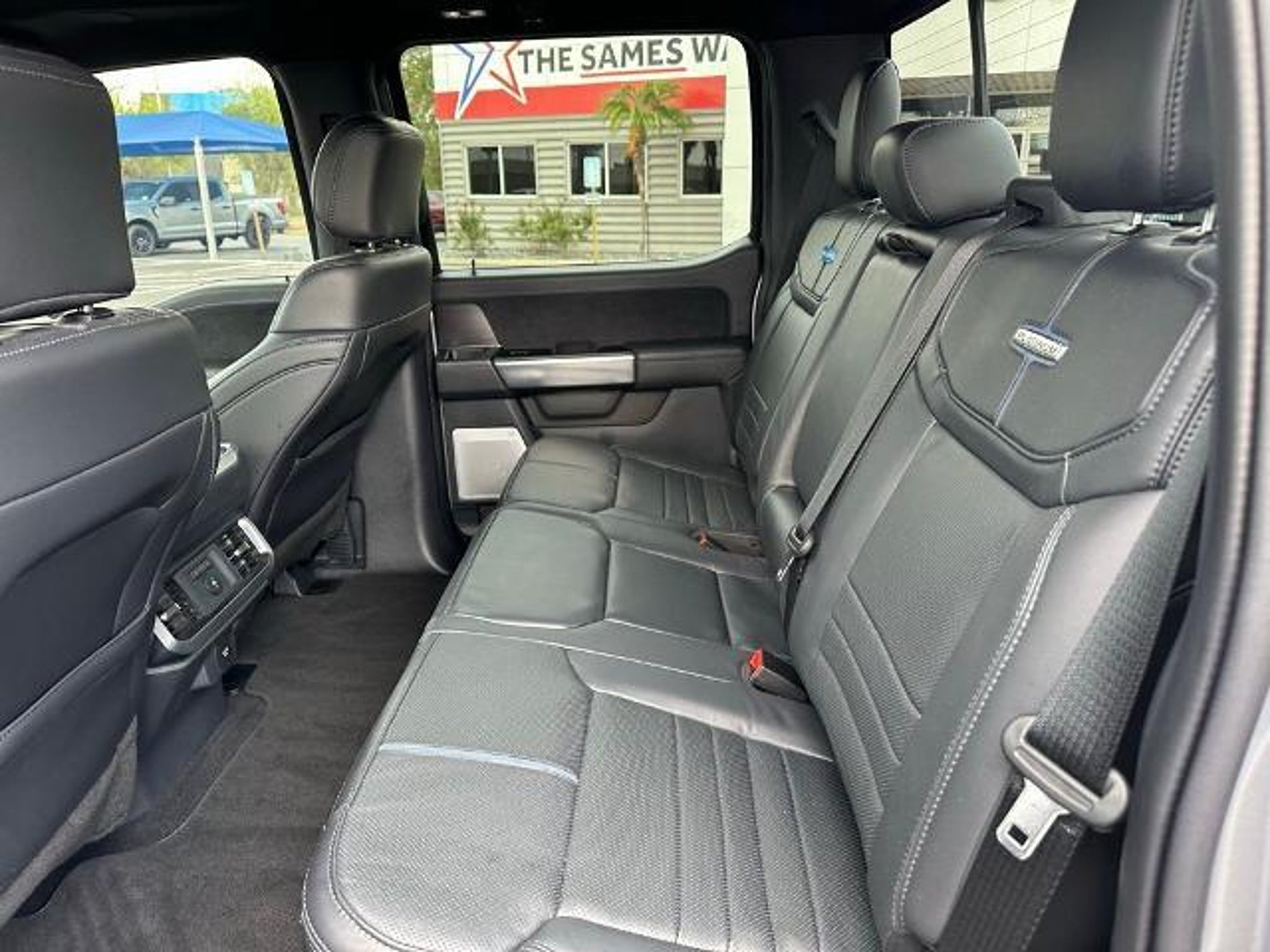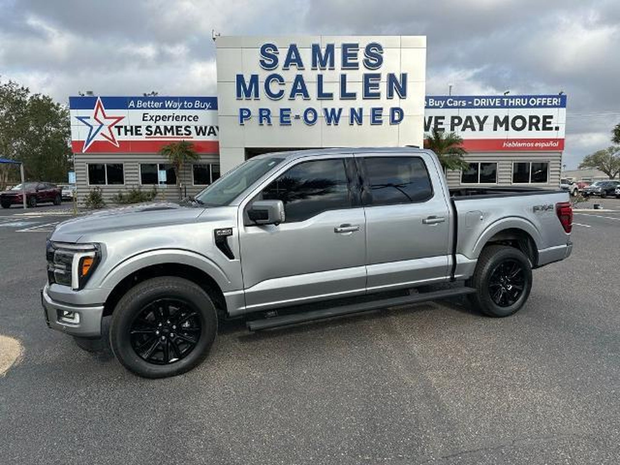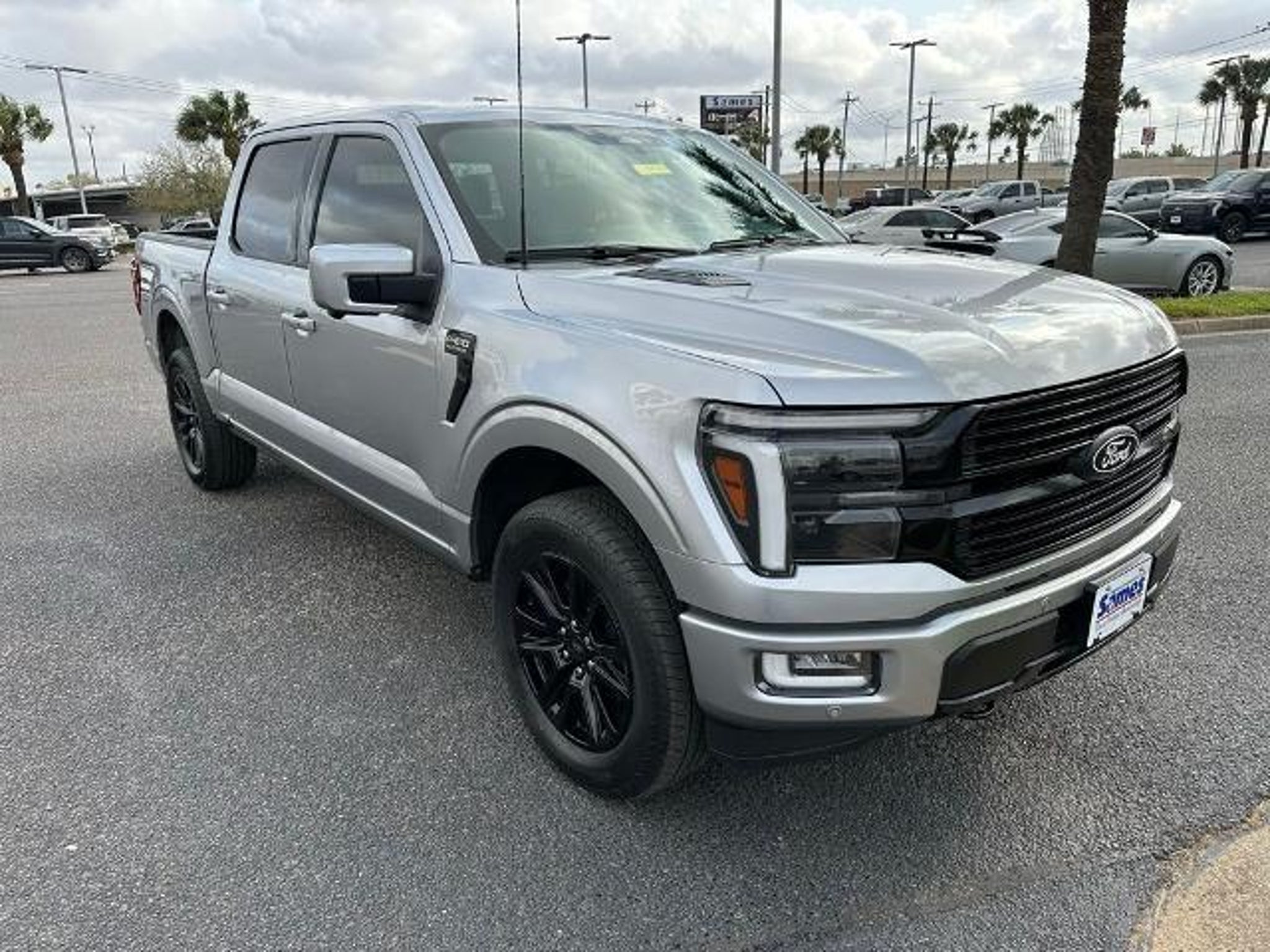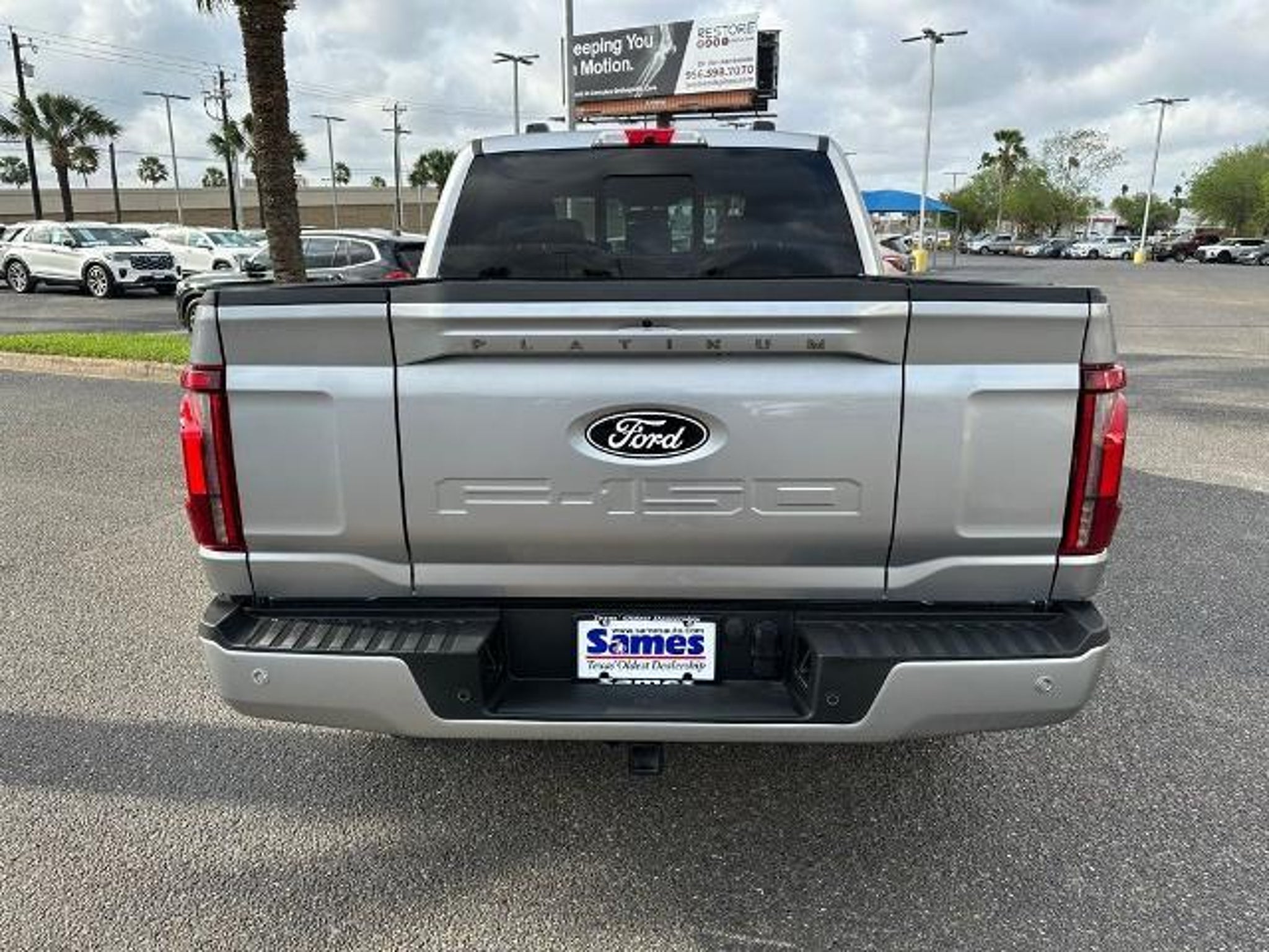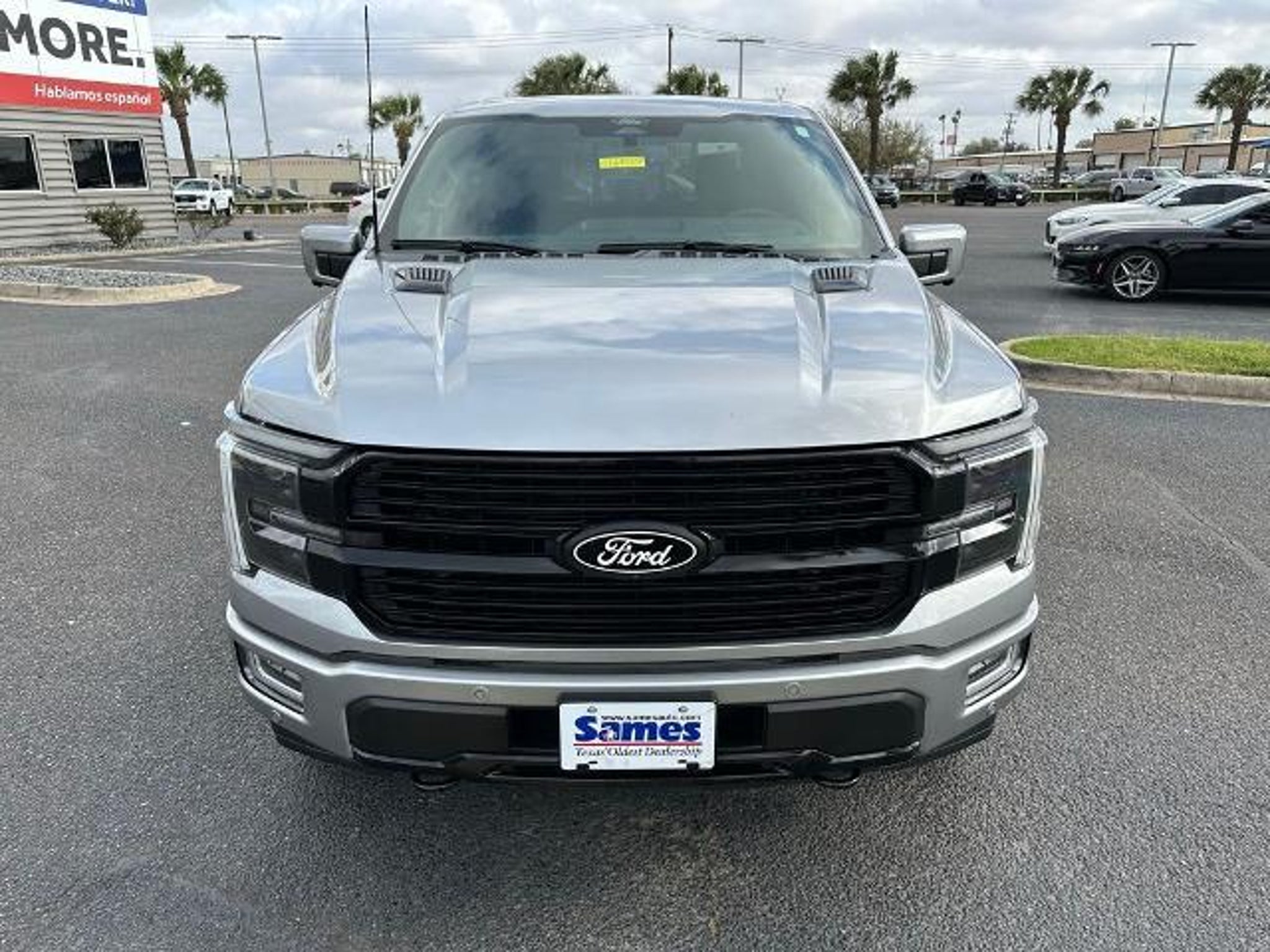 This 2025 Ford F-150 Platinum in Iconic Silver Metallic comes with the following features: 3.5L V6 EcoBoost 10-Speed Automatic 4WD Equipment Group 702A High (Heads-Up Display, Radio: B&O Unleashed Sound System by Bang & Olufsen, and Twin Panel Moonroof), FX4 Off-Road Package (4x4 FX4 Off-Road Bodyside Decal, Hill Descent Control, Monotube Rear Shocks, Off-Road Tuned Front Shock Absorbers, and Rock Crawl Mode), 4WD, 4-Wheel Disc Brakes, 8 Speakers, ABS brakes, Adjustable pedals, Air Conditioning, Alloy wheels, AM/FM radio: SiriusXM with 360L, Auto High-beam Headlights, Auto tilt-away steering wheel, Auto-dimming door mirrors, Auto-dimming Rear-View mirror, Automatic temperature control, Brake assist, Bumpers: body-color, Compass, Delay-off headlights, Driver door bin, Driver vanity mirror, Dual front impact airbags, Dual front side impact airbags, Electronic Locking w/3.55 Axle Ratio, Electronic Stability Control, Emergency communication system: SYNC 4 911 Assist, Front anti-roll bar, Front Bucket Seats, Front Center Armrest, Front dual zone A/C, Front fog lights, Front License Plate Bracket, Front reading lights, Front wheel independent suspension, Fully automatic headlights, Garage door transmitter, Heated door mirrors, Heated front seats, Heated rear seats, Heated steering wheel, Illuminated entry, Internet access capable: FordPass Connect 5G, Leather steering wheel, Low tire pressure warning, Memory seat, Navigation system: Connected Navigation, Occupant sensing airbag, Outside temperature display, Overhead airbag, Overhead console, Panic alarm, Passenger door bin, Passenger vanity mirror, Pedal memory, Power door mirrors, Power driver seat, Power passenger seat, Power steering, Power windows, Radio data system, Radio: B&O Sound System by Bang & Olufsen, Rain sensing wipers, Rear reading lights, Rear seat center armrest, Rear step bumper, Rear window defroster, Remote keyless entry, Security system, Speed control, Split folding rear seat, Steering wheel memory, Steering wheel mounted audio controls, SYNC 4 w/Enhanced Voice Recognition, Tachometer, Telescoping steering wheel, Tilt steering wheel, Traction control, Tray Style Floor Liner, Trip computer, Turn signal indicator mirrors, Unique Multi-Contour Leather Bucket Seats, Variably intermittent wipers, Ventilated front seats, Voltmeter, and Wheels: 20 Painted Gloss Ebony Black. Sames Auto Group stores have been in business for over 115 years, as part of the Oldest Auto Group in Texas we're committed to providing exceptional service before, during, a