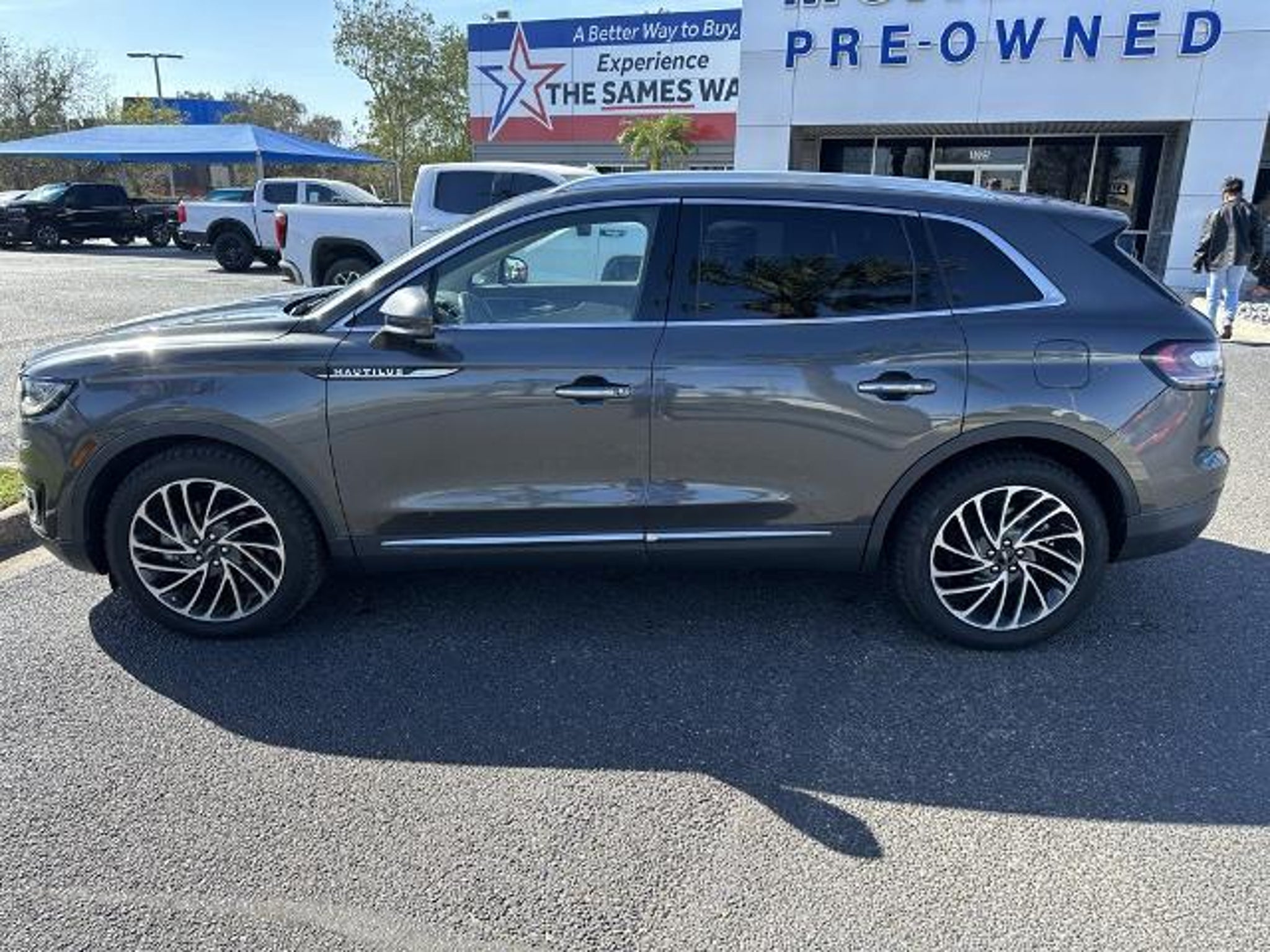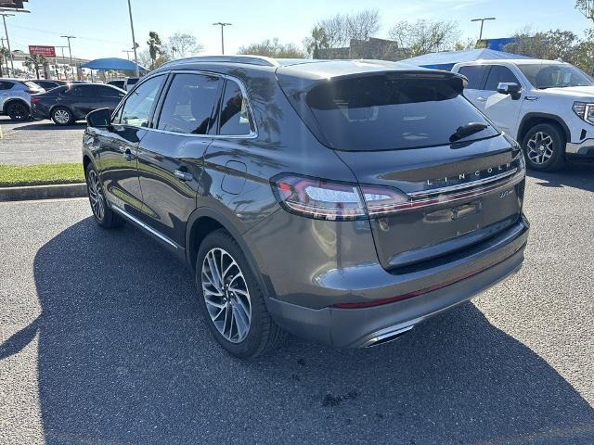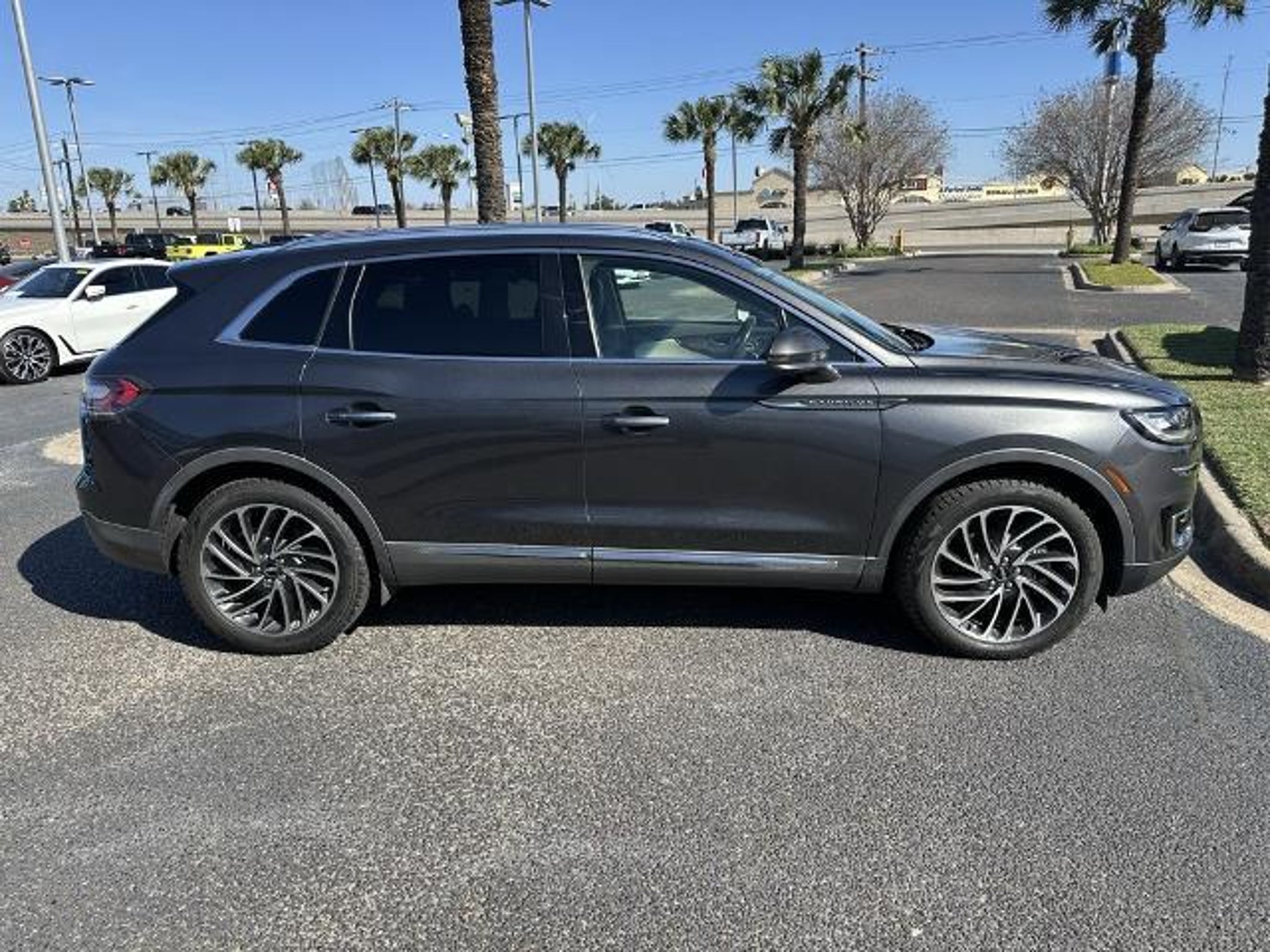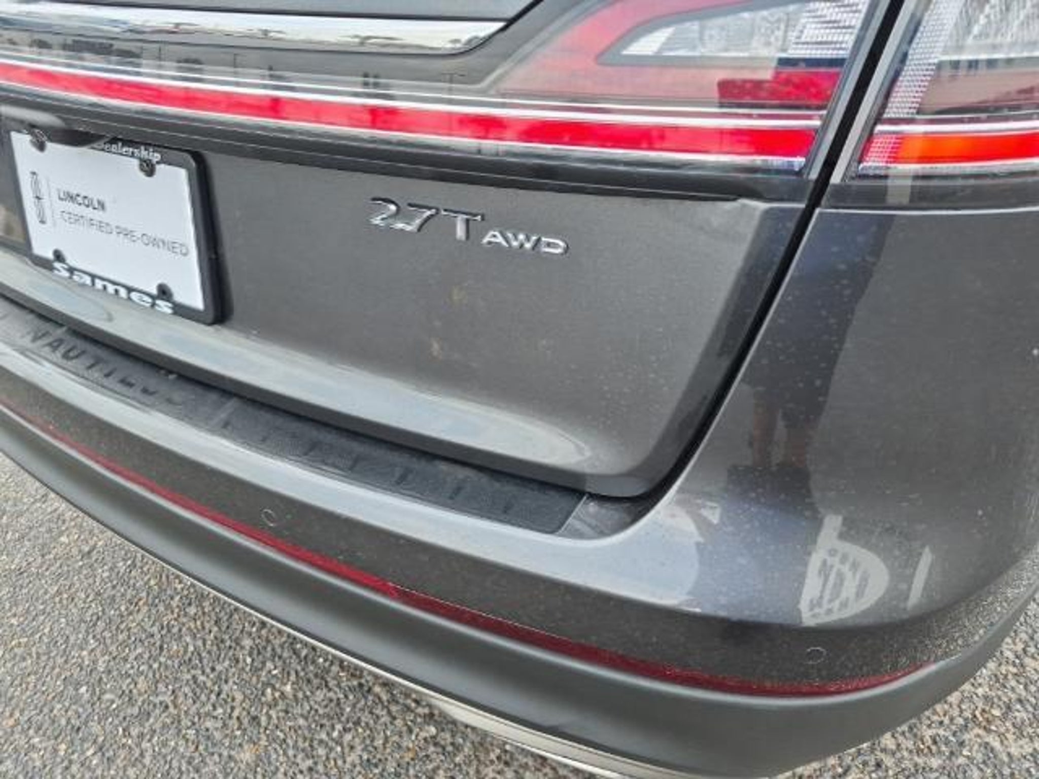 This 2020 Lincoln Nautilus Reserve in Magnetic Gray comes with the following features: 2.7L V6 Twin Turbocharged 8-Speed Automatic AWD Cargo Accessories and Mat Package (All-Weather Floor Liners, Durable Lightweight Rubber Cargo Mat, and Rear Bumper Anti-Scratch Pad/Load Protector), Cargo Utility Package (110V/150W AC Power Outlet, Cargo Compartment w/Reversible Mat, Interior Cargo Cover, Molded Plastic Storage Bins, and Rear Cargo Management System), Equipment Group 200A, Sames Certified Certified, 13 Speakers, 3.80 Axle Ratio, 4-Wheel Disc Brakes, ABS brakes, Adaptive suspension, Air Conditioning, Alloy wheels, AM/FM radio: SiriusXM, AppLink/Apple CarPlay and Android Auto, Auto High-beam Headlights, Auto tilt-away steering wheel, Auto-dimming door mirrors, Auto-dimming Rear-View mirror, Automatic temperature control, Brake assist, Bumpers: body-color, CD player, Compass, Delay-off headlights, Driver door bin, Driver vanity mirror, Dual front impact airbags, Dual front side impact airbags, Electronic Stability Control, Emergency communication system: 911 Assist, Exterior Parking Camera Rear, Four wheel independent suspension, Front anti-roll bar, Front Bucket Seats, Front Center Armrest w/Storage, Front dual zone A/C, Front fog lights, Front reading lights, Fully automatic headlights, Garage door transmitter: HomeLink, Genuine wood console insert, Genuine wood door panel insert, Heated door mirrors, Heated front seats, Heated rear seats, Heated steering wheel, Illuminated entry, Knee airbag, Leather steering wheel, Low tire pressure warning, Memory seat, Navigation System, Occupant sensing airbag, Outside temperature display, Overhead airbag, Overhead console, Panic alarm, Passenger door bin, Passenger vanity mirror, Power door mirrors, Power driver seat, Power Liftgate, Power moonroof: Panoramic Vista Roof, Power passenger seat, Power steering, Power windows, Prem Lthr-Trimmed Heated/Cooled Bucket Seats, Radio data system, Radio: Revel AM/FM/HD Audio System w/Single-CD, Rain sensing wipers, Rear anti-roll bar, Rear reading lights, Rear seat center armrest, Rear window defroster, Rear window wiper, Remote keyless entry, Satin Roof Rack Side Rails w/o Crossbars, Security system, Speed control, Speed-sensing steering, Speed-Sensitive Wipers, Split folding rear seat, Spoiler, Steering wheel memory, Steering wheel mounted A/C controls, Steering wheel mounted audio controls, SYNC 3 Communications & Entertainment System, Tachometer, Telescoping steering wheel, Tilt steering wheel, Traction control, Trip comput