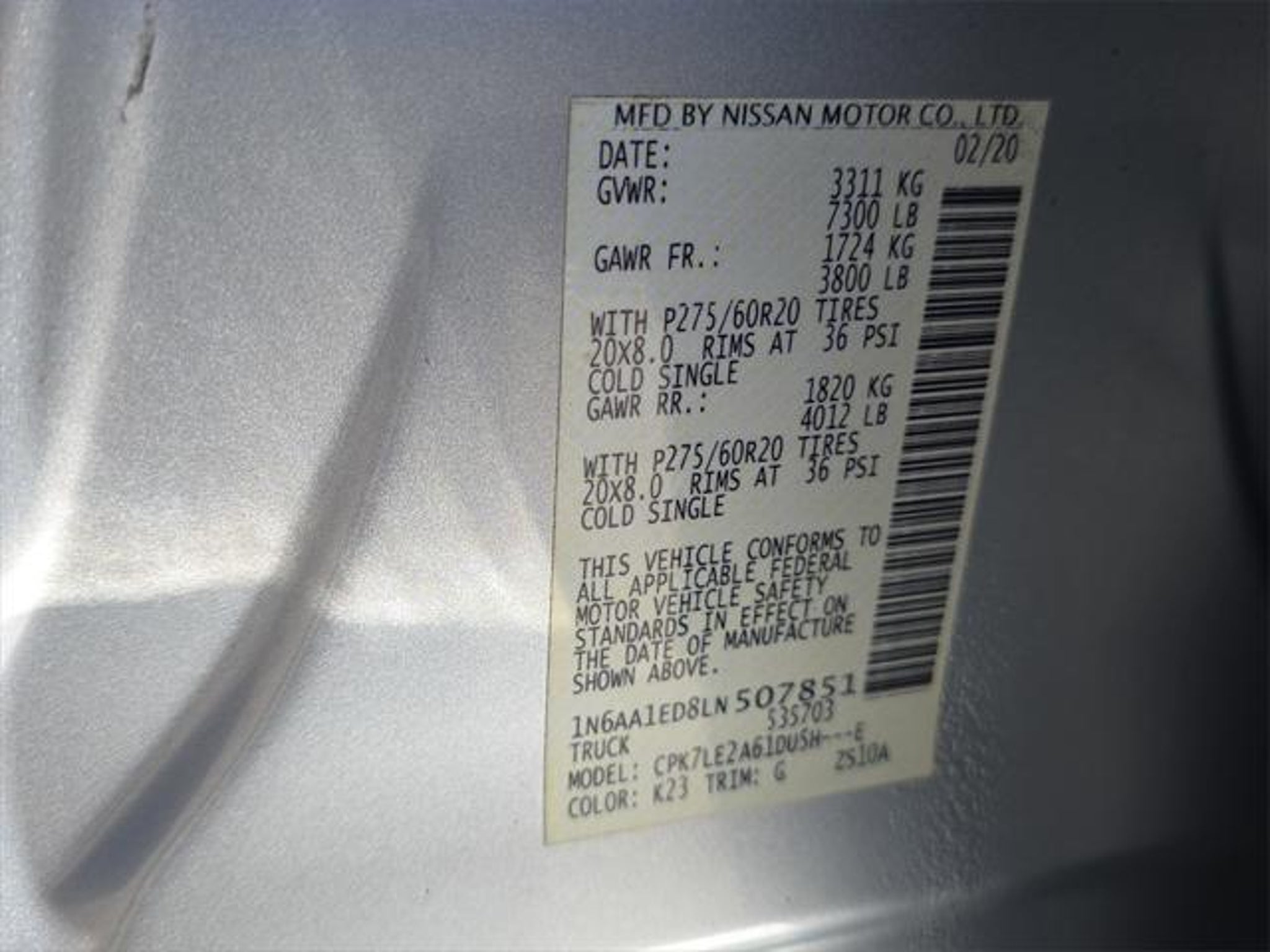 Details > 2020 Nissan Titan 4X4 SL 4DR Crew Cab 5.6 FT. SB For Sale in Perry, OK Private Party Sellers Click here to place your ad now! You auta tell them you saw the ad in AutaBuy when you call or email. 1/36 2/36 3/36 4/36 5/36 6/36 7/36 8/36 9/36 10/36 11/36 12/36 13/36 14/36 15/36 16/36 17/36 18/36 19/36 20/36 21/36 22/36 23/36 24/36 25/36 26/36 27/36 28/36 29/36 30/36 31/36 32/36 33/36 34/36 35/36 36/36 View 36 Photos View All Add to My Garage Parked in Your Garage! Seth Wadley Chevrolet GMC of Perry Contact Seller: I would like to: Make Offer Check Availability Ask A Question Request More Photos Check Financing Options Send a copy of this message to me Add this listing to my garage Send to Mobile Mileage 48,109 Exterior Color Brilliant Silver Metallic Interior Color Black Doors 4 Engine 5.6L V8 Transmission 9 Speed Auto Stock # AG1163 VIN 1N6AA1ED8LN507851 Estimated Monthly Payment $602 mo Apply Now J.J. Best Banc & Co. 2020 Nissan Titan 4X4 SL 4DR Crew Cab 5.6 FT. SB Description: Seth Wadley Chevrolet Buick GMC of Perry · Mileage: 48,109 · Color: Brilliant Silver Metallic Price: $34,598. Mileage 48,109 Exterior Color Brilliant Silver Metallic Interior Color Black Doors 4 Engine 5.6L V8 Transmission 9 Speed Auto Stock # AG1163 VIN 1N6AA1ED8LN507851 Estimated Monthly Payment $602 mo Apply Now J.J. Best Banc & Co. Add to My Garage Parked in Your Garage! Message Seller Seth Wadley Chevrolet GMC of Perry Contact Seller: I would like to: Make Offer Check Availability Ask A Question Request More Photos Check Financing Options Send a copy of this message to me Add this listing to my garage Offered for sale by Seth Wadley Chevrolet GMC of Perry PERRY, OK Price: $34,598. Offered for sale by Seth Wadley Chevrolet GMC of Perry PERRY, OK [entire inventory] Ask Auta Intelligence The first collector-car AI built directly into a classic car marketplace How easy are parts to find for this model? What size tires does this run from the factory? Can you show me more imports for a similar price? What transmission options did these offer? What colors did these come in? What engine options did these come with? Where is this located? What kind of mileage do these get? What trim levels were available for this model? How many of these were produced? How far is this from me? Tell me about this model How many Titans were produced in Brilliant Silver Metallic? What's the typical towing capacity in this configuration? When was this model first introduced? What does this VIN number tell me? What factory options were available on this model? Do you have a similar car to sell? List It Now! Questions about this car? Ask Auta Intelligence for production numbers, available options, etc. · Subscribe to AutaBuy! · Send a Gift Subscription Notice to a Friend
