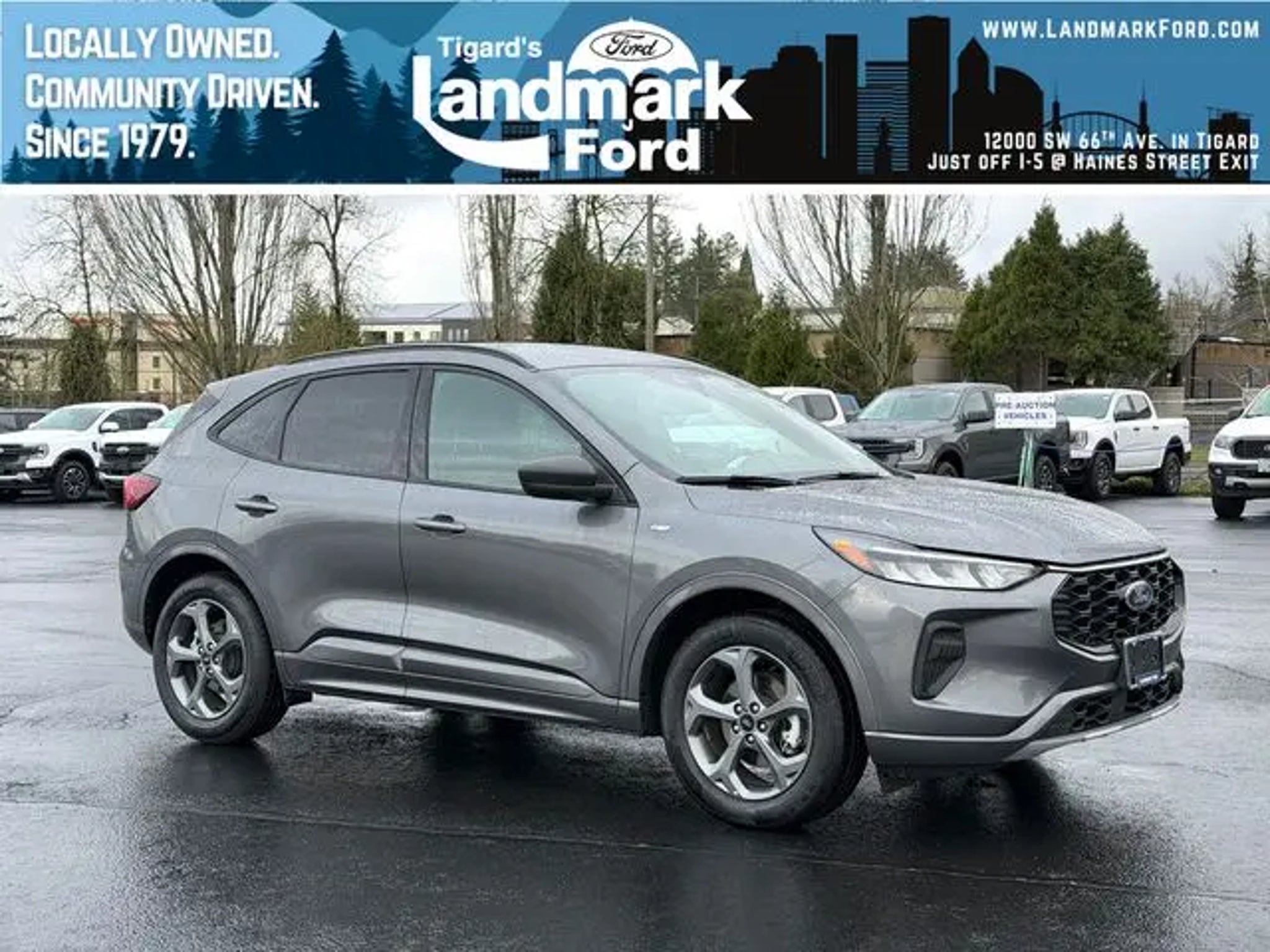 Call us today to schedule your VIP Test Drive! This 2024 Gray Metallic Ford Escape ST-Line FWD is well equipped and includes these features and benefits: Equipment Group 300A, Air Conditioning, AM/FM radio: SiriusXM, Automatic temperature control, Front dual zone A/C, Fully automatic headlights, Power driver seat, Power Liftgate, Power steering, Power windows, Rear window defroster, Remote keyless entry, Steering wheel mounted audio controls, 3.81 Axle Ratio, 4-Wheel Disc Brakes, 6 Speakers, ABS brakes, Alloy wheels, AM/FM Stereo, Auto High-beam Headlights, Brake assist, Bumpers: body-color, Compass, Delay-off headlights, Driver door bin, Driver vanity mirror, Dual front impact airbags, Dual front side impact airbags, Electronic Stability Control, Emergency communication system: SYNC 4 911 Assist, Exterior Parking Camera Rear, FordPass Connect, Four wheel independent suspension, Front anti-roll bar, Front Bucket Seats, Front Center Armrest, Front License Plate Bracket, Front reading lights, Illuminated entry, Knee airbag, Low tire pressure warning, Occupant sensing airbag, Outside temperature display, Overhead airbag, Overhead console, Panic alarm, Passenger door bin, Passenger vanity mirror, Power door mirrors, Radio data system, Rear anti-roll bar, Rear reading lights, Rear seat center armrest, Rear window wiper, Roof rack: rails only, Speed control, Speed-sensing steering, Speed-Sensitive Wipers, Split folding rear seat, Spoiler, Sport steering wheel, SYNC 4, Tachometer, Telescoping steering wheel, Tilt steering wheel, Traction control, Trip computer, Variably intermittent wipers, Vinyl/Cloth Front Sport Contour Bucket Seats, and Wheels: 18 Rock Metallic Painted Aluminum. Air Conditioning, AM/FM radio: SiriusXM, Automatic temperature control, Equipment Group 300A, Front dual zone A/C, Fully automatic headlights, Power driver seat, Power Liftgate, Power steering, Power windows, Rear window defroster, Remote keyless entry, Steering wheel mounted audio controls. 27/34 City/Highway MPG