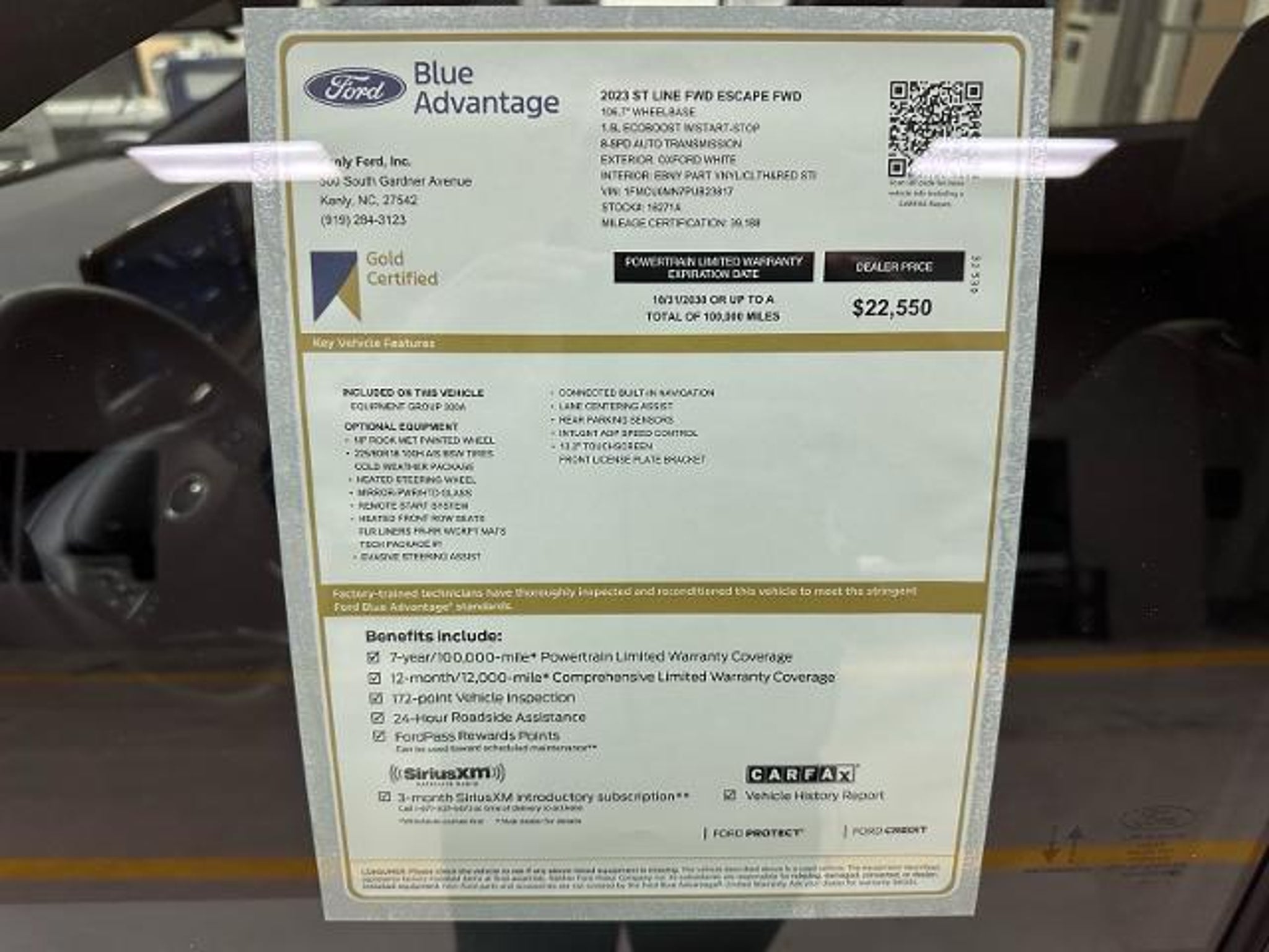 *** Please call, text, or visit JOE HUSICK at x227 or mobile (919) 795-9577 up to 9PM *** EXCELLENT CONDITION and recently serviced with new engine air and cabin air filters, new wiper blades, 4-new tires, and includes 2-keys/remotes. Includes a factory Cold Weather & Tech Package 1 with intelligent adaptive cruise control, 13.2-inch touchscreen, heated front seats, heated steering wheel, evasive steering assist, and more ....................................................................................................................................................... ............................................................................................................................ *** With twenty years experience here at Kenly Ford I assure you the highest level of integrity and professionalism. Extra effort has been made to provide accurate and reliable details and multiple photos showing the actual vehicle in natural light when possible. Ad space is limited but my time is not so please ask for me by name when calling or visiting. Thank you! Joe Husick***