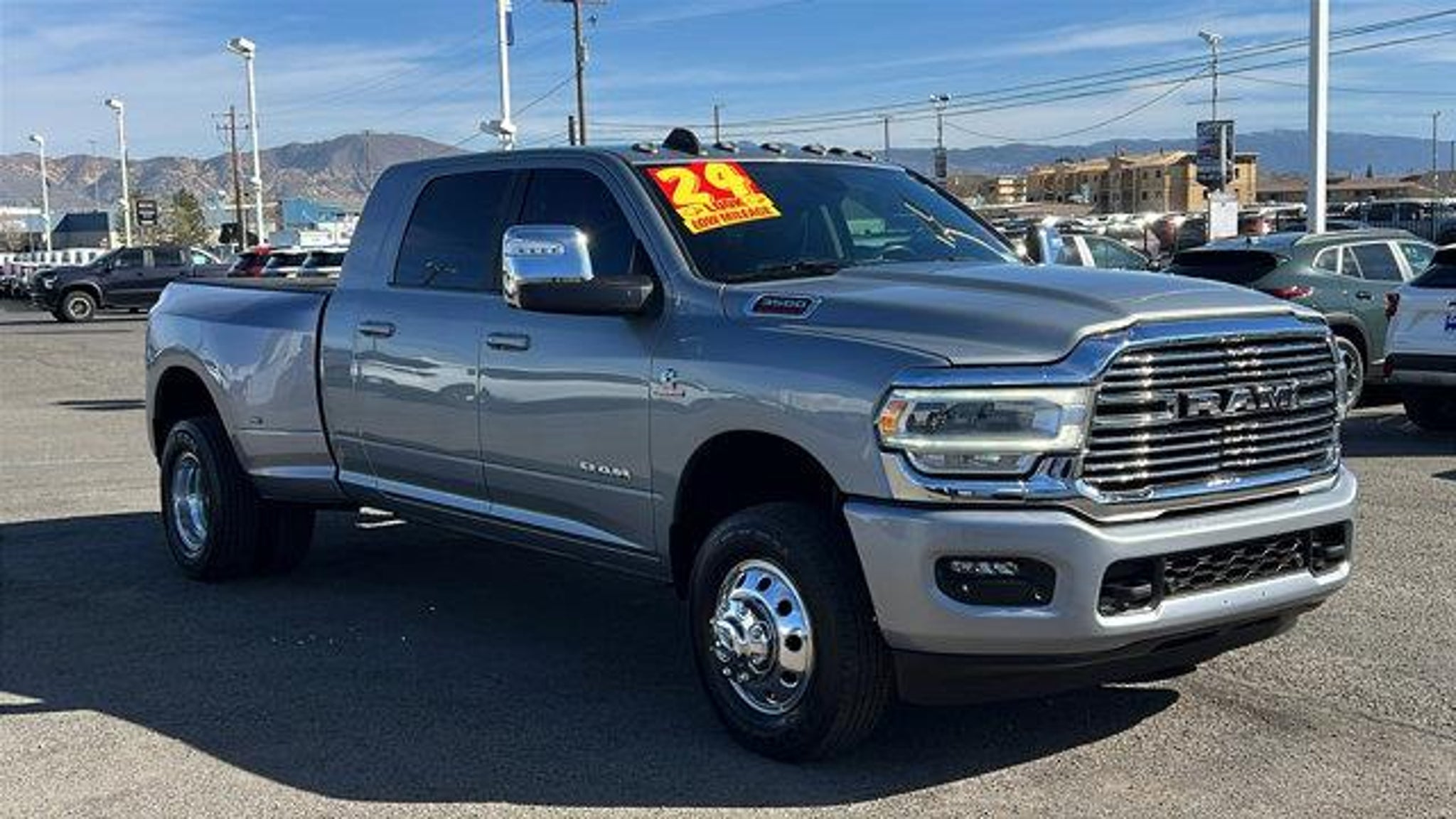 Introducing the 2024 Ram 3500 Laramie Mega Cab 4x4, a powerhouse designed for both performance and luxury. This striking model showcases a billet silver metallic clearcoat exterior that captures the eye, paired with a sophisticated black interior that exudes elegance. Under the hood, you'll find a robust Cummins high output 6.7L I-6 diesel engine, featuring advanced direct injection and VVT intercooled turbo technology, delivering an impressive 420 horsepower. This formidable engine ensures exceptional towing capabilities and unparalleled efficiency, making it the perfect choice for heavy-duty tasks and weekend adventures alike. The Mega Cab design offers ample space and comfort for all passengers, ensuring a smooth ride whether you're on the job or hitting the open road. With its 4x4 capability, this Ram 3500 is engineered to conquer any terrain, providing reliability and confidence in all driving conditions. Elevate your driving experience with the 2024 Ram 3500 Laramie Mega Cab. It's not just a truck; it's a statement of strength, capability, and refined taste. Don't miss out on the opportunity to own this exceptional vehicle.