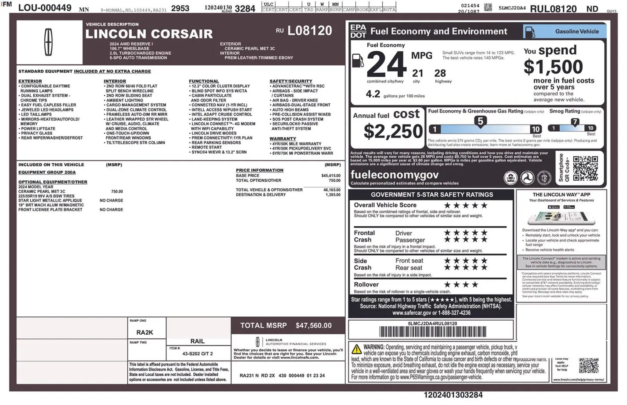 Recent Arrival! New Price! --ONE OWNER--, --NO ACCIDENTS - CLEAN VEHICLE HISTORY--, --GREAT SERVICE HISTORY--, 19 Bright Machined Aluminum Wheels, Apple CarPlay/Android Auto, Automatic temperature control, Equipment Group 200A, Front dual zone A/C, Heated front seats, Lane Departure Warning System, Navigation system: Connected Navigation (3-year trial), Power Liftgate, Rear Parking Sensors. 2024 Lincoln Corsair Reserve Ceramic Pearl Metallic Tri-Coat AWD 8-Speed Automatic 2.0L I4 21/28 City/Highway MPG WHY BUY FROM US: Freeway Ford in MN has a strong and committed sales staff with many years of experience satisfying our customers needs. Freeway Ford is located in the heart of Bloomington, MN. We are about 3 miles from the Mall Of America. We have been providing Quality Care in our sales and servicing of Ford cars and trucks for over 40 years. Please confirm the accuracy of the included equipment by calling us prior to purchase.