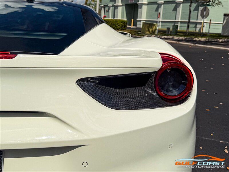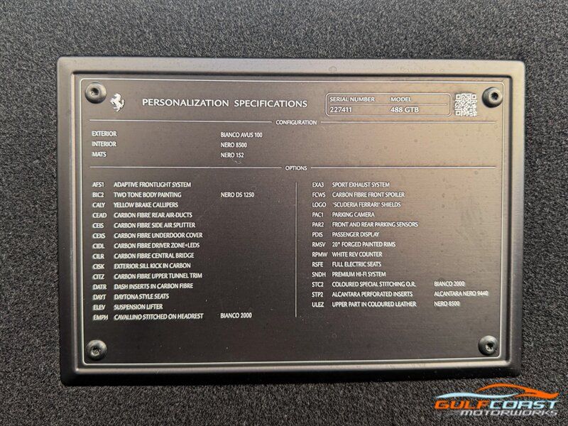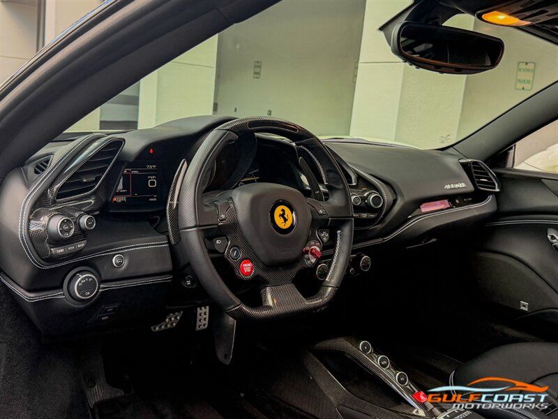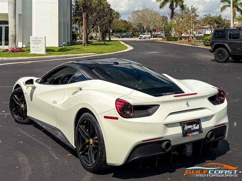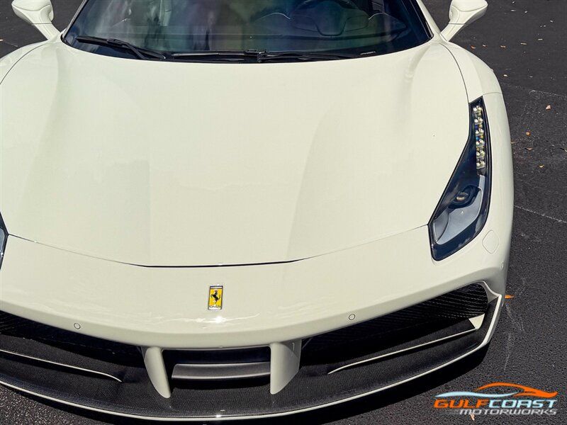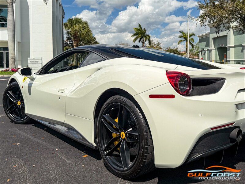"2017 Ferrari 488 GTB. Bianco Avus Exterior with Nero Leather Interior. Features Include: 660 Horsepower Twin Turbo 3.9L V8 Engine, Seven-Speed Dual Clutch Automatic Transmission, Magnetic Suspension Damping, 20"" 10-Spoke Wheels in a Black Finish, Yellow Calipers, Two Tone Body Painting, Carbon Fiber Rear Air Ducts, Carbon Fiber Side Air Splitter, Carbon Fiber Under-Door Cover, Exterior Sill Kick in Carbon Fiber, Suspension Lifter, Sport Exhaust System, Carbon Fiber Front Spoiler, Scuderia Ferrari Shields, Adaptive Front Light System, LED Tail Lights, LED DRLs, Carbon Fiber Driver Zones + LEDS, Carbon Fiber Central Bridge, Carbon Fiber Upper Tunnel Trim, Dash Inserts in Carbon Fiber, Daytona Style Seats, Cavallino Stitched on Head Rests, Passenger Display, White Rev Counter, Full Electric Seats, Colored Special Stitching, Alcantara Perforated Inserts, Upper Part in Colored Leather, Parking Camera, Front & Rear Parking Sensors, Power Folding Outside Mirrors, Keyless Access & Ignition with Push Button Start, Smartphone Integration, Bluetooth, Navigation, HomeLink. Priced at only $279,995.00. Financing available. We ship worldwide. We pay top dollar for lightly used sports cars! Call or text our Product Specialists today at 239-522-2262 or email us at sales@gcmworks.com. Fees and Taxes: $1199.00 Doc Fee on all Purchases. Out of state buyers are responsible for all state, county, city taxes and fees, as well as title/registration fees in the state that the vehicle will be registered. -- INSTALLED FEATURES: Air filtration, Front air conditioning: automatic climate control, Front air conditioning zones: dual, Airbag deactivation: passenger switch, Front airbags: dual, Side airbags: front, Antenna type: diversity / element, Auxiliary audio input: Bluetooth / iPod/iPhone / jack / USB, Hard drive: 30GB, In-Dash CD: DVD audio / MP3 Playback / single disc, Premium brand: JBL, Radio: AM/FM / touch screen display / voice operated, Radio data system, Satellite radio: SiriusXM, Speed sensitive volume control, Subwoofer: 1, Total speakers: 12, Watts: 1280, ABS: 4-wheel, Electronic brakeforce distribution, Electronic parking brake, Front brake type: carbon ceramic disc, Power brakes, Premium brakes: Brembo, Rear brake type: carbon ceramic disc, Center console trim: leather, Dash trim: leather, Door sill trim: aluminum, Door trim: leather, Floor mat material: carpet, Floor material: carpet, Floor mats: front, Foot pedal trim: aluminum, Interior accents: aluminum, Steering wheel trim: alloy / leather, Cargo area light, Center console: front console with armrest and storage, Cruise control, Cupholders: front, Multi-function remote: keyless entry / panic alarm / trunk release, One-touch windows: 2, Power outlet(s): 12V front, Power steering: variable/speed-proportional, Power windows: lockout button, Push-button start, Reading lights: front, Rearview mirror: manual day/night, Steering wheel: tilt and telescopic, Steering wheel mounted controls: audio / paddle shifter / phone, Storage: door pockets, Tool kit, Vanity mirrors: passenger, Door handle color: body-color, Exhaust: dual tip, Exhaust tip color: stainless steel, Front bumper color: body-color, Grille color: black, Ground effects/lower spoilers, Mirror color: body-color, Rear bumper color: body-color, Rear spoiler: lip, Rear spoiler color: body-color, Window trim: black, Smartphone integration: Apple CarPlay, Clock, Compass, Customizable instrument cluster, Digital odometer, External temperature display, Fuel economy display: MPG / range, Gauge: tachometer, Instrument cluster screen size: 5 in. (dual), Multi-function display, Trip odometer, Warnings and reminders: coolant temperature warning / lamp failure / low battery / low fuel level / low oil pressure / low washer fluid / maintenance due, Daytime running lights: LED, Headlight cleaners, Headlights: auto delay off / auto on/off / HID/Xenon / self-leveling, Rear fog lights, Taillights: LED, Side mirror adjustments: power / power folding, Side mirrors: heated, Auto start/stop, Battery: maintenance-free, Battery saver, Drive mode selector, Limited slip differential: rear, Mid-mounted engine, Automatic hazard warning lights, Crumple zones: front / rear, Emergency interior trunk release, Impact sensor: fuel cut-off, Parking sensors: rear, Emergency locking retractors: front, Front seatbelts: 3-point, Seatbelt force limiters: front, Seatbelt pretensioners: front, Seatbelt warning sensor: front, Driver seat manual adjustments: 4 / reclining, Front headrests: 2 / integrated, Front seat type: sport bucket, Passenger seat manual adjustments: 4 / reclining, Upholstery: premium leather, Anti-theft system: alarm / interior motion sensor / perimeter alarm / vehicle immobilizer, Power door locks: auto-locking, Stability control, Traction control, Active suspension, Driver adjustable suspension: ride control, Front shock type: monotube, Front spring type: coil, Front stabilizer bar, Front struts, Front suspension classification: independent, Front suspension type: double wishbone, Rear shock type: monotube, Rear spring type: coil, Rear stabilizer bar, Rear suspension classification: independent, Rear suspension type: multi-link, Suspension control: magnetic, Tuned suspension: sport, Electronic messaging assistance: voice operated / with read function, Navigation system: hard drive / touch screen display / voice operated, Wireless data link: Bluetooth, Spare tire kit: inflator kit / tire sealant, Tire Pressure Monitoring System, Wheels: aluminum alloy, Front wipers: rain sensing / variable intermittent, Power windows: safety reverse, Tinted glass, Window defogger: rear"