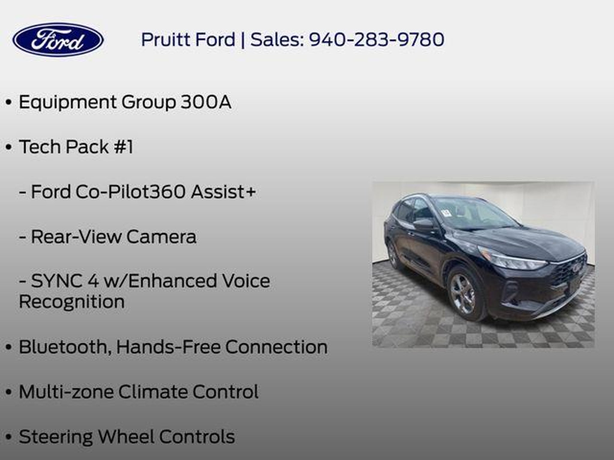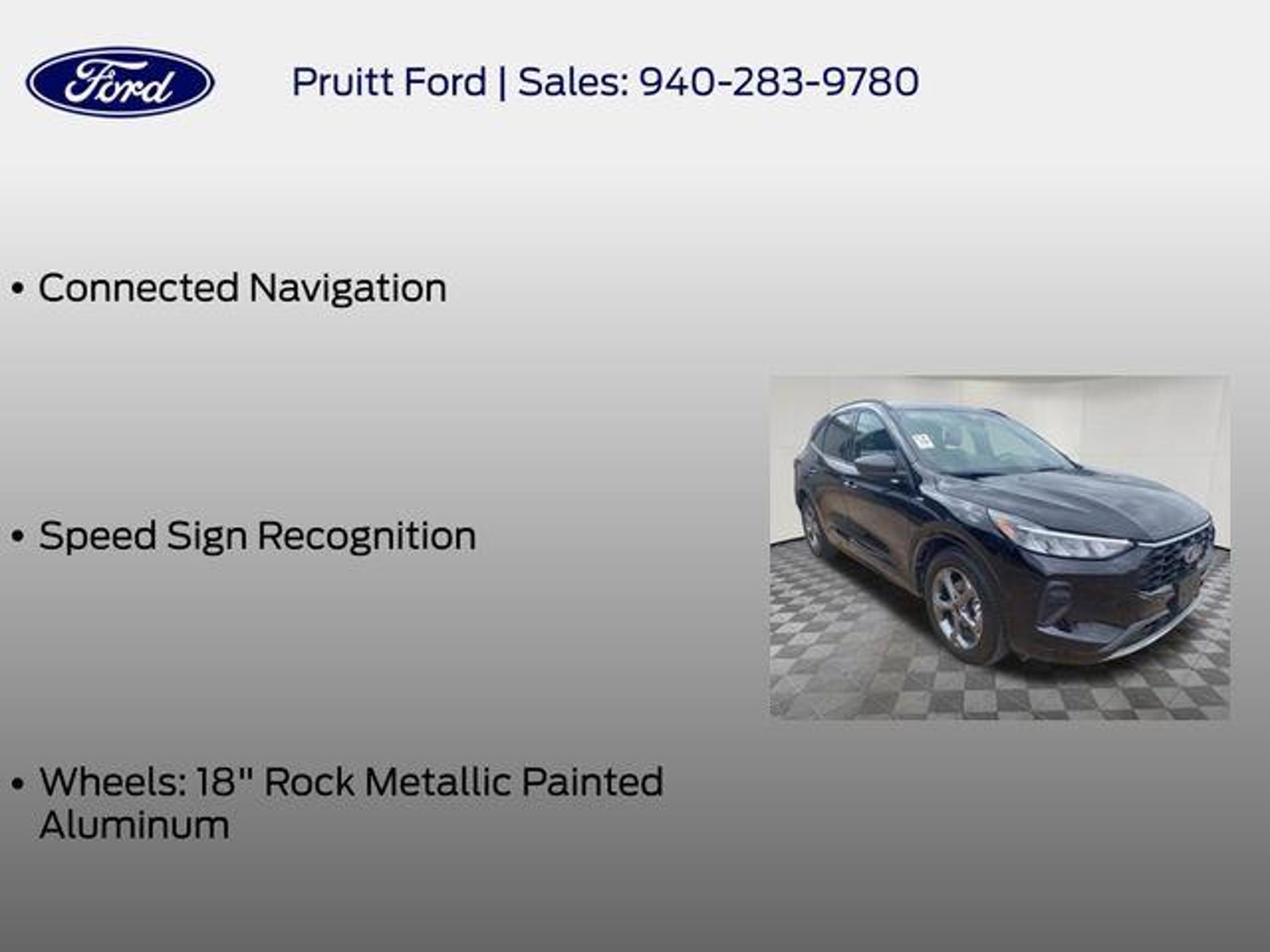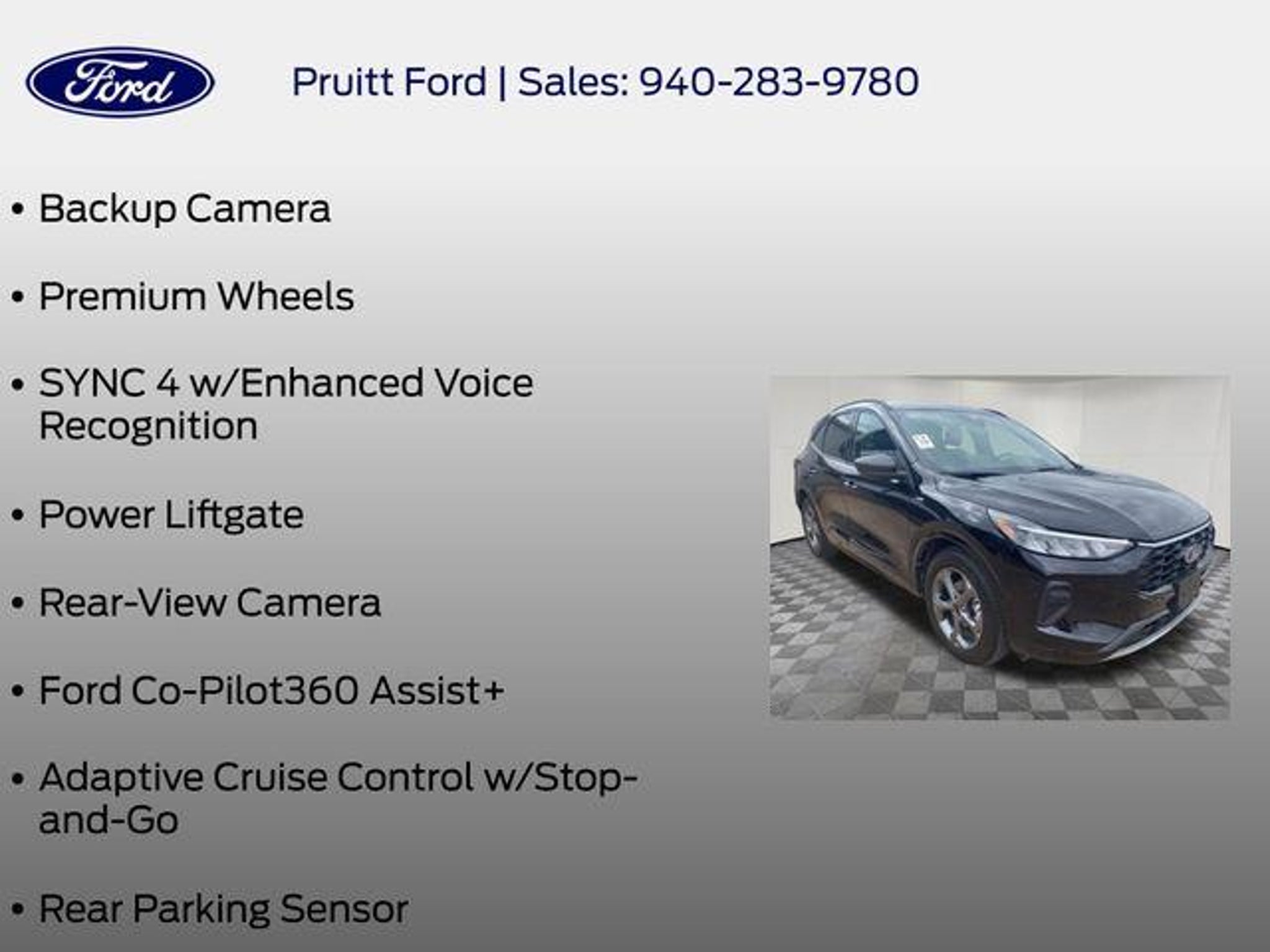 Experience the exceptional performance and advanced technology of the 2024 Ford Escape ST-Line. This dynamic SUV is designed to elevate your driving experience with its stunning good looks, impressive capabilities, and cutting-edge features. - Bluetooth, Hands-Free Connection - Multi-zone Climate Control - Steering Wheel Controls - Backup Camera - Premium Wheels - SYNC 4 with Enhanced Voice Recognition - Power Liftgate - Rear-View Camera - Ford Co-Pilot360 Assist - Adaptive Cruise Control with Stop-and-Go - Connected Navigation - Rear Parking Sensor - Speed Sign Recognition - Wheels: 18 Rock Metallic Painted Aluminum Beneath the sleek exterior, the 2024 Escape ST-Line is powered by a spirited 1.5L EcoBoost engine, delivering an exhilarating 27 city/34 highway mpg. This dynamic SUV combines responsive handling with exceptional efficiency, making every drive a true pleasure. Step inside the 2024 Escape ST-Line and experience the latest in automotive technology. The SYNC 4 infotainment system with 13.2 LCD touchscreen puts a world of connectivity at your fingertips, seamlessly integrating your smart devices and providing advanced voice recognition. The Ford Co-Pilot360 Assist suite of driver-assist technologies, including Adaptive Cruise Control with Stop-and-Go and Speed Sign Recognition, helps keep you safe and confident on the road. Comfort and convenience are also hallmarks of the Escape ST-Line. Enjoy the premium Vinyl/Cloth Front Sport Contour Bucket Seats, Multi-zone Climate Control, and a host of other thoughtful features that make every journey more enjoyable. The 2024 Ford Escape ST-Line is a true standout in the compact SUV segment, blending dynamic performance, cutting-edge technology, and exceptional style. Experience the difference for yourself â schedule a test drive today and discover why the Escape ST-Line should be your next vehicle.