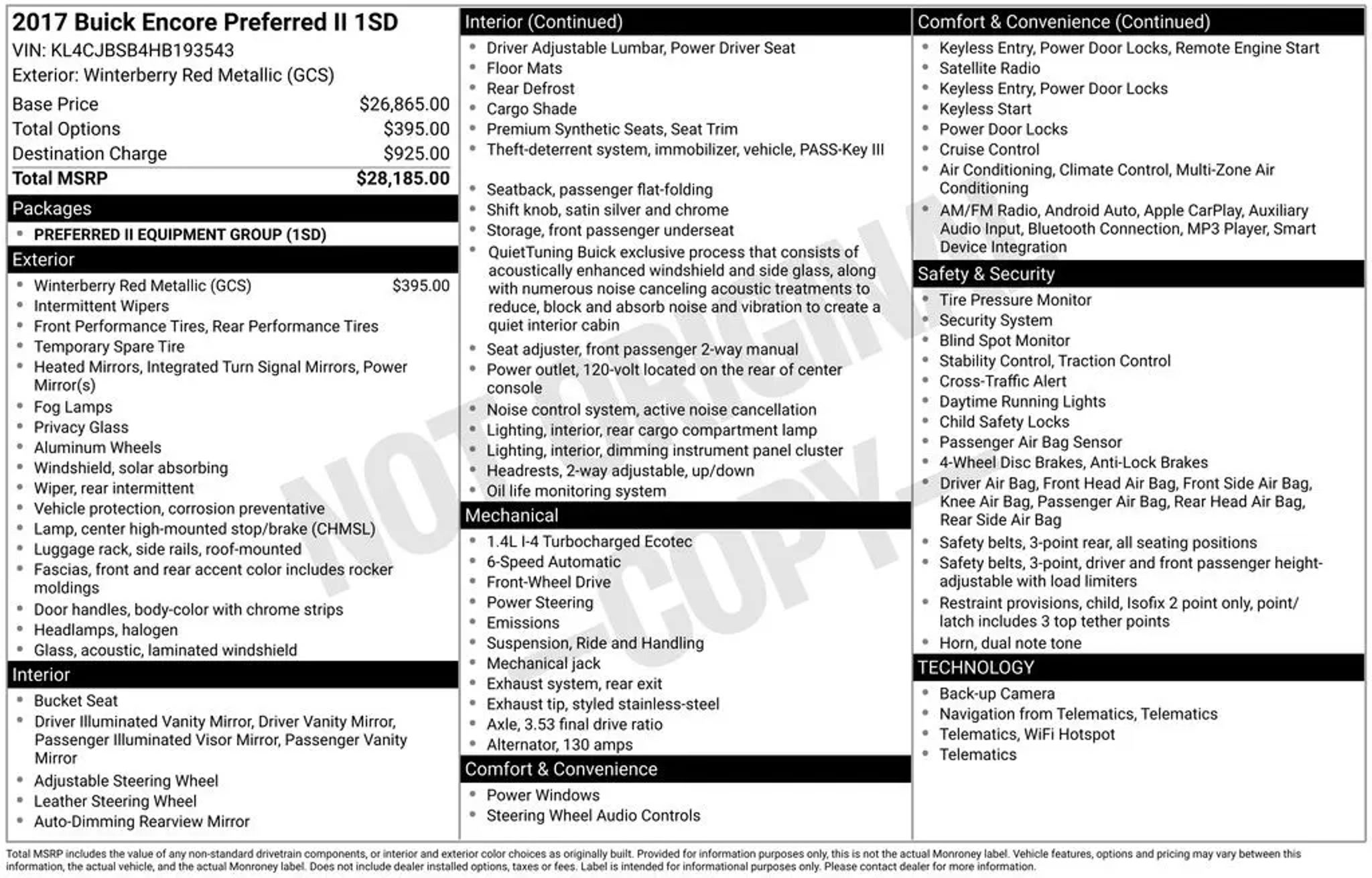 BLUETOOTH, SIRIUS XM SATELLITE RADIO, APPLE CARPLAY, GOOGLE ANDROID AUTO, STEERING WHEEL AUDIO CONTROLS, BACKUP CAMERA, WI-FI HOTSPOT, KEYLESS PUSH BUTTON START, POWER DRIVER SEAT, REMOTE START, ALL WEATHER FLOOR MATS, PREFERRED II SERIES, PREFERRED EQUIPMENT PACKAGE 1SD, 18 ALUMINUM WHEELS, 6 SPEAKERS, AIR CONDITIONING, AUTOMATIC TEMPERATURE CONTROL, BRAKE ASSIST, COMPASS, DRIVER VANITY MIRROR, EMERGENCY COMMUNICATION SYSTEM: ONSTAR GUIDANCE, FRONT DUAL ZONE A/C, FRONT FOG LIGHTS, HEATED DOOR MIRRORS, LOW TIRE PRESSURE WARNING, OCCUPANT SENSING AIRBAG, PANIC ALARM, POWER DOOR MIRRORS, POWER WINDOWS, PREMIUM AUDIO SYSTEM: INTELLILINK, REAR CROSS-TRAFFIC ALERT, REAR SEAT CENTER ARMREST, REAR WINDOW DEFROSTER, REAR WINDOW WIPER, REMOTE KEYLESS ENTRY, SPEED CONTROL, SPEED-SENSING STEERING, TELESCOPING STEERING WHEEL, TILT STEERING WHEEL, TURN SIGNAL INDICATOR MIRRORS, VARIABLY INTERMITTENT WIPERS.
