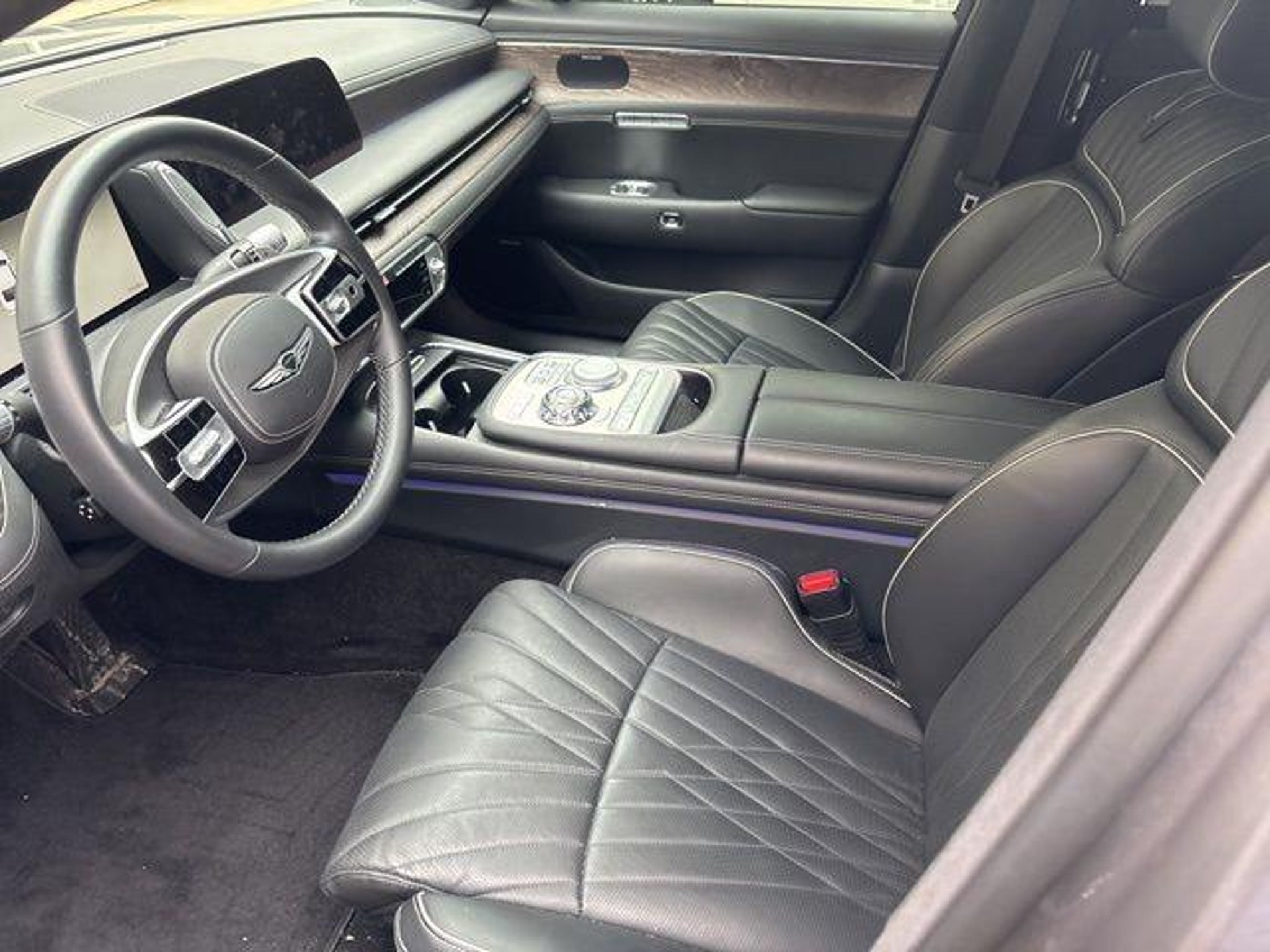 Elevate your driving experience with this exceptional 2023 Genesis G90 3.5T. Meticulously crafted to deliver unparalleled comfort, performance, and sophistication, this luxurious sedan is the embodiment of refined elegance. Boasting a stunning Savile Silver exterior, this G90 is equipped with a host of premium features that cater to your every need: - Navigation System - 15 Speakers - Adaptive Suspension - Heads-Up Display - Nappa Leather Seating Surfaces - Heated & Ventilated Front Bucket Seats - Genuine Wood Accents - Rear Window Blind Powered by a robust V6 engine and paired with an 8-speed automatic transmission, this all-wheel-drive G90 delivers a thrilling and responsive driving experience. With an impressive EPA-estimated 18 MPG in the city and 26 MPG on the highway, you can enjoy the open road with confidence. Stepping inside, you'll be enveloped in a cabin of uncompromising craftsmanship. The Nappa leather seating surfaces and genuine wood accents create an ambiance of refined elegance, while the 15-speaker Bang & Olufsen premium audio system provides an immersive listening experience. The Heads-Up Display keeps critical information within your line of sight, ensuring you stay focused and in control. Designed with your comfort and convenience in mind, the G90 offers a wealth of advanced features, including a power moonroof, heated and ventilated front seats, and a heated steering wheel. The adaptive suspension system seamlessly adapts to the road conditions, providing a smooth and composed ride, while the Genesis Connected Services offer a suite of connected services to keep you informed and entertained. Safety is paramount in the G90, with a comprehensive suite of advanced driver-assistance technologies, including Automatic Emergency Braking, Blind Spot Monitoring, and Rear Cross-Traffic Alert, ensuring your peace of mind on every journey. Elevate your driving experience and discover the exceptional craftsmanship and sophisticated features of the 2023 Genesis G90 3.5T. Schedule a test drive today and experience the true essence of luxury.
