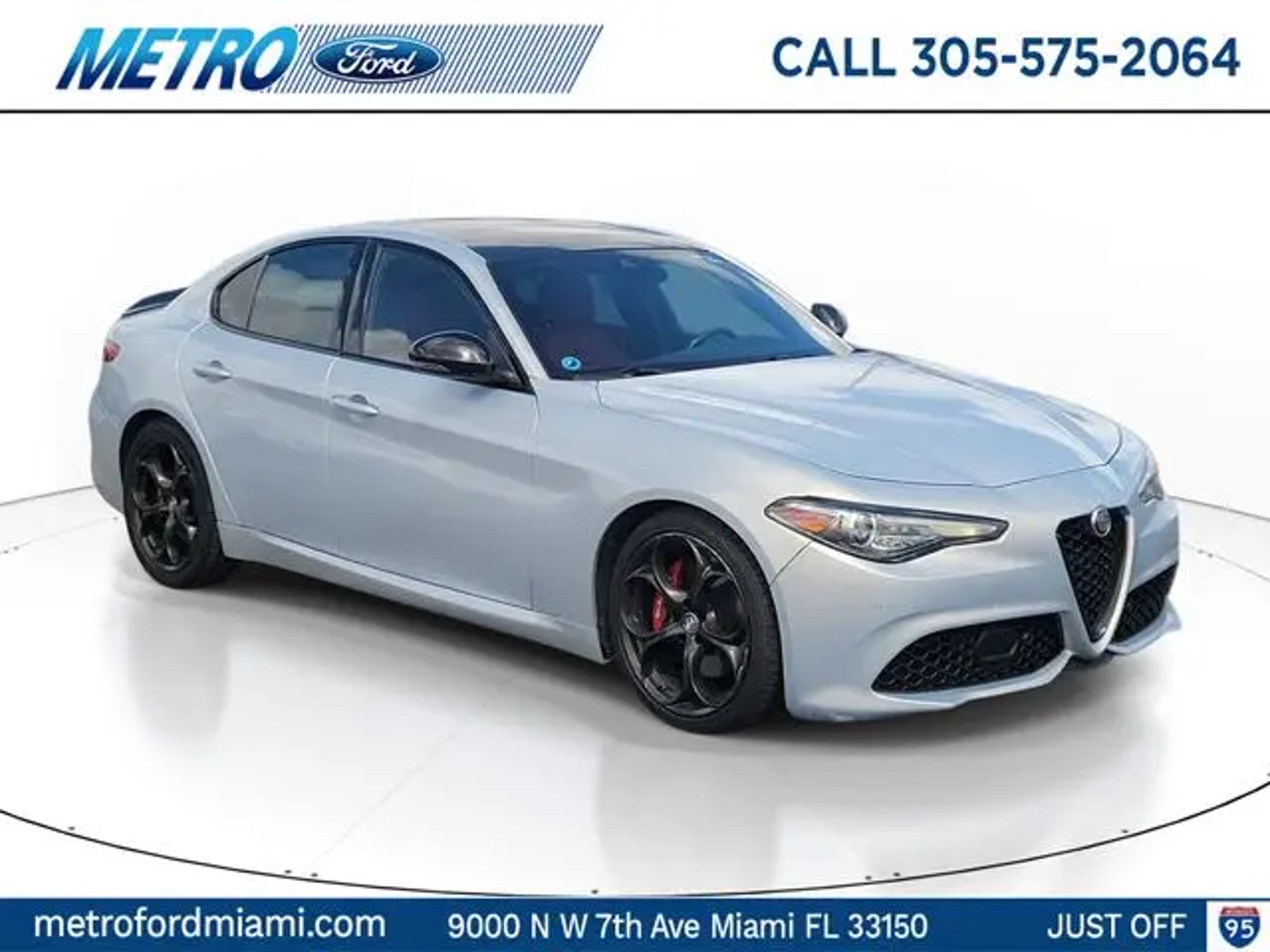 Experience the Metro Ford difference"”serving Miami with transparent pricing and expert Ford knowledge since 1983. This 2021 Alfa Romeo Giulia Ti is a remarkable vehicle that combines style, performance, and cutting-edge technology. Finished in the stunning Lunare White Metallic exterior, this Giulia Ti exudes a sophisticated and sporty presence. Highlights of this well-equipped model include: - Leather Seats - Sunroof / Moonroof - Wireless Charging Pad - Active Blind Spot Assist - Adaptive Cruise Control with Stop - Highway Assist System - Intelligent Speed Assist (ISA) - Traffic Jam Assist - Dark Miron Exterior Accents - Aluminum Steering Column Mounted Paddle Shifters - Sport Front & Rear Fascias - Limited Slip Differential Rear Axle - Bright Aluminum Pedals - Perforated Leather Shift Knob The Alfa Romeo Giulia Ti delivers an exhilarating driving experience, thanks to its responsive 2.0-liter turbocharged I4 engine and 8-speed automatic transmission. With 24 MPG in the city and 33 MPG on the highway, this Giulia Ti offers impressive fuel efficiency without compromising performance. Beyond the impressive powertrain, this Giulia Ti is packed with a wealth of advanced safety and technology features. The Active Assist 2 Package includes cutting-edge driver assistance systems like Active Blind Spot Assist, Adaptive Cruise Control, and Lane Keep Assist, providing you with added confidence and peace of mind on the road. The Nero Edizione (Ti Sport) package further enhances the Giulia's bold and sporty appearance with Dark Miron accents, including the V Scudetto grille, badging, and exterior mirror caps. The Quick Order Package 22U Ti Sport adds even more premium features, such as a sport-tuned suspension, perforated leather shift knob, and aluminum interior trim. With its exceptional performance, stunning design, and comprehensive suite of features, this 2021 Alfa Romeo Giulia Ti is a true driver's car that will elevate your daily commute and weekend adventures. Experience the thrill of Alfa Romeo ownership and schedule a test drive today. We're confident you'll be impressed by the Giulia Ti's blend of style, technology, and driving dynamics.