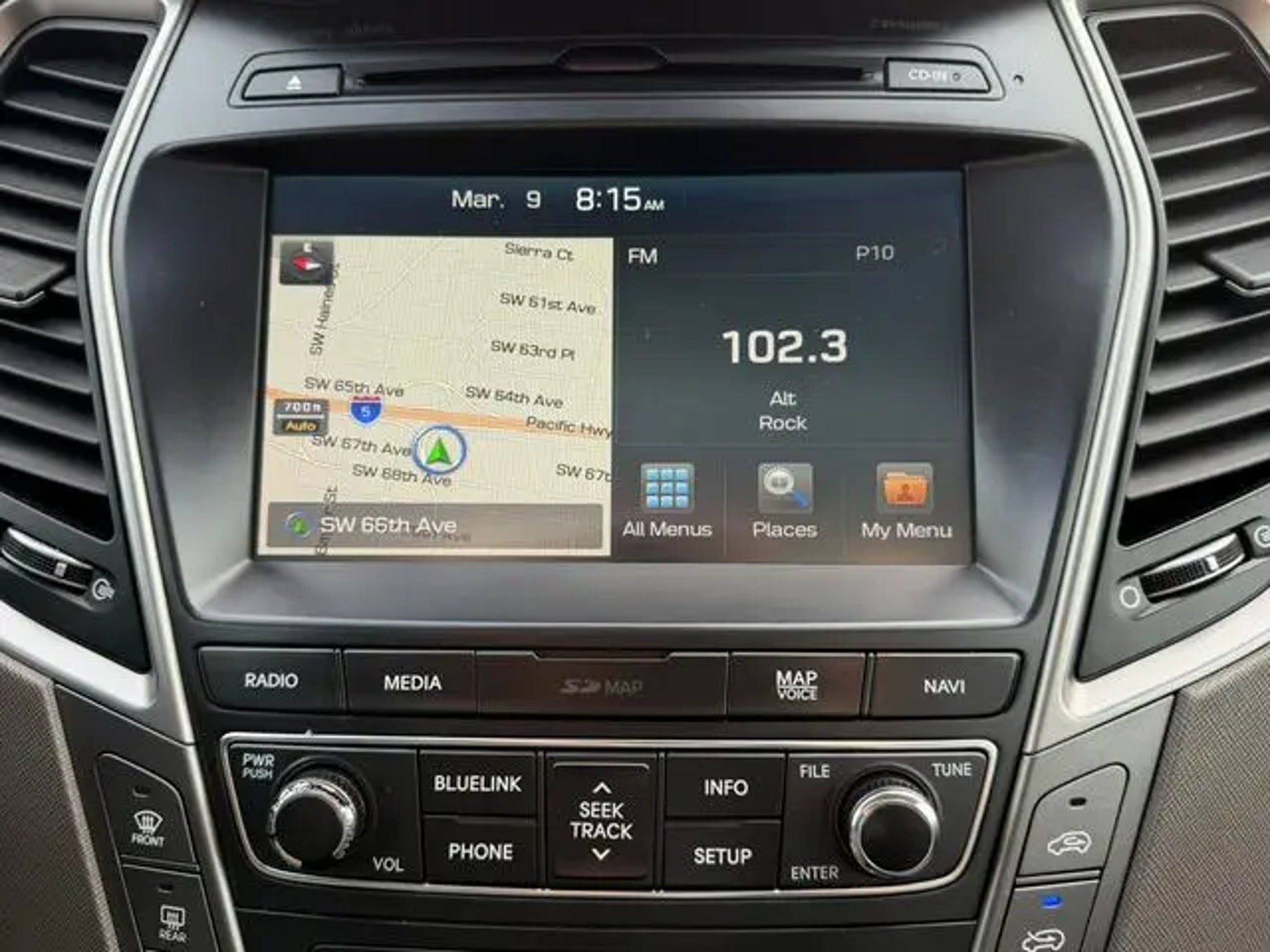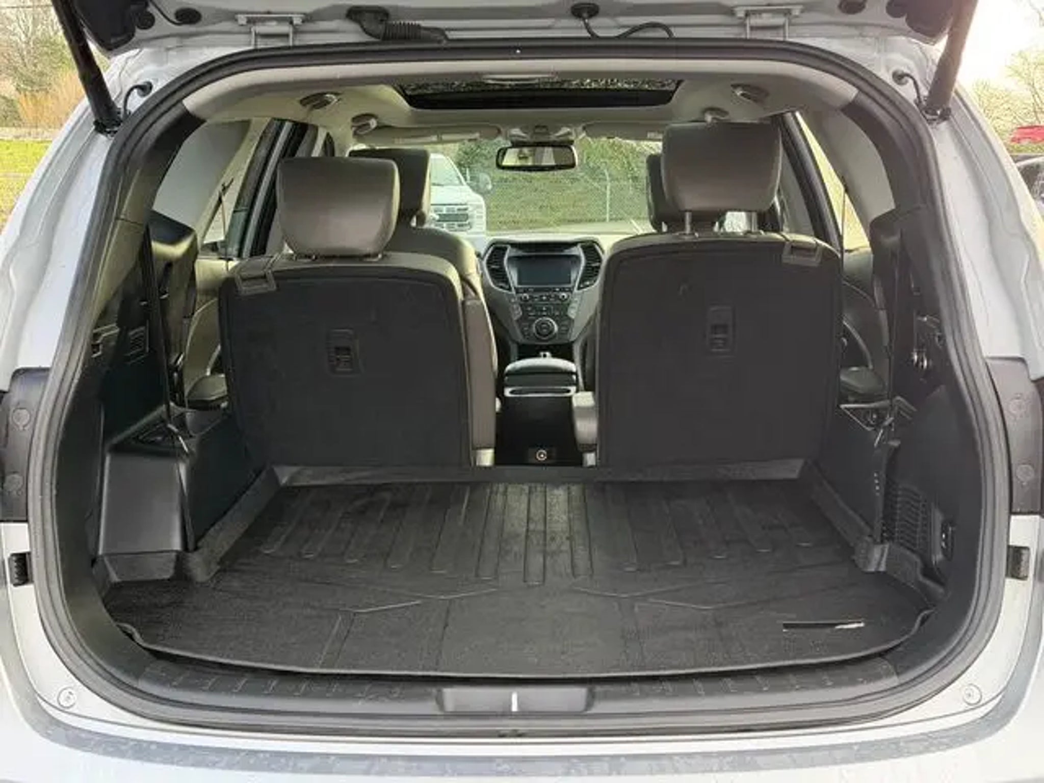 Call us today to schedule your VIP Test Drive! Recent Arrival! This 2017 Iron Frost Hyundai Santa Fe Limited Ultimate AWD is well equipped and includes these features and benefits: Option Group 01, AWD, Gray Leather, 12 Speakers, Air Conditioning, AM/FM radio: SiriusXM, Automatic temperature control, CD player, Exterior Parking Camera Rear, Front dual zone A/C, Memory seat, Navigation System, Power driver seat, Power moonroof, Power steering, Power windows, Radio: AM/FM/SiriusXM/CD/HD/MP3 w/Navigation, Rear Parking Sensors, Rear window defroster, Remote keyless entry, 19 x 7.5J Aluminum Alloy Wheels, 3.041 Axle Ratio, 3rd row seats: split-bench, 4-Wheel Disc Brakes, ABS brakes, Alloy wheels, Android Auto, Auto-dimming Rear-View mirror, Brake assist, Bumpers: body-color, Cargo Cover, Cargo Net, Cargo Tray, Carpeted Floor Mats, Compass, Delay-off headlights, Driver door bin, Driver vanity mirror, Dual front impact airbags, Dual front side impact airbags, Electronic Stability Control, Emergency communication system: Blue Link, Four wheel independent suspension, Front anti-roll bar, Front Bucket Seats, Front Center Armrest, Front fog lights, Front reading lights, Fully automatic headlights, Garage door transmitter: HomeLink, Heated & Ventilated Multi-Adjustable Bucket Seats, Heated door mirrors, Heated front seats, Heated rear seats, Heated steering wheel, Illuminated entry, Knee airbag, Leather Seating Surfaces, Leather steering wheel, Low tire pressure warning, Occupant sensing airbag, Outside temperature display, Overhead airbag, Overhead console, Panic alarm, Passenger door bin, Passenger vanity mirror, Power door mirrors, Power Liftgate, Power passenger seat, Rear air conditioning, Rear anti-roll bar, Rear window wiper, Roof Rack Cross Bars, Roof rack: rails only, Security system, Speed control, Speed-sensing steering, Split folding rear seat, Spoiler, Steering wheel mounted audio controls, Tachometer, Telescoping steering wheel, Tilt steering wheel, Traction control, Trip computer, Turn signal indicator mirrors, Variably intermittent wipers, and Ventilated front seats. AWD, Gray Leather, 12 Speakers, Air Conditioning, AM/FM radio: SiriusXM, Automatic temperature control, CD player, Exterior Parking Camera Rear, Front dual zone A/C, Memory seat, Navigation System, Option Group 01, Power driver seat, Power moonroof, Power steering, Power windows, Radio: AM/FM/SiriusXM/CD/HD/MP3 w/Navigation, Rear Parking Sensors, Rear window defroster, Remote keyless entry. Awards: * 2017 KBB.com 10 Most Awarded Brands