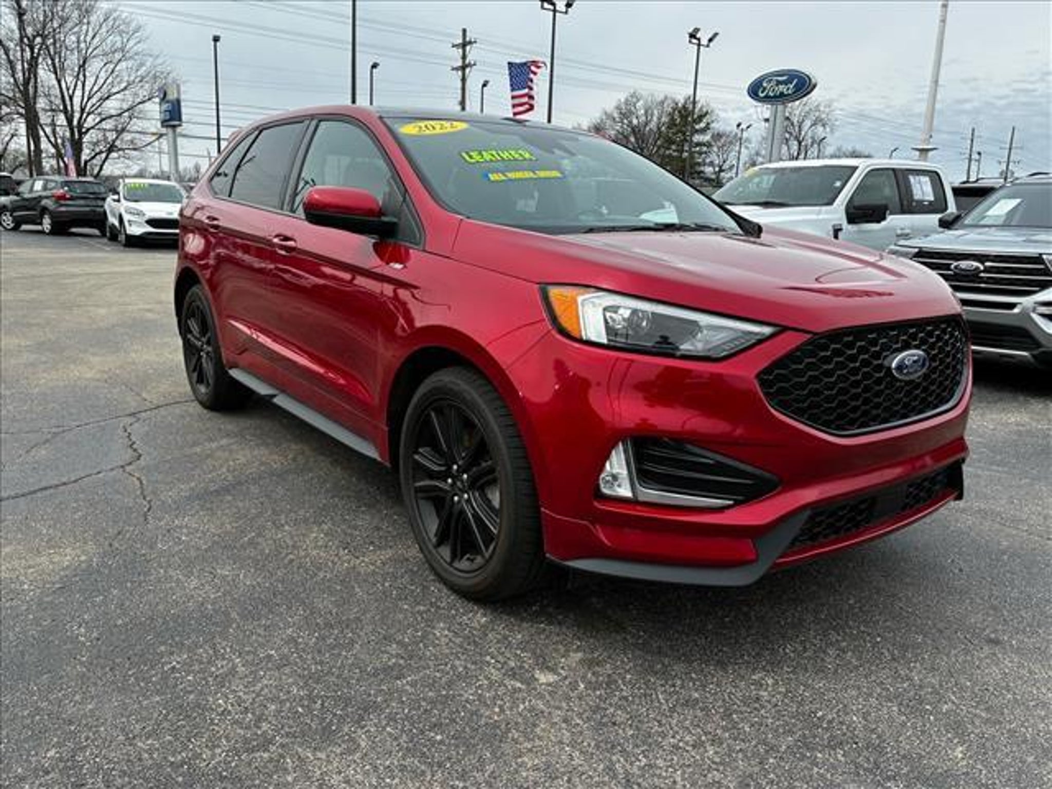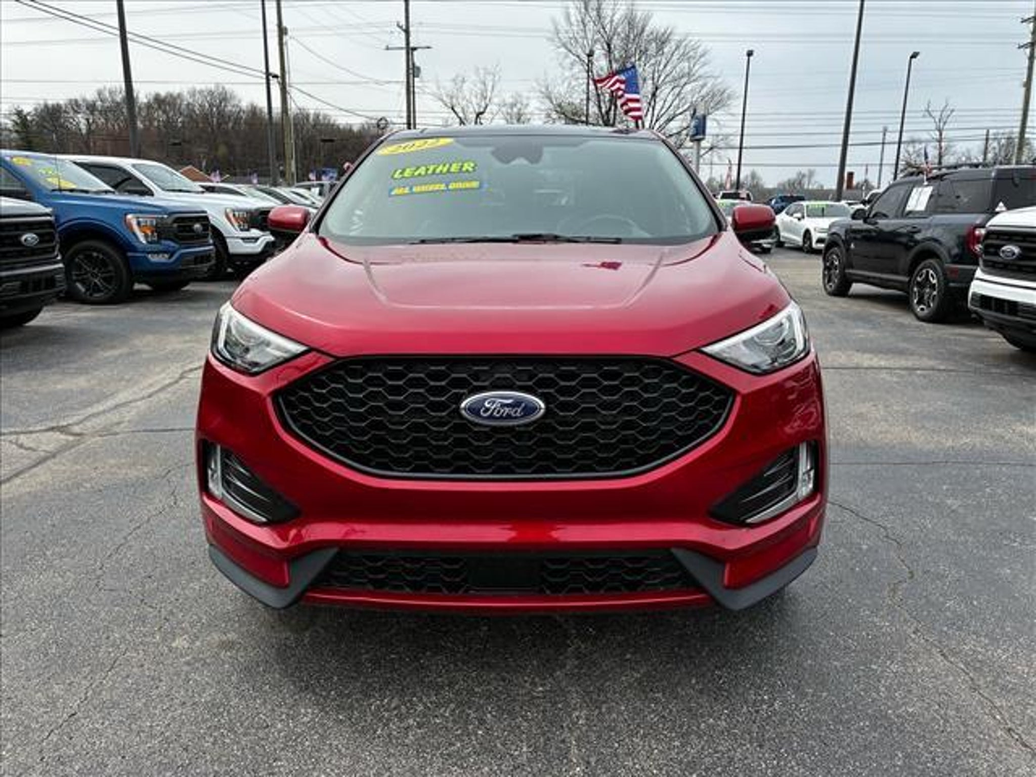 This 2022 Ford Edge ST-Line is a vehicle that is sure to turn heads. With a dk. red exterior and all wheel drive, this car has a 2.0 liter EcoBoost Turbo I4 250hp 280 lb-ft engine, direct injection, and a dk. red interior. It has 94,060 miles and a crash test rating of 5 out of 5 stars. It also comes with features such as touch screen display, Bluetooth audio connection, blind spot sensor, hill start assist, on demand four wheel drive, Bluetooth phone connectivity, leather seats, and more. This carfax report is available for your convenience and shows that this car has been driven 94,060 miles. Whether you're looking for a reliable car for your daily commute or a car that can take you on weekend adventures, this Ford Edge ST-Line is sure to meet all of your needs. Contact Details: Town and Country Ford - Louisville, 6015 Preston Hwy, Louisville, KY, 40219, tbradley@tacford.com, (502) 964-8131.