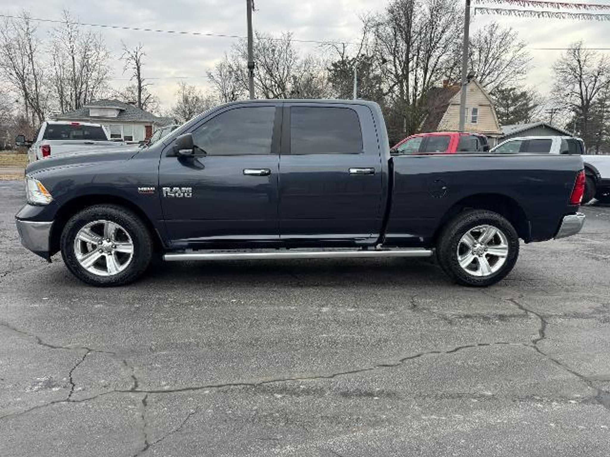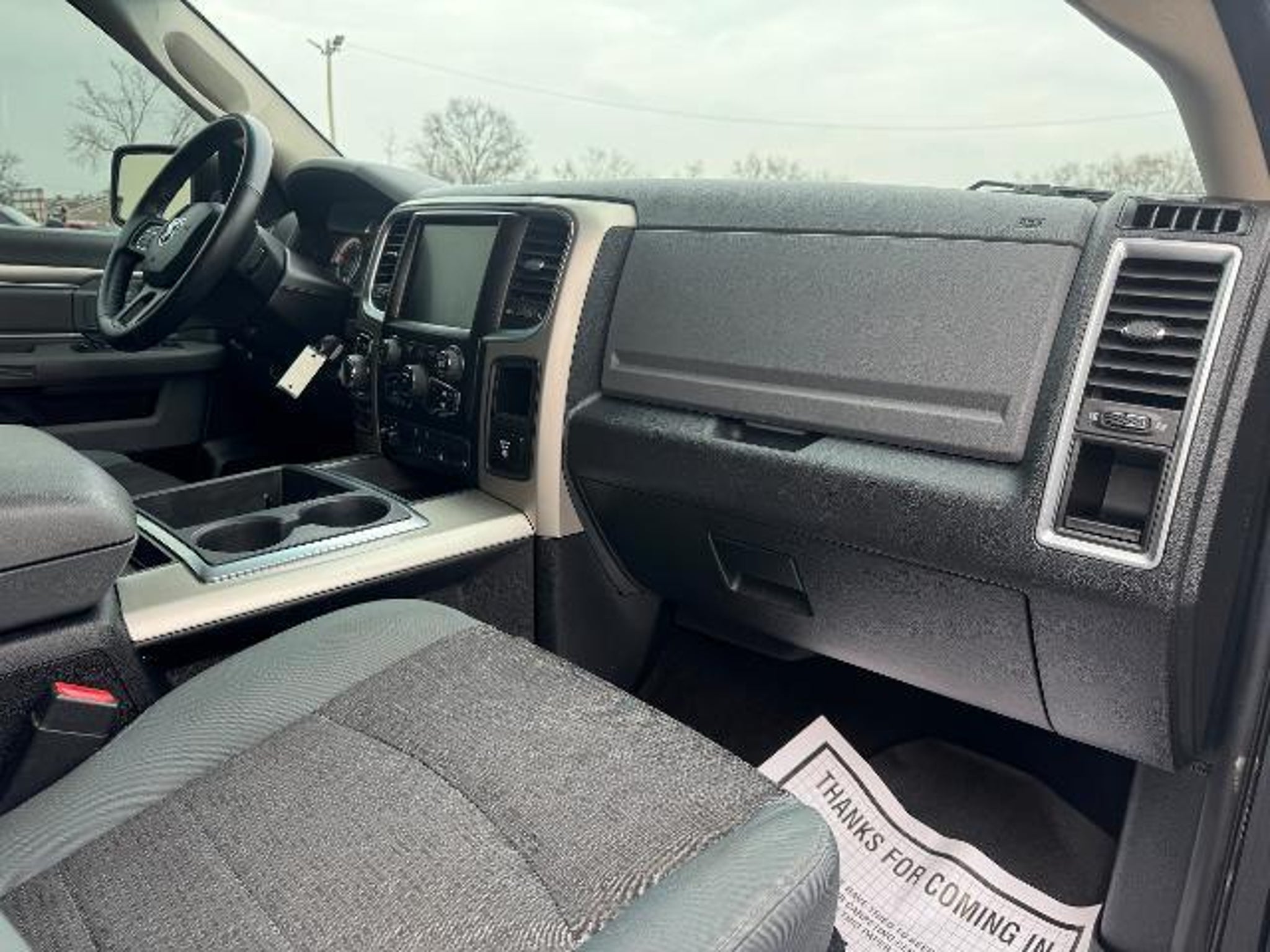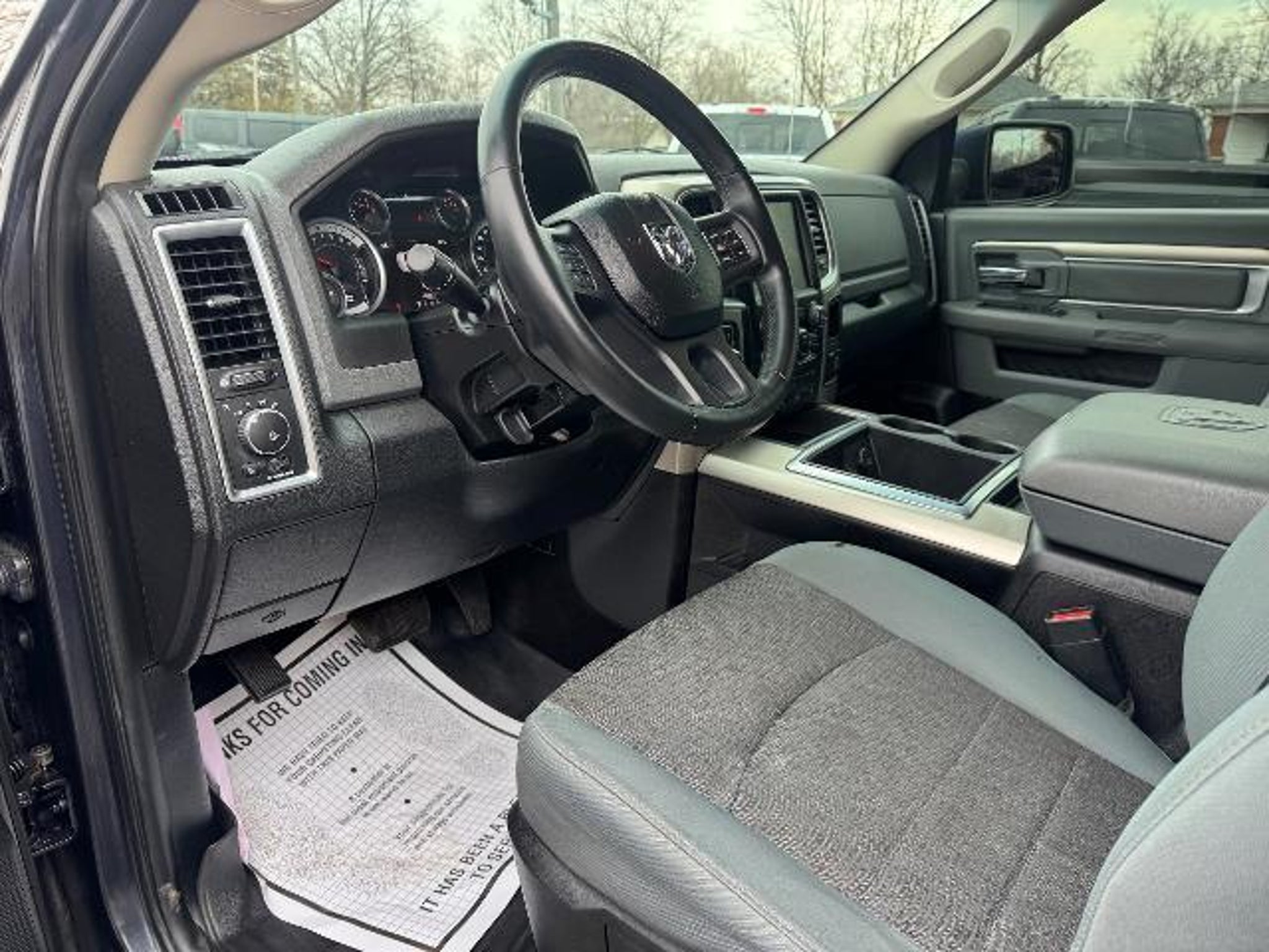 Equipment Keep your hands warm all winter with a heated steering wheel in this 1/2 ton pickup . The vehicle is equipped with the latest generation of XM/Sirius Radio. Start this unit from inside with remote start. This model features a hands-free Bluetooth phone system. This 2014 Ram 1500 has a V8, 5.7L high output engine. When you encounter slick or muddy roads, you can engage the four wheel drive on this 1/2 ton pickup and drive with confidence. A trailer braking system is already installed on this 2014 Ram 1500 . It emanates grace with its stylish gray exterior. This Ram 1500 is equipped with a gasoline engine. With the adjustable lumbar support in this Ram 1500 your back will love you. The fog lights cut through the weather so you can see what's ahead. Anti-lock brakes will help you stop in an emergency. Electronic Stability Control is one of many advanced safety features on this model. Packages Quick Order Package 26Z Big Horn: Locking Lug Nuts Full Size Temporary Use Spare Tire Leather Wrapped Steering Wheel Fog Lamps Steering Wheel Mounted Audio Controls Bighorn Badge Class IV Receiver Hitch Bright/bright Billets Grille. Comfort Group: Heated Front Seats Heated Steering Wheel. Luxury Group: Leather Wrapped Steering Wheel Exterior Mirrors with Supplemental Signals Rear Dome with On/off Switch Lamp Underhood Lamp Steering Wheel Mounted Audio Controls Exterior Mirrors Courtesy Lamps Glove Box Lamp Ash Tray Lamp Rear View Auto Dim Mirror with Microphone Auto Dim Exterior Mirror Power Folding Mirrors Power Heated Fold-Away Mirrors Auto Dim Exterior Passenger Mirror Sun Visors with Illuminated Vanity Mirrors Electroluminescent Instrument Cluster Overhead Console with Garage Door Opener. Remote Start and Security Group: Remote Start System Security Alarm. Wheel to Wheel Side Steps. Uconnect 8.4A AM/FM/SXM/BT Radio. Anti-Spin Differential Rear Axle. Premium Cloth Bucket Seats. Trailer Brake Control. **Equipment listed is based on original vehicle build and subject to change. Please confirm the accuracy of the included equipment by calling the dealer prior to purchase.**
