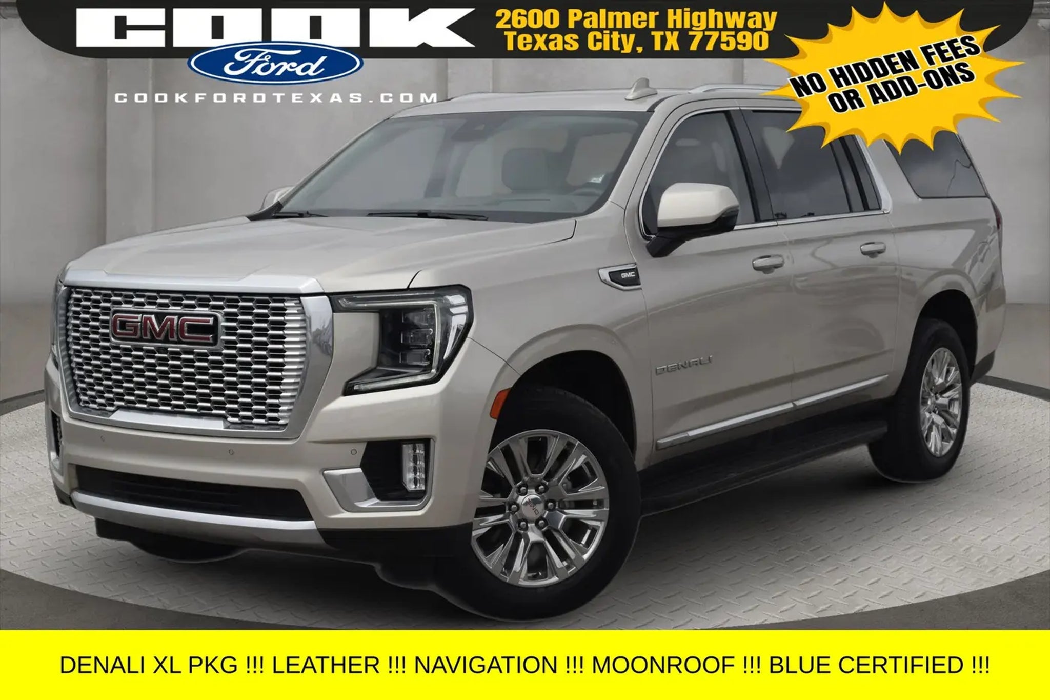 Certification Program Details: Ford Blue Advantage: Blue Certified * 139 Point Inspection * Transferable Warranty * Vehicle History * Warranty Deductible: $100 * Roadside Assistance * Limited Warranty: 3 Month/4,000 Mile (whichever comes first) after new car warranty expires or from certified purchase date * and 11,000 FordPass Rewards Points to use toward first maintenance visit Discover the ultimate in luxury and capability with this 2023 GMC Yukon XL Denali. Boasting a stunning Beige exterior and a powerful EcoTec3 6.2L V8 engine with 4WD, this Yukon XL is ready to take on any adventure. Indulge in the premium features that set this Denali apart, including: - Rear Seat Media System with dual 12.6 screens - Adaptive Cruise Control - Pearl Beige Metallic exterior - Advanced Security Package - Advanced Technology Package - Max Trailering Package - Premium Capability Package with Active Response 4WD Experience the pinnacle of comfort and convenience with the Yukon XL Denali's 14-speaker Bose surround sound system, hands-free power programmable rear liftgate, and air ride adaptive suspension. Stay connected with the built-in navigation system, wireless charging, and 3 years of OnStar Safety & Security. This Yukon XL Denali is more than just a luxury SUV - it's a masterpiece of engineering and design. With its impressive towing capacity, advanced safety features, and premium amenities, it's the perfect vehicle for the discerning driver who demands the best. Certification Program Details: This 2023 GMC Yukon XL Denali is part of the Ford Blue Advantage Certified Pre-Owned program, ensuring you can drive with confidence. With a 139-point inspection, transferable warranty, and 3 months/4,000 miles of additional coverage, you can trust that this Yukon XL is in pristine condition. Don't miss your chance to own this exceptional 2023 GMC Yukon XL Denali. Schedule a test drive today and experience the ultimate in luxury and capability.