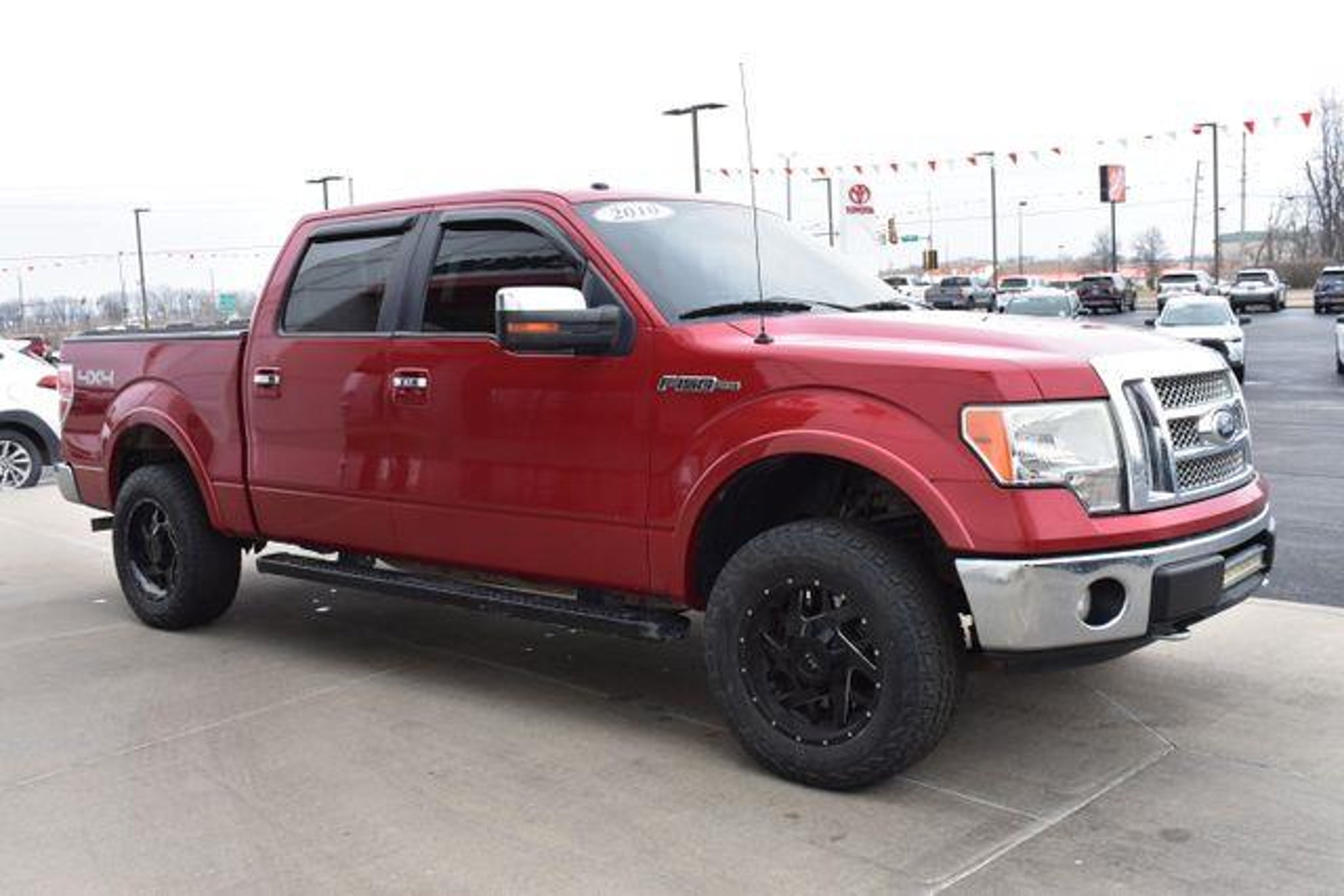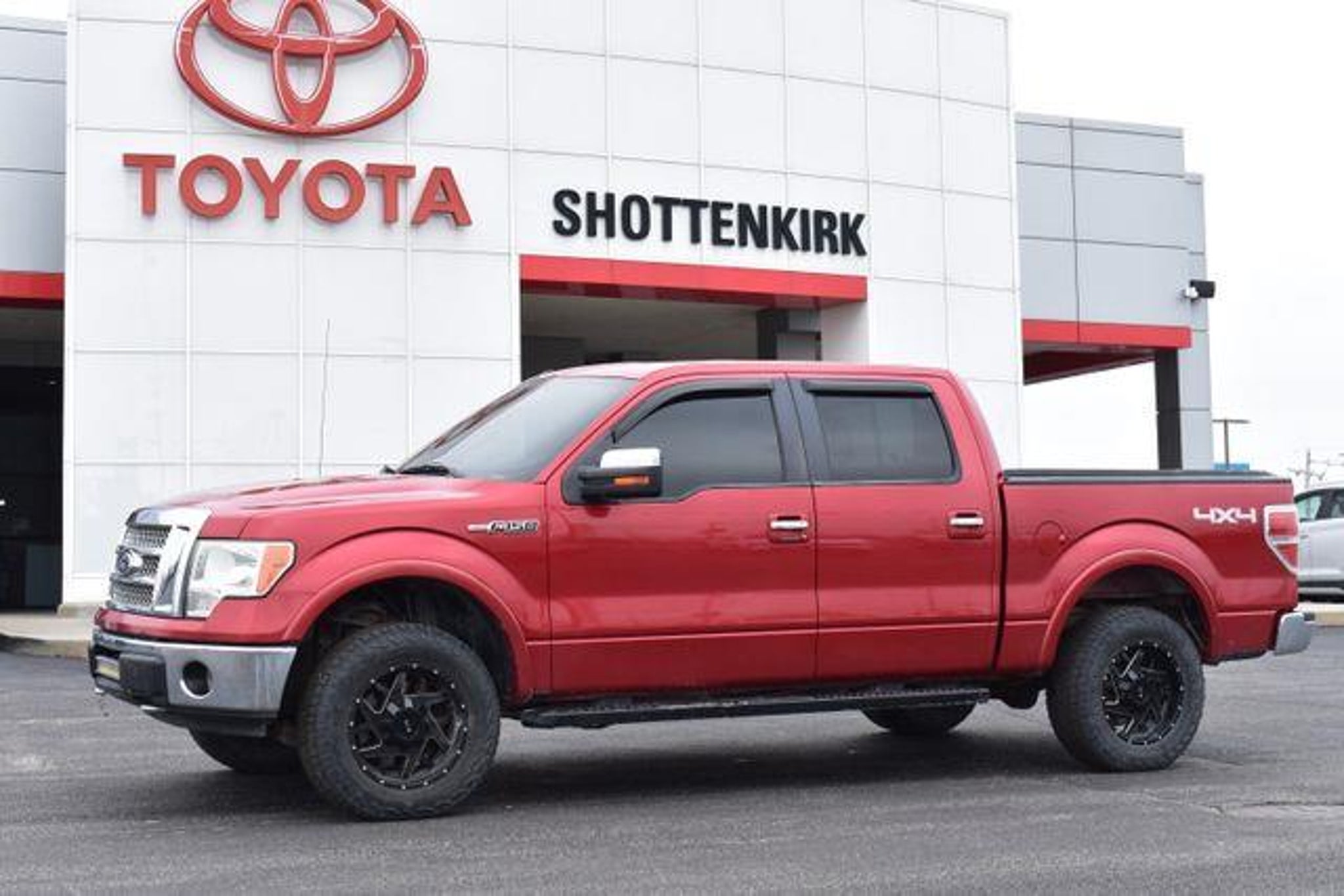 [ 2010 Ford F-150 Maroon Lariat 5.4L V8 EFI 24V FFV 6-Speed Automatic Electronic 4WD Fixed Running Boards Towing/Camper Pkg Sunroof/Moonroof Leather Local Trade Backup Camera F-150 Lariat 6-Speed Automatic Electronic 4WD Maroon 4 Speakers ABS brakes Air Conditioning AM/FM Stereo/Clock/Single CD Compass Driver door bin Front reading lights Heated front seats Illuminated entry Leather steering wheel Low tire pressure warning Memory seat Outside temperature display Overhead console Panic alarm Passenger door bin Passenger vanity mirror Power door mirrors Power driver seat Power steering Power windows Rear step bumper Remote keyless entry Split folding rear seat Tilt steering wheel Traction control Variably intermittent wipers. Awards: * 2010 KBB.com Brand Image Awards Standard with Shottenkirk Care which includes a 3 month 3000k mile powertrain warranty dent and ding repair tire road hazard and wheel repair and windshield chip repair. (Call us for details) Shottenkirk Toyota of Quincy Illinois has been serving the needs of tri-state motorists for years.Offering top notch new and used Toyota sales service and parts in a friendly environment that puts a premium on service not prices! We're proud to be a destination for used car shoppers from the Jacksonville Springfield Carthage Il. Hannibal Kirksville St. Louis Columbia Mo. And the Mt.Pleasant Keokuk Farmington Fort Madison Iowa areas.Whether you visit us to buy an used Ford like a F-150 Super-Duty Escape Mustang Taurus Fusion Focus Expedition Excursion Ranger Fiesta Edge and Explorer or to get service for your existing vehicle you'll get impeccable service. We have an outstanding reputation for quality and a no-hassle buying experience.You may also visit us at ] [Our Toyota dealership is happy to help drivers in Quincy, IL and surrounding areas in finding Toyota cars, trucks and SUVs for sale. We believe that after just a few moments of sifting through our abundant inventory, motorists will find the perfect vehicle for their needs. We also offer competitive finance packages and service options as well! Did we mention that most of your automotive requests can be booked entirely online? Starting online can save you lots of valuable time. Our website will serve you well if you're looking to apply for financing, schedule a service appointment, or browse service specials. ]