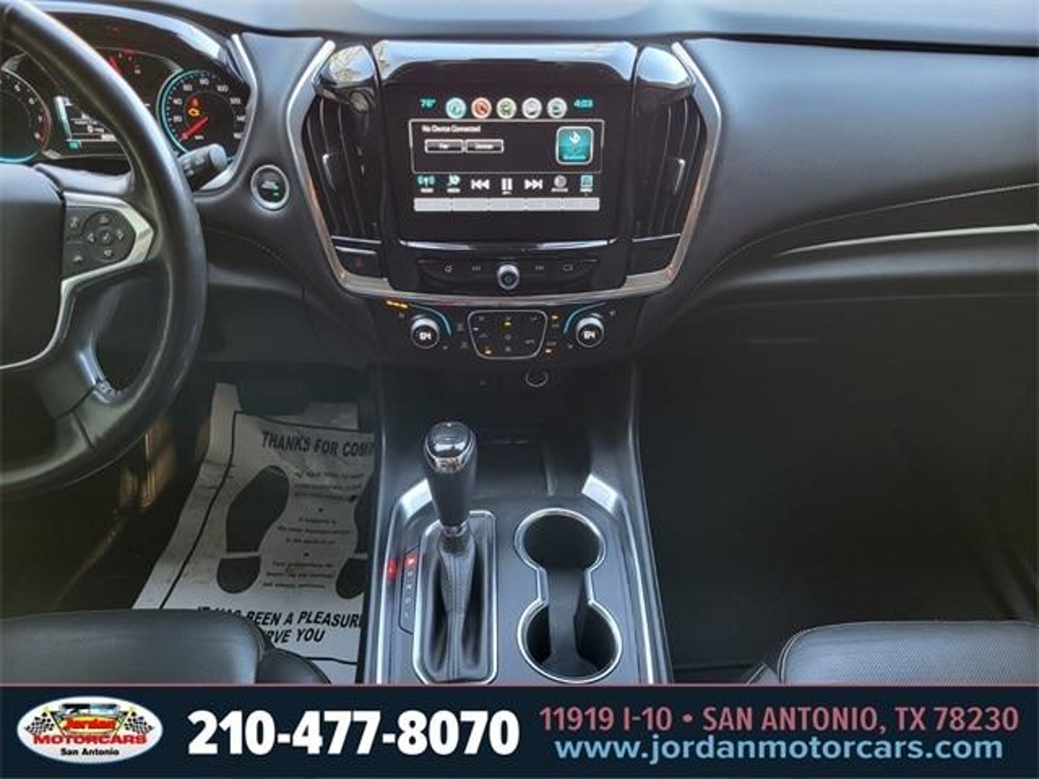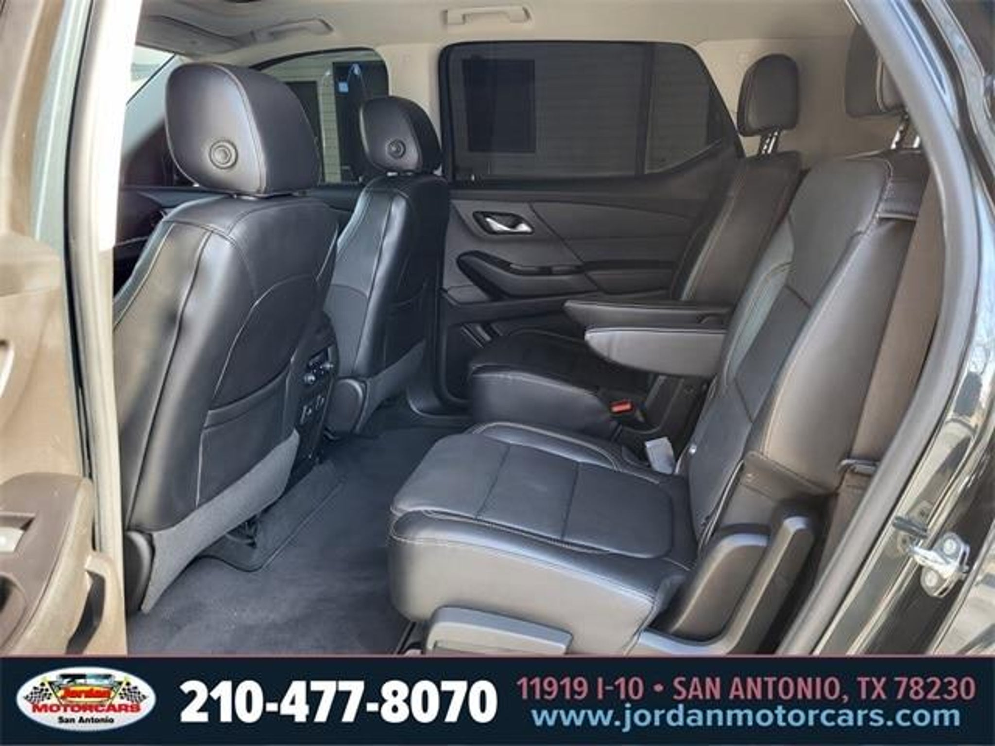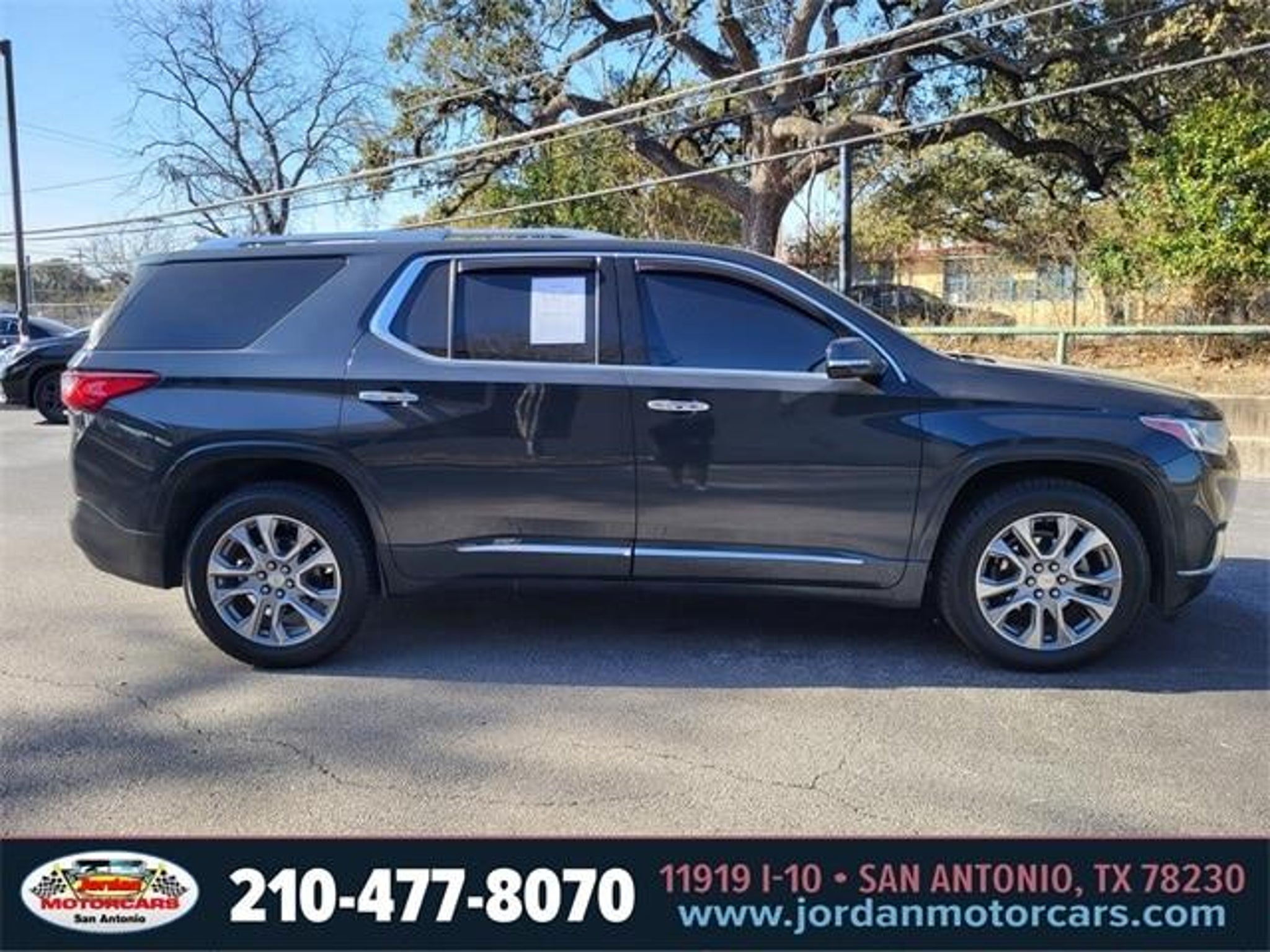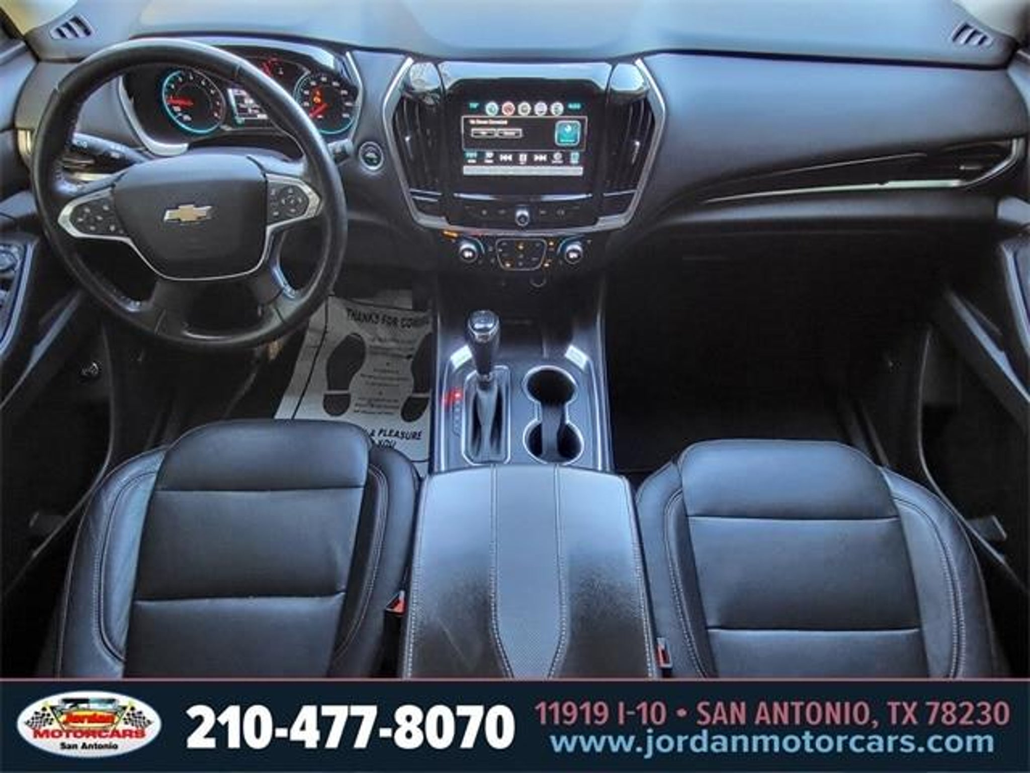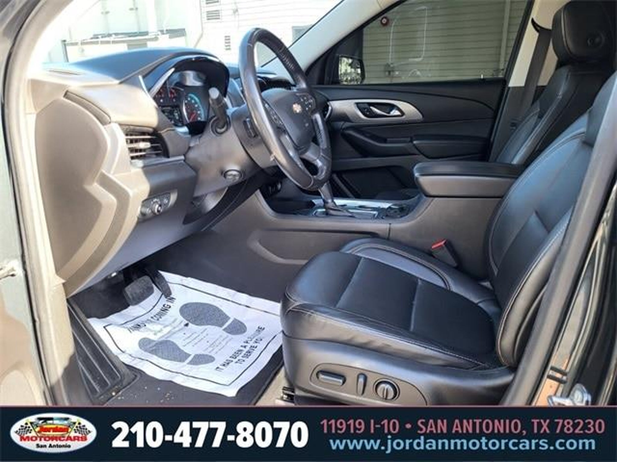 Clean CARFAX. 18/27 City/Highway MPG Graphite Metallic 2019 Chevrolet Traverse Premier FWD 3.6L V6 SIDI VVT 9-Speed Automatic 10 Speakers, 1st & 2nd Row All-Weather Floor Mats, 3rd Row All-Weather Floor Mats, 3rd row seats: split-bench, 4-Wheel Disc Brakes, 7-Passenger Seating (2-2-3 Seating Configuration), ABS brakes, Air Conditioning, All-Weather Cargo Mat (LPO), Alloy wheels, AM/FM radio: SiriusXM, Auto-dimming door mirrors, Auto-dimming Rear-View mirror, Automatic temperature control, Bose Premium 10-Speaker Audio System Feature, Brake assist, Bumpers: body-color, Compass, Delay-off headlights, Driver Confidence II Package, Driver door bin, Driver vanity mirror, Dual front impact airbags, Dual front side impact airbags, Dual SkyScape 2-Panel Power Sunroof, Electronic Stability Control, Emergency communication system, Following Distance Indicator, Forward Collision Alert, Four wheel independent suspension, Front anti-roll bar, Front Bucket Seats, Front Center Armrest, Front dual zone A/C, Front fog lights, Front License Plate Bracket Mounting Package, Front Pedestrian Braking, Front reading lights, Fully automatic headlights, Garage door transmitter, Heated door mirrors, Heated front seats, Heated rear seats, Heated steering wheel, Heavy-Duty Cooling System, Illuminated entry, IntelliBeam Auto High Beam Control Headlamps, Interior Protection Package (LPO), Lane Keep Assist w/Lane Departure Warning, Low Speed Forward Automatic Braking, Low tire pressure warning, Memory seat, Navigation System, Occupant sensing airbag, Outside temperature display, Overhead airbag, Overhead console, Panic alarm, Passenger door bin, Passenger vanity mirror, Perforated Leather-Appointed Seat Trim, Power door mirrors, Power driver seat, Power Liftgate, Power passenger seat, Power steering, Power windows, Preferred Equipment Group 1LZ, Premium audio system: Chevrolet MyLink, Radio data system, Radio: Chevrolet Infotainment AM/FM Stereo w/Navigation, Rear air conditioning, Rear anti-roll bar, Rear reading lights, Rear window defroster, Rear window wiper, Remote keyless entry, Roof rack: rails only, Security system, SiriusXM Radio, Speed control, Speed-sensing steering, Steering wheel memory, Steering wheel mounted audio controls, Tachometer, Telescoping steering wheel, Tilt steering wheel, Traction control, Trailering Equipment, Trip computer, Turn signal indicator mirrors, Variably intermittent wipers, Ventilated front seats, Voltmeter, Wheels: 20 Argent Metallic Machine Faced Aluminum. Call (210)653-3673 with any questio