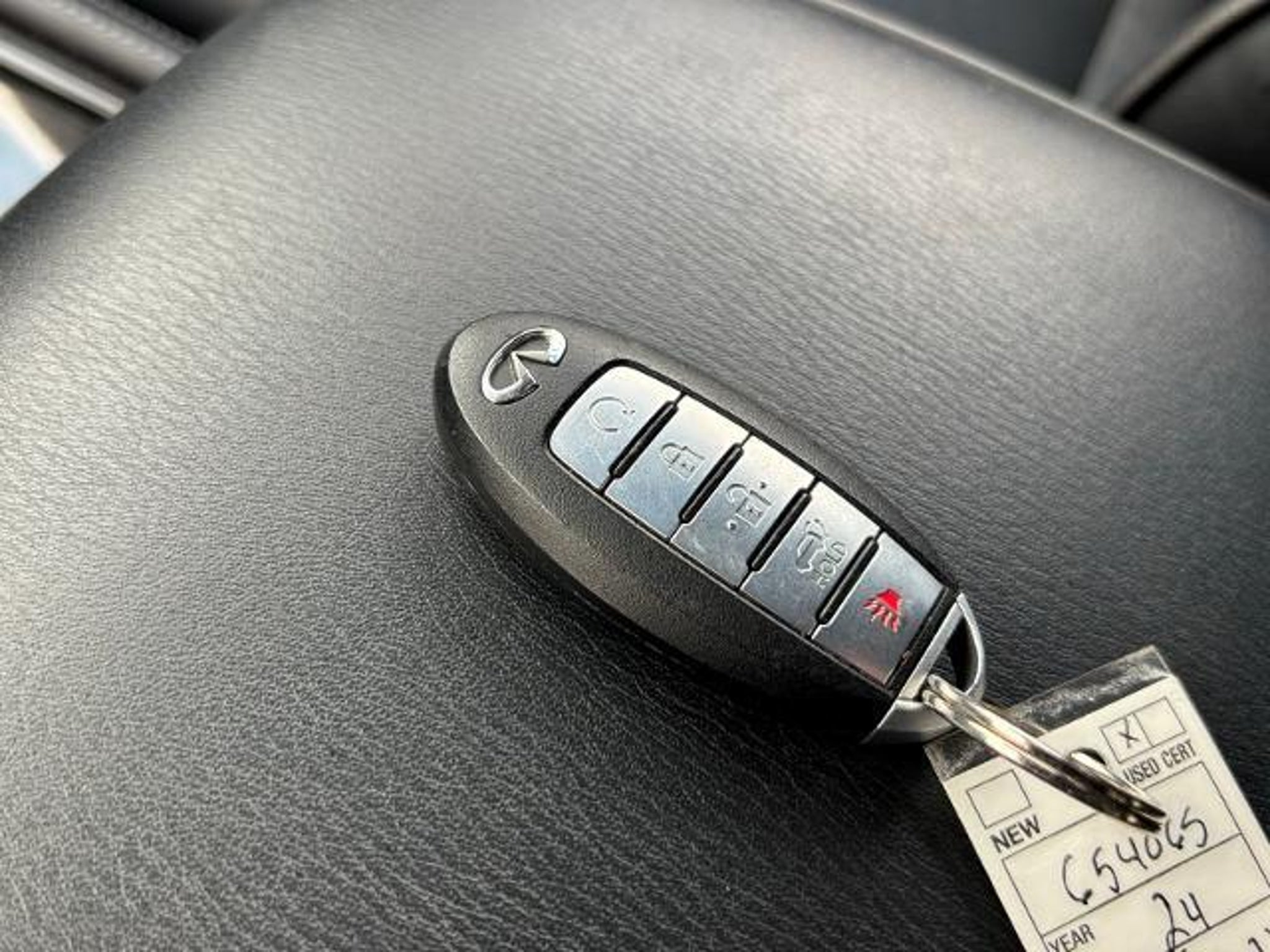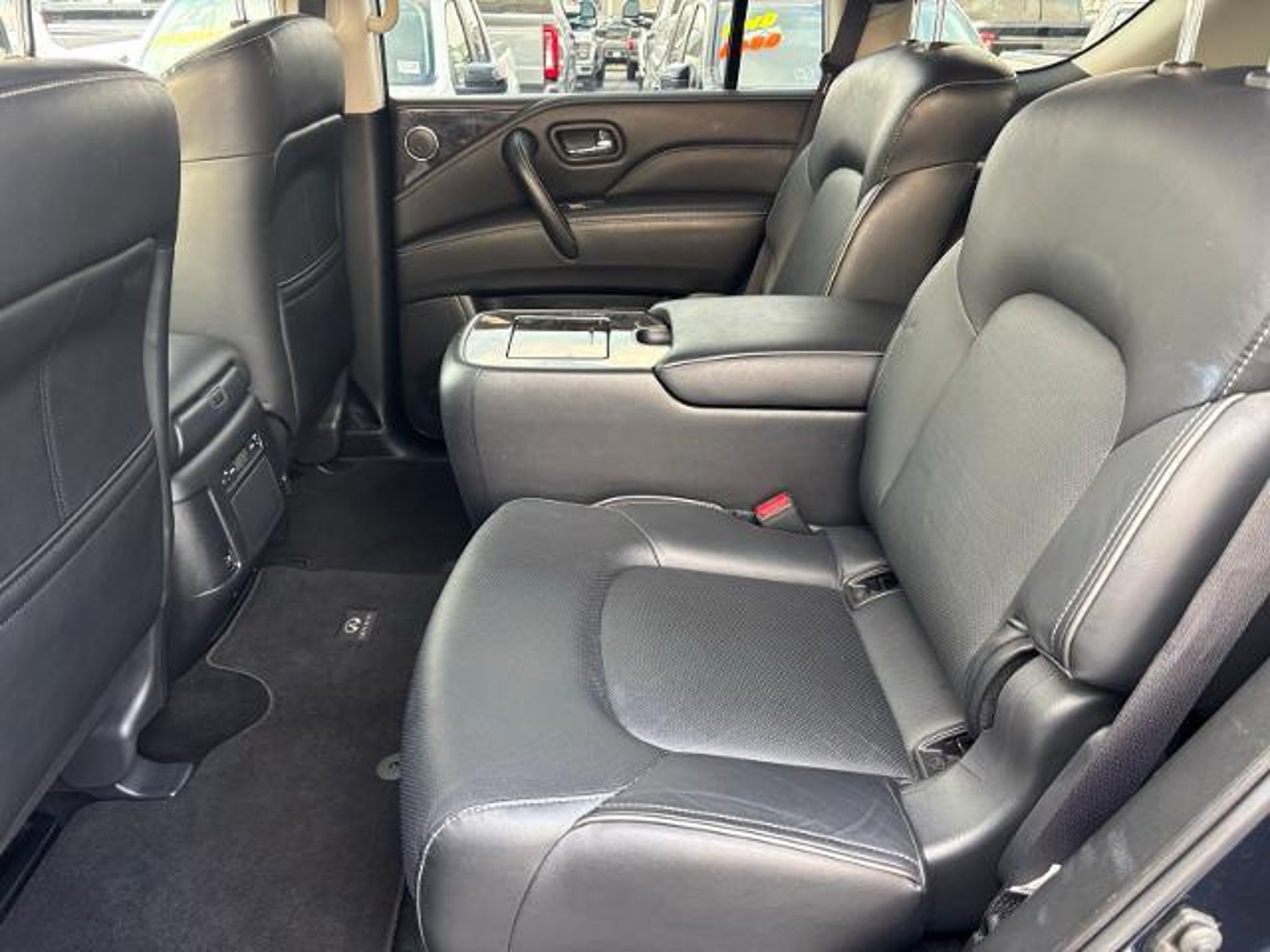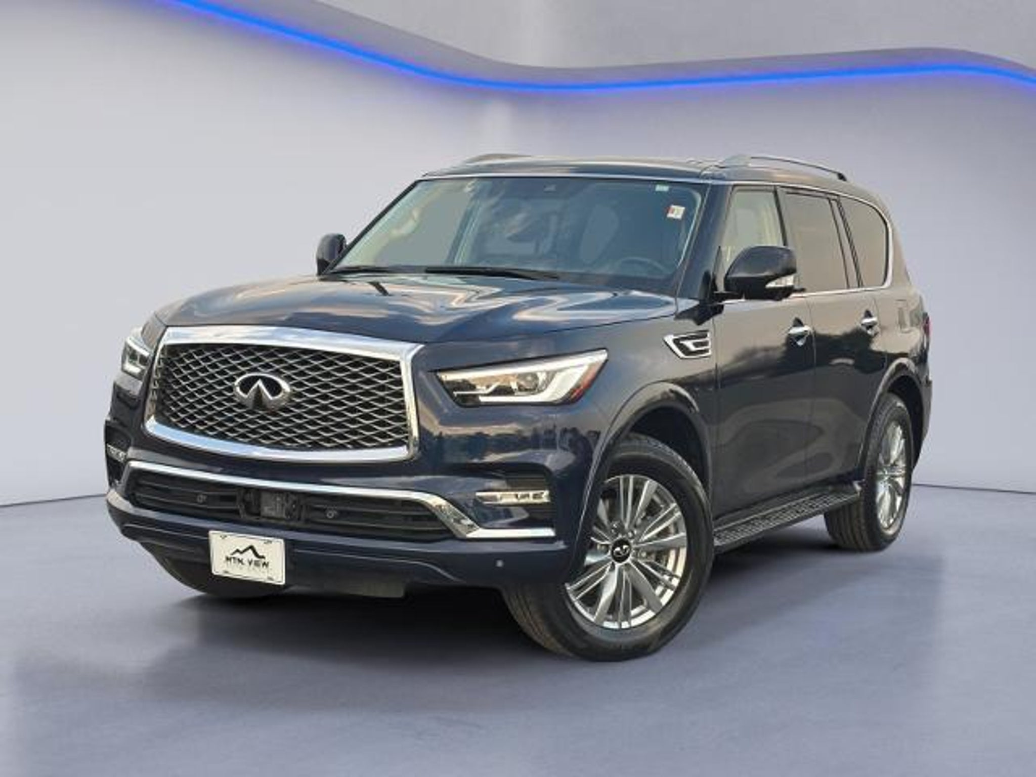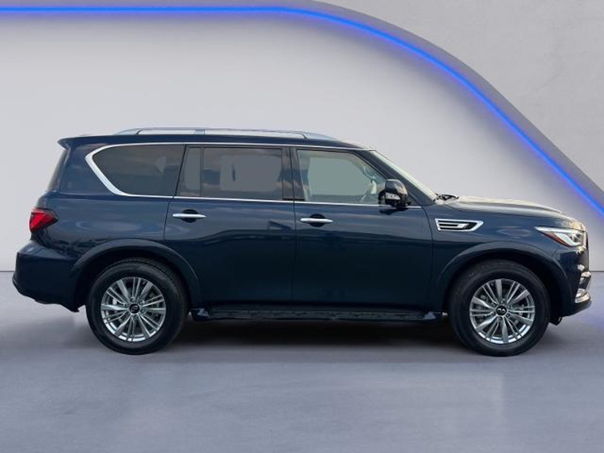 2024 INFINITI QX80 LUXE QX80 LUXE, 4D Sport Utility, 5.6L V8, 7-Speed Automatic, 4WD, Hermosa Blue, Graphite Leather, 13 Speakers, 2.937 Axle Ratio, 20 Aluminum Alloy Wheels, 3rd row seats: bench, 4-Wheel Disc Brakes, ABS brakes, Air Conditioning, Alloy wheels, AM/FM radio: SiriusXM, Anti-whiplash front head restraints, Apple CarPlay/Android Auto, Auto High-beam Headlights, Auto tilt-away steering wheel, Auto-dimming door mirrors, Auto-dimming Rear-View mirror, Auto-leveling suspension, Automatic temperature control, Brake assist, Bumpers: body-color, Compass, Cruise Control, Delay-off headlights, Driver door bin, Driver vanity mirror, Dual front impact airbags, Dual front side impact airbags, Electronic Stability Control, Emergency communication system: INFINITI InTouch, Four wheel independent suspension, Front anti-roll bar, Front Bucket Seats, Front Center Armrest, Front dual zone A/C, Front fog lights, Front reading lights, Fully automatic headlights, Garage door transmitter: HomeLink, Heated and Cooled Seats, Heated door mirrors, Heated Front Bucket Seats, Heated steering wheel, Illuminated entry, Leather Shift Knob, Leather steering wheel, Leather-Appointed Seats, Literature Kit, Low tire pressure warning, Memory seat, Navigation system: INFINITI InTouch Navigation, Occupant sensing airbag, Outside temperature display, Overhead airbag, Overhead console, Panic alarm, Passenger door bin, Passenger vanity mirror, Power door mirrors, Power driver seat, Power Liftgate, Power moonroof, Power passenger seat, Power steering, Power windows, Radio data system, Radio: Bose Premium Audio System w/13 Speakers, Rain sensing wipers, Rear air conditioning, Rear anti-roll bar, Rear reading lights, Rear seat center armrest, Rear window defroster, Rear window wiper, Reclining 3rd row seat, Remote keyless entry, Security system, Speed-sensing steering, Split folding rear seat, Spoiler, Steering wheel memory, Steering wheel mounted audio controls, Tachometer, Telescoping steering wheel, Tilt steering wheel, Traction control, Trip computer, Turn signal indicator mirrors, Variably intermittent wipers, Voltmeter, (Must finance with Ford Motor Credit to receive online pricing - see dealer for details.) Proudly, QX80 LUXE, 4D Sport Utility, 5.6L V8, 7-Speed Automatic, 4WD, Hermosa Blue, Graphite Leather. Hermosa Blue 7-Speed Automatic CARFAX One-Owner.