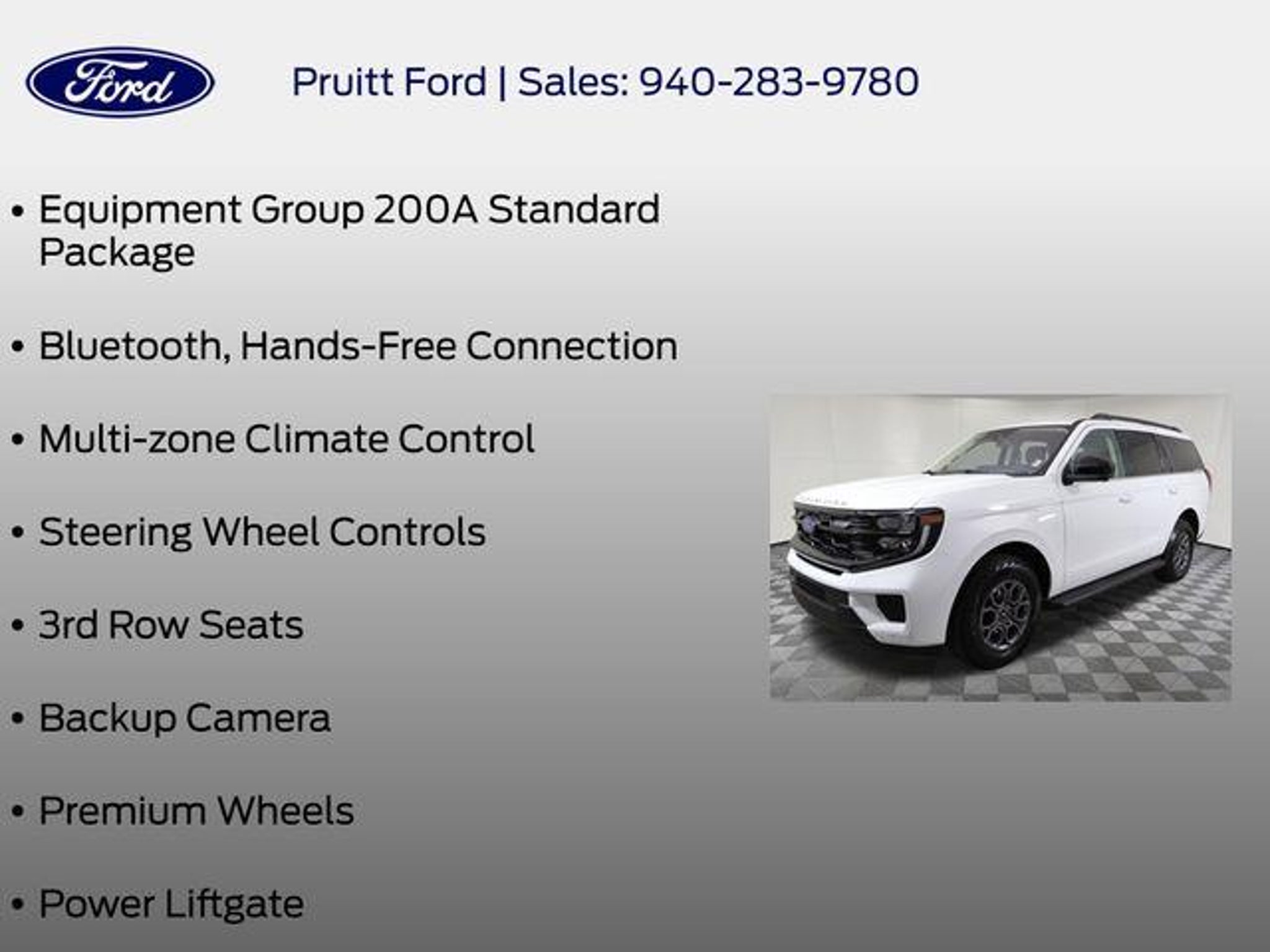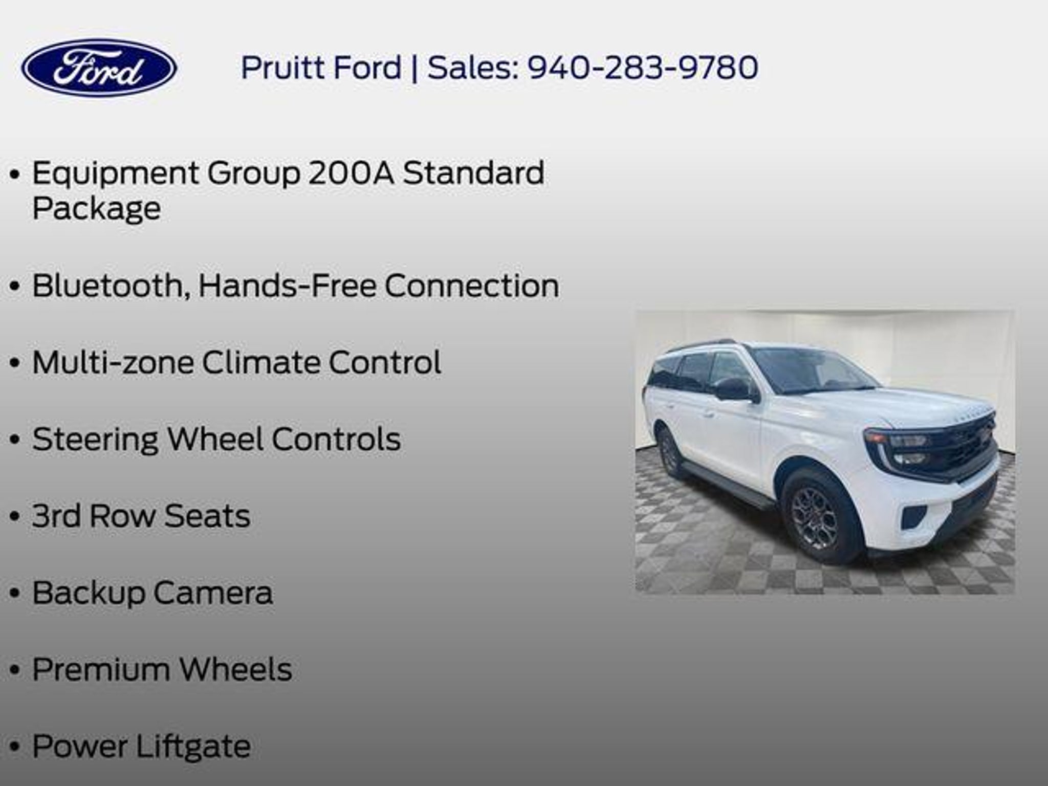 Discover the perfect balance of power, capability, and style with the 2025 Ford Expedition Active. This exceptional SUV is designed to elevate your driving experience, whether you're navigating the city streets or exploring the great outdoors. Equipped with an impressive array of features, the Expedition Active is ready to accommodate your every need. Key highlights include: - Bluetooth and Hands-Free Connection for seamless connectivity - Multi-zone Climate Control to keep everyone comfortable - Steering Wheel Controls for intuitive command of your audio and vehicle functions - Spacious 3rd Row Seats for added passenger capacity - Backup Camera for confident maneuvering - Premium Wheels and a Power Liftgate for a touch of sophistication The Expedition Active also boasts the Equipment Group 200A Standard Package, ensuring you enjoy a comprehensive suite of advanced technologies and conveniences. And with the stunning 18 Dark Alloy Painted Aluminum Wheels, this SUV exudes a bold, modern presence that is sure to turn heads. Beneath the sleek exterior lies the impressive power of the EcoBoost 3.5L V6 GTDi DOHC 24V Twin Turbocharged engine, paired with a responsive 10-Speed Automatic transmission and Rear-Wheel Drive. This powertrain delivers the performance you crave, while also delivering impressive fuel efficiency to keep you on the road longer. The 2025 Ford Expedition Active is more than just a vehicle â it's a gateway to a lifestyle of adventure and versatility. With its spacious interior, advanced technology, and commanding presence, this SUV is the perfect companion for your next journey, whether it's a family road trip, a weekend getaway, or a daily commute. Experience the exceptional capabilities of the 2025 Ford Expedition Active for yourself. Visit our showroom today and let us demonstrate how this exceptional SUV can enhance your driving experience and elevate your lifestyle.