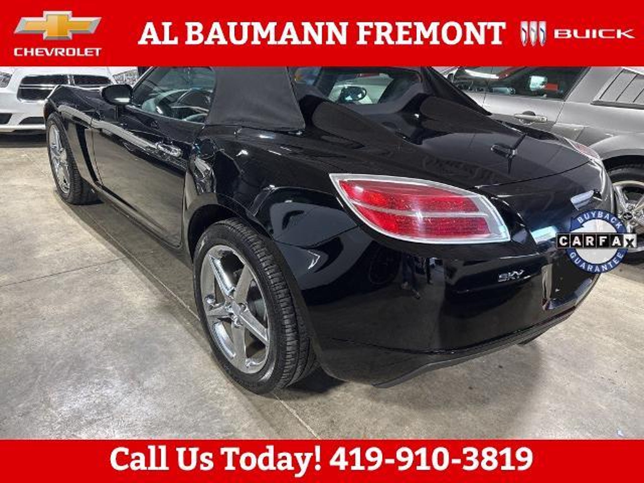 Recent Arrival! Odometer is 27689 miles below market average! Black Onyx 2007 Saturn Sky PREMIUM TRIM PKG 2D Convertible ECOTEC 2.4L I4 DOHC VVT Aluminum Aisin Close-Ratio 5-Speed Manual RWD Buy with Confidence with no worries!! CALL,419-332-8236 or {1-866-330-3601}, 18 Chrome Alloy Wheels, 18 Painted Alloy Wheels, 4-Wheel Disc Brakes, 6 Speakers, 6-Speaker Audio System, ABS brakes, Air Conditioning, Alloy wheels, AM/FM radio, AM/FM Stereo w/CD Player, Bumpers: body-color, CD player, Cloth Seat Trim, Convertible roof lining, Cruise Control, Delay-off headlights, Driver 2-Way Power Height Adjustment, Driver Information Center, Driver vanity mirror, Dual front impact airbags, Emergency communication system: OnStar, Four wheel independent suspension, Front anti-roll bar, Front Bucket Seats, Front fog lights, Front License Plate Bracket, Front reading lights, Fully automatic headlights, Glass rear window, Illuminated entry, Leather Seat Inserts, Leather-Wrapped Shift Knob, Leather-Wrapped Steering Wheel, Metallic-Finish Sill Plates, Occupant sensing airbag, Outside temperature display, Panic alarm, Power door mirrors, Power driver seat, Power steering, Power windows, Premium Trim Package, Rear anti-roll bar, Rear window defroster, Reclining Front Bucket Seats, Remote keyless entry, Security system, Speed control, Speed-Sensitive Wipers, Stainless Steel Pedal Covers, Steering Wheel w/Mounted Driver Information Center, Steering-Wheel Mounted Audio Controls, Tachometer, Tilt steering wheel, Trip computer, Variably intermittent wipers.