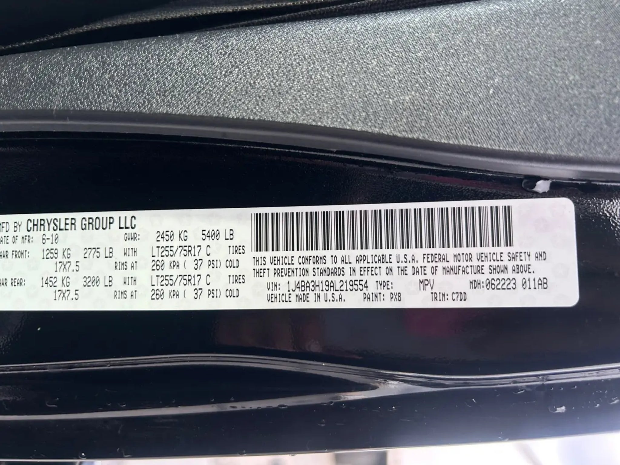 VIN 1J4BA3H19AL219554