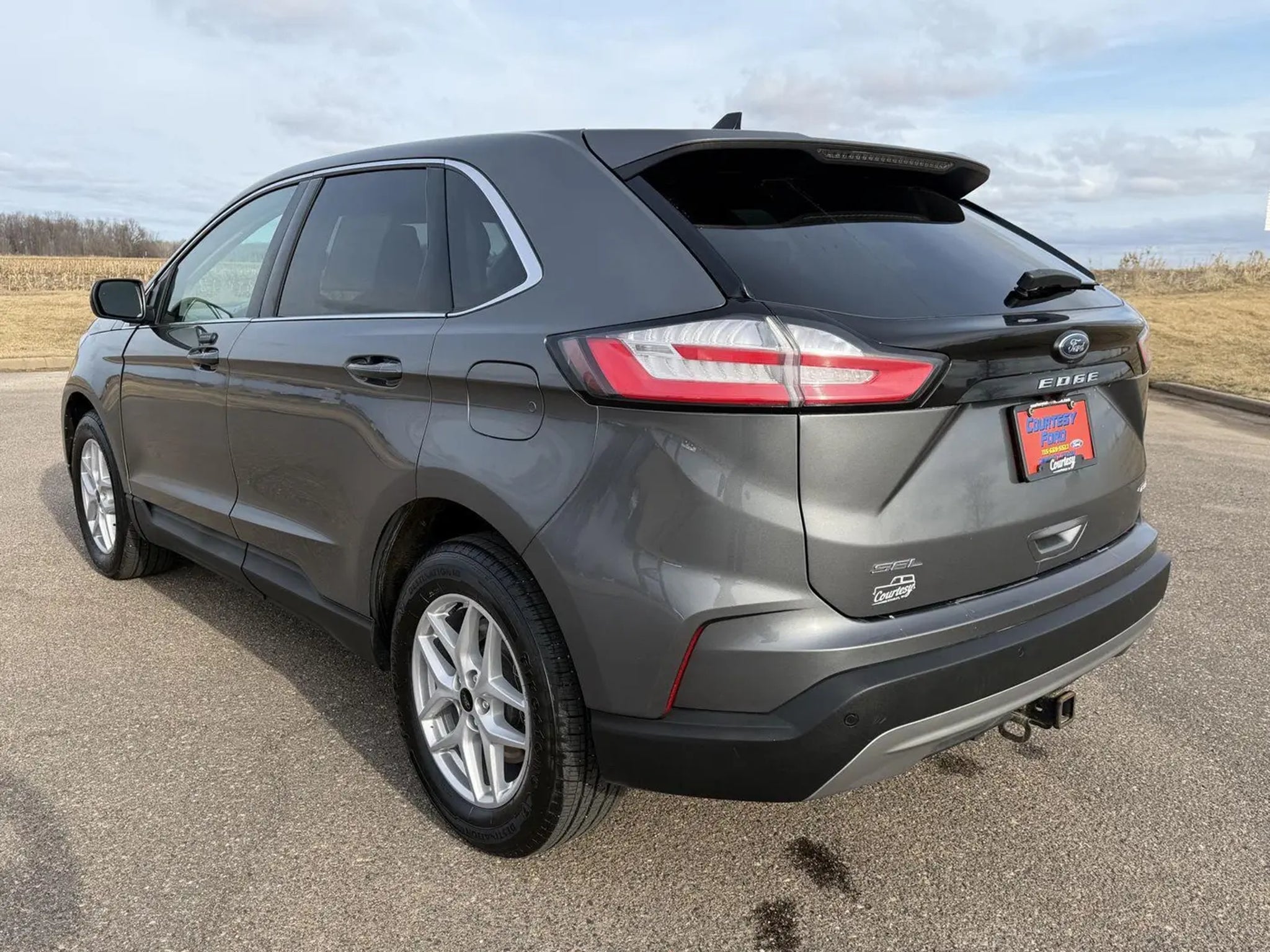 this Carbonized Gray Metallic 2023 Ford Edge SEL would be a welcomed addition to your family/business. Reach out to us at and reference this stock #15183T. No Accidents! One Owner! Why Buy From Courtesy Auto & Truck Center, Inc. Member Pricing representspremium quality of service toThe customer. With all premium,economy, and utility brands thecustomer has a guarantee theyCan lean on."¢ Custom vehicle ordering and delivery"¢ Service pick-up and drop-off"¢ Mobile service vehicle"¢ Rewards program for service"¢ Loaners $19.95 per day New Vehicles (under factory warranty)Lifetime engine limited warranty*. 1-Year Zurich Shield® limited warranty. Courtesy Certified (under 85,000 miles)Lifetime Engine Limited Warranty 1-Year Zurich Shield® Limited Warranty Courtesy Certified (85,001-100,000 miles) 1-Year Zurich Shield® Limited Warranty *Some exclusions apply. This Limited Warranty does not provide coverage if your vehicle:A. Is equipped to plow snow, whether or not the plow blade is attached to your vehicle.B. Is used for commercial hauling, delivery, or limousine service.C. Is used for hauling or towing in excess of the manufacturer's limitations and specifications.D. Is used for rental, racing, speed contest or other competiton, police car, security vehicle, emergency vehicle, shuttle service, taxi or commercial towing.E. Has been declared a total loss or has been inssued a salvaged or branded title. *needs to be less that 5 years old and under 80k miles. All internally lubricated parts contained within the engine block and cylinder head(s). Cylinder head, engine block, and rotor housings when damaged as a result of the failure of a covered internally lubricated part. Coolant, fluids, lubricants, and filters when required in connection with the repair and replacement of a covered part. Important Package Information Convenience Package ($1,250 value) Perimeter Alarm Wireless Charging Pad Fog Lamps with Iconic Silver Bezel Universal Garage Door Opener (UGDO) Power Liftgate 110V/150W AC Power Outlet Remote Start System Equipment Group 201A 8-Speed Automatic Transmission with SelectShift Twin-Scroll 2.0L EcoBoost Engine 3.80 Axle Ratio TBD GVWR AM/FM Stereo/MP3 Capable Radio 245/60R18 AS BSW Tires 18 Sparkle Silver-Painted Aluminum Wheels ActiveX Seating Material Heated Bucket Seats Safety and Security The vehicle is equipped with a system that senses, and then prepares, the vehicle and/or occupants, for an impending forward collision. The vehicle constantly monitors the roadway in front of the vehicle and identifies and tracks pedestrians on an interior display. If the system determines a likely impact, it will automatically take preventative steps to avoid hitting the pedestrian. The vehicle is equipped with a camera that displays an image of the area behind the vehicle on an interior display. Technology and Telematics SYNC 4 AppLink/Apple CarPlay/Android Auto smart device wireless mirroring Mobile devices can wirelessly connect to the internet through the vehicle's private mobile network. Our Dealership We look forward to doing business with you! Give us a call at and schedule a test drive. We are located at 409 Junction Avenue Stanley WI 54768.