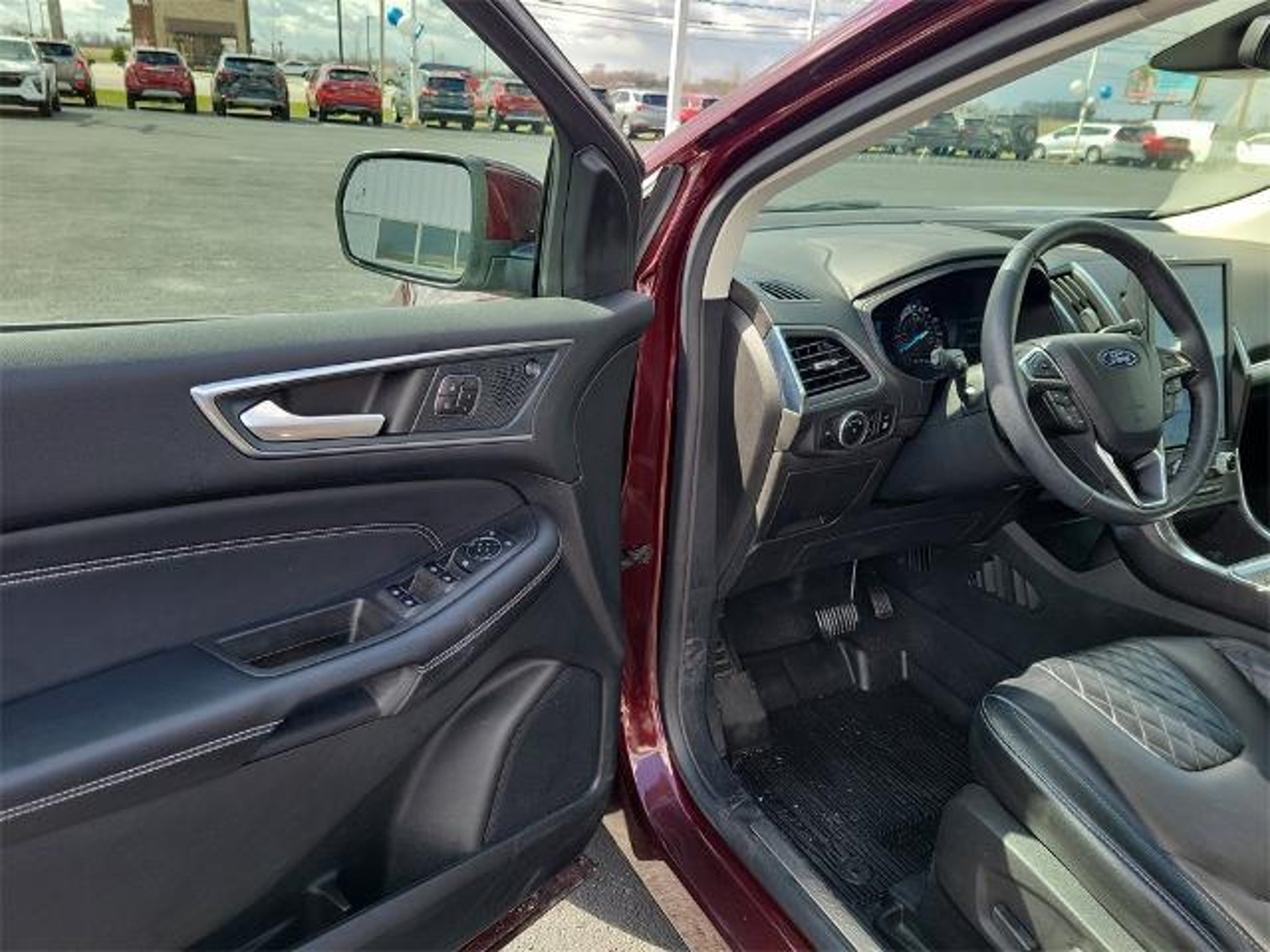 CARFAX One-Owner. Burgundy Velvet Metallic Tinted Clearcoat 2024 Ford Edge Titanium 4D Sport Utility EcoBoost 2.0L I4 GTDi DOHC Turbocharged VCT 8-Speed Automatic AWD BAUMANN AUTO GROUP GENOA - 419.855.8366. We Make Car Buying Fun, Fast, and HASSLE FREE. ONE OWNER, CLEAN CARFAX REPORT, AWD, ActiveX-Trimmed Heated Sport Bucket Seats, FordPass Connect, Power Liftgate, Radio: B&O Sound System by Bang & Olufsen, SiriusXM w/360L, SYNC 4A w/Enhanced Voice Recognition, Wheels: 19 Luster Nickel-Painted Aluminum, 12 Speakers, 3.80 Axle Ratio, 4-Wheel Disc Brakes, ABS brakes, Air Conditioning, Alloy wheels, AM/FM radio: SiriusXM with 360L, Auto High-beam Headlights, Auto-dimming Rear-View mirror, Automatic temperature control, Brake assist, Bumpers: body-color, Compass, Delay-off headlights, Driver door bin, Driver vanity mirror, Dual front impact airbags, Dual front side impact airbags, Electronic Stability Control, Emergency communication system: SYNC 4 911 Assist, Equipment Group 300A, Four wheel independent suspension, Front & Rear Floor Liners w/o Carpet Mats, Front anti-roll bar, Front Bucket Seats, Front Center Armrest w/Storage, Front dual zone A/C, Front fog lights, Front reading lights, Fully automatic headlights, Garage door transmitter, Heated door mirrors, Heated front seats, Heated steering wheel, Illuminated entry, Knee airbag, Leather steering wheel, Low tire pressure warning, Memory seat, Occupant sensing airbag, Outside temperature display, Overhead airbag, Overhead console, Panic alarm, Passenger door bin, Passenger vanity mirror, Power door mirrors, Power driver seat, Power passenger seat, Power steering, Power windows, Rain sensing wipers, Rear anti-roll bar, Rear reading lights, Rear seat center armrest, Rear window defroster, Rear window wiper, Remote keyless entry, Security system, Speed control, Speed-Sensitive Wipers, Split folding rear seat, Spoiler, Steering wheel mounted audio controls, Tachometer, Telescoping steering wheel, Tilt steering wheel, Traction control, Trip computer, Turn signal indicator mirrors, Variably intermittent wipers, AWD, ActiveX-Trimmed Heated Sport Bucket Seats, FordPass Connect, Power Liftgate, Radio: B&O Sound System by Bang & Olufsen, SiriusXM w/360L, SYNC 4A w/Enhanced Voice Recognition, Wheels: 19 Luster Nickel-Painted Aluminum.