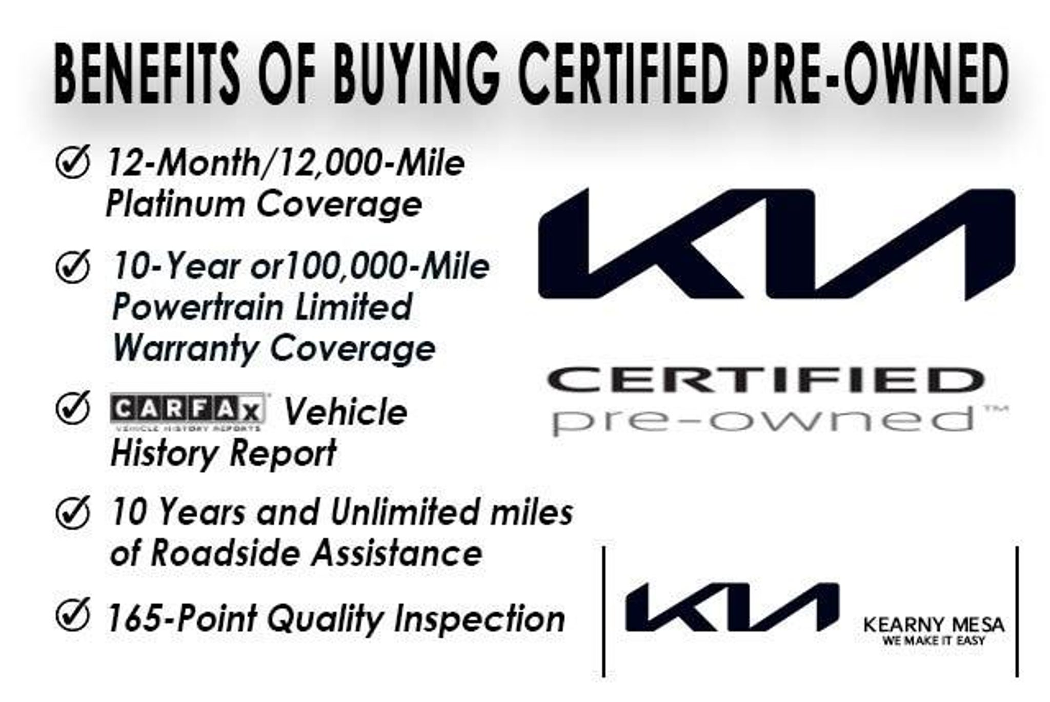 Drive off with peace of mind in a Certified Pre-Owned vehicle. A multi-point inspection ensures everything is perfect working order and ready for you! CARFAX One-Owner. 2023 Kia EV6 Aurora Black Pearl GT EV6 GT, 4D Sport Utility, Electric Motor, 1-Speed Automatic, AWD, Aurora Black Pearl, Black Leather, 14 Speakers, 4-Wheel Disc Brakes, ABS brakes, Adaptive suspension, Air Conditioning, Alloy wheels, AM/FM radio: SiriusXM, Apple CarPlay & Android Auto, Auto High-beam Headlights, Auto-dimming Rear-View mirror, Automatic temperature control, Axle Ratio: 10.650, Brake assist, Bumpers: body-color, Cargo Mat w/Luggage Board, Delay-off headlights, Driver door bin, Driver vanity mirror, Dual front impact airbags, Dual front side impact airbags, Electronic Stability Control, Emergency communication system, Four wheel independent suspension, Front anti-roll bar, Front Bucket Seats, Front Center Armrest, Front dual zone A/C, Front reading lights, Fully automatic headlights, Garage door transmitter: HomeLink, GT Carpeted Floor Mats, Heads-Up Display, Heated door mirrors, Heated front seats, Heated rear seats, Heated Sport Front Bucket Seats, Heated steering wheel, Illuminated entry, Knee airbag, Low tire pressure warning, Navigation system: AVN 5.0 Navigation System, Occupant sensing airbag, Outside temperature display, Overhead airbag, Overhead console, Panic alarm, Passenger door bin, Passenger vanity mirror, Power door mirrors, Power Liftgate, Power moonroof, Power steering, Power windows, Radio: Meridian Premium Audio System, Rain sensing wipers, Rear anti-roll bar, Rear seat center armrest, Rear window defroster, Remote keyless entry, Security system, Speed control, Speed-sensing steering, Split folding rear seat, Spoiler, Sport steering wheel, Steering wheel mounted audio controls, Suede Seat Trim, Telescoping steering wheel, Tilt steering wheel, Traction control, Trip computer, Turn signal indicator mirrors, Variably intermittent wipers, Wheels: 8.5J x 21 Black Painted Alloy. 85/74 City/Highway MPG Clean CARFAX. Odometer is 12085 miles below market average! Why buy Kearny Mesa Ford & Kia? Because Kearny Mesa means more! More savings, more value, more peace of mind! And we are conveniently located off the 805 Freeway at 7303 Clairemont Mesa Blvd., San Diego, CA 92111.