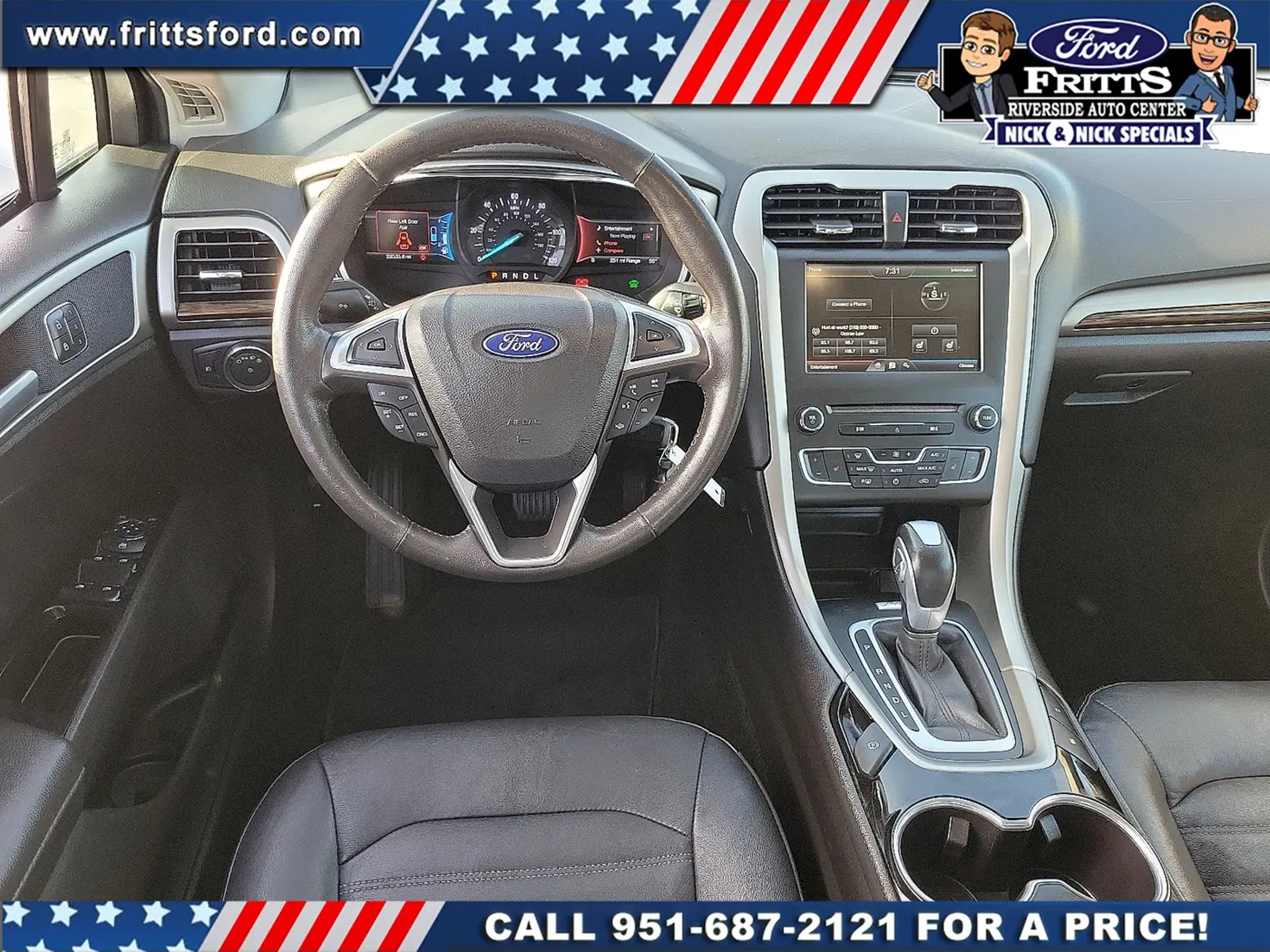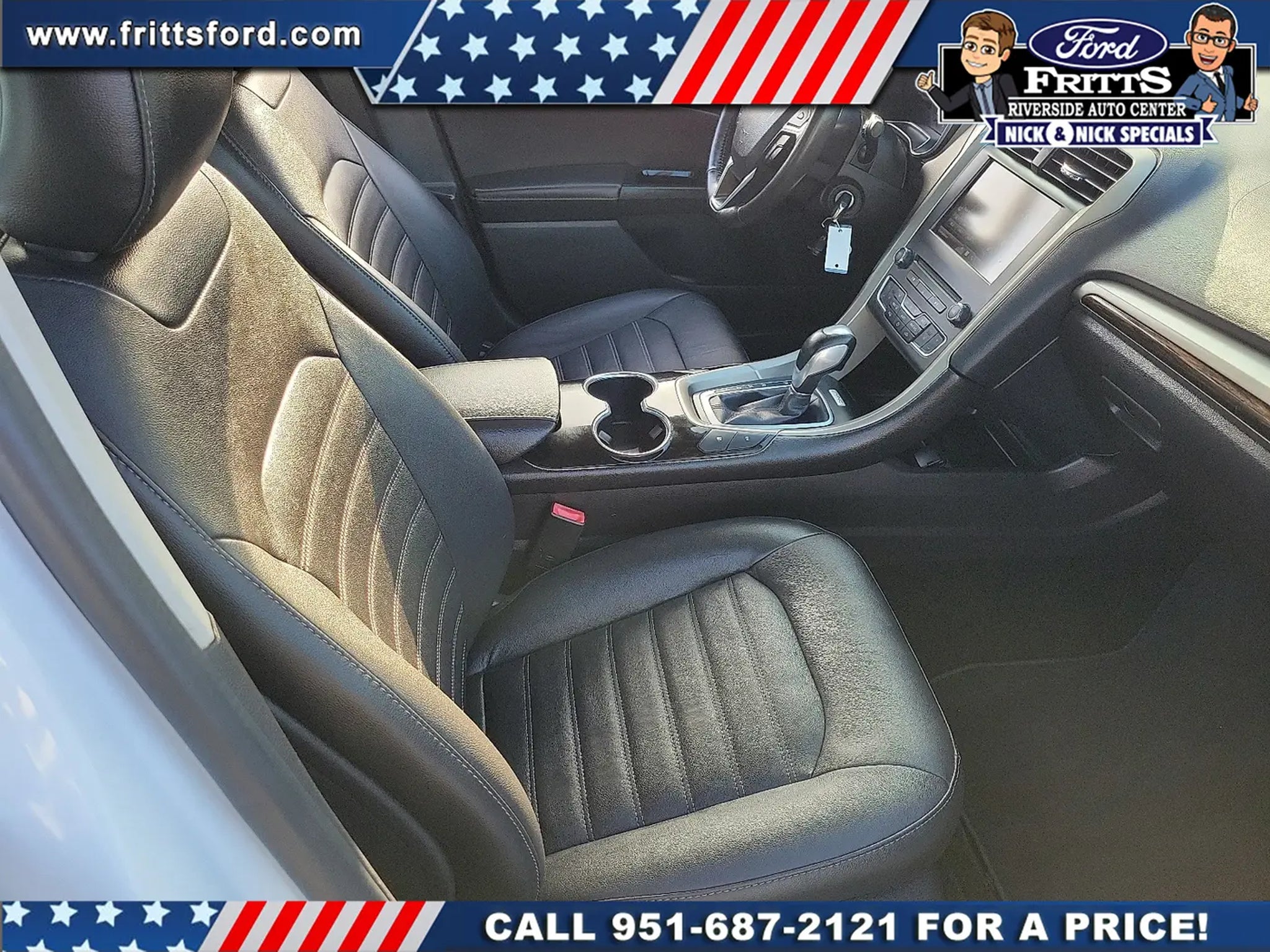 Ready to take home today!. CARFAX One-Owner. Oxford White FWD E-CVT Automatic 2.0L I4 40/36 City/Highway MPG 40/36 City/Highway MPG Odometer is 107124 miles below market average!Call Internet for the best price at .Fritts Ford New & Used Ford Dealer Serving Riverside Corona San Bernardino Moreno Valley and Fontana Invites You to Become a Ford Savant. People wishing to upgrade to a new 2014-2015 Ford Fusion Focus F-150 Explorer or Escape are invited to visit our showroom and take a test drive today. When it comes to our pre-owned car inventory at Fritts Ford we go the extra mile in making sure that each and every model that gets slated for sale undergoes a thorough inspection first. Equipment Group 700A 10 Speakers 17Sparkle Silver Aluminum Wheels 4-Wheel Disc Brakes ABS brakes Air Conditioning Alloy wheels AM/FM radio: SiriusXM AM/FM Stereo Auto-dimming door mirrors Auto-dimming Rear-View mirror Automatic temperature control Brake assist Bumpers: body-color CD player Compass Delay-off headlights Driver door bin Driver vanity mirror Dual front impact airbags Dual front side impact airbags Electronic Stability Control Emergency communication system: 911 Assist Exterior Parking Camera Rear Four wheel independent suspension Front anti-roll bar Front Bucket Seats Front Center Armrest Front dual zone A/C Front fog lights Front License Plate Bracket Front reading lights Fully automatic headlights Heated door mirrors Heated front seats Illuminated entry Knee airbag Leather Shift Knob Leather-Trimmed Heated Front Bucket Seats Low tire pressure warning Memory seat Occupant sensing airbag Outside temperature display Overhead airbag Overhead console Panic alarm Passenger door bin Passenger vanity mirror Power door mirrors Power driver seat Power passenger seat Power steering Power windows Radio data system Rear anti-roll bar Rear Parking Sensors Rear reading lights Rear seat center armrest Rear window defroster Remote keyless entry Security system Speed control Speed-sensing steering Speed-Sensitive Wipers Split folding rear seat Steering wheel mounted audio controls SYNC w/MyFord Touch Tachometer Telescoping steering wheel Tilt steering wheel Traction control Trip computer Turn signal indicator mirrors and Variably intermittent wipers.