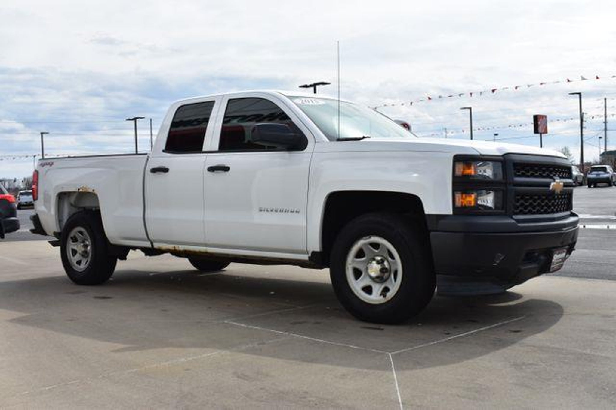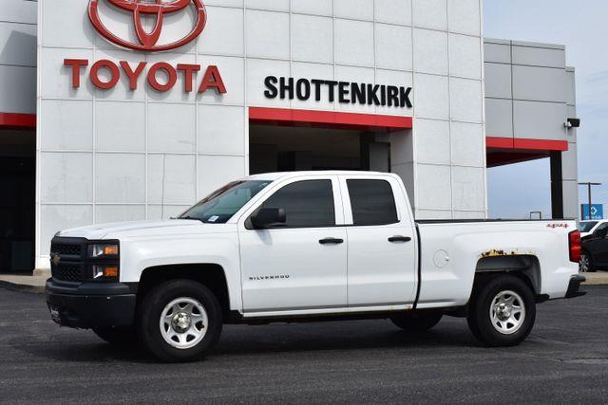 [Clean CARFAX. Priced below KBB Fair Purchase Price! 4D Double Cab 2015 Chevrolet Silverado 1500 Summit White WT EcoTec3 4.3L V6 6-Speed Automatic Electronic with Overdrive 4WD Towing/Camper Pkg Clean Carfax Leather Local Trade Silverado 1500 WT 6-Speed Automatic Electronic with Overdrive 4WD Summit White Dark Ash With Jet Black Interior Accents Vinyl 40/20/40 Front Split Bench Seat 6 Speaker Audio System ABS brakes Air Conditioning AM/FM radio Driver door bin Front Center Armrest w/Storage Fully automatic headlights Low tire pressure warning Overhead console Passenger door bin Passenger vanity mirror Power steering Power windows Power Windows w/Driver Express Up Radio data system Rear Bumper Cornersteps Rear step bumper Speed control Tilt steering wheel Traction control Variably intermittent wipers. Standard with Shottenkirk Care which includes a 3 month 3000k mile powertrain warranty dent and ding repair tire road hazard and wheel repair and windshield chip repair. (Call us for details) Shottenkirk Toyota of Quincy Illinois has been serving the needs of tri-state motorists for years.Offering top notch new and used Toyota sales service and parts in a friendly environment that puts a premium on service not prices! We're proud to be a destination for used car shoppers from the Jacksonville Springfield Carthage Il. Hannibal Kirksville St. Louis Columbia Mo. And the Mt.Pleasant Keokuk Farmington Fort Madison Iowa areas.Whether you visit us to buy an used Chevrolet like a Silverado Camaro Impala G6 Sonic Cruz Corvette Equinox Traverse Tahoe Suburban Colorado Avalanche or to get service for your existing vehicle you'll get impeccable service.We have an outstanding reputation for quality and a no-hassle buying experience. You may also visit us at ] [Our Toyota dealership is happy to help drivers in Quincy, IL and surrounding areas in finding Toyota cars, trucks and SUVs for sale. We believe that after just a few moments of sifting through our abundant inventory, motorists will find the perfect vehicle for their needs. We also offer competitive finance packages and service options as well! Did we mention that most of your automotive requests can be booked entirely online? Starting online can save you lots of valuable time. Our website will serve you well if you're looking to apply for financing, schedule a service appointment, or browse service specials. ]