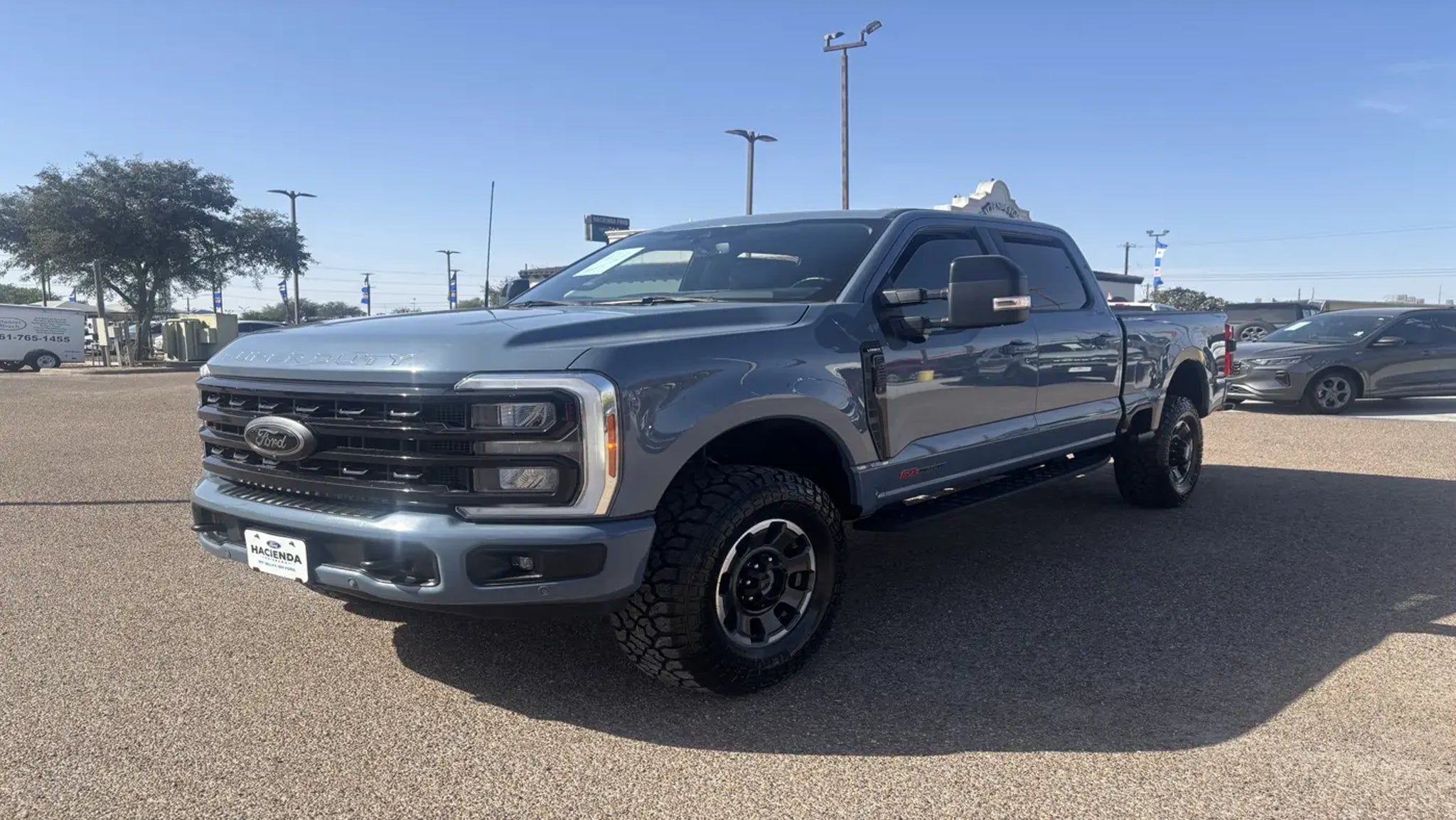 Clean CARFAX.4WD.**My Valley, My Ford** *THIS VEHICLE INCLUDES THE FOLLOWING FEATURES AND OPTIONS: 5th Wheel/Gooseneck Hitch Prep Package, Black Appearance Package (6 Ebony Black Angular Running Boards, Body Color Front & Rear Bumpers, Ebony Black Painted Front Grille Bars, Ebony Black Painted Mirror Caps, Tough Bed Spray-In Bedliner, and Wheels: 20 Machined & Ebony Black High Gloss), F-250 >10K GVWR Package, High Capacity 11.6 Axle Upgrade Package, Lariat Ultimate Package (4-Way Adjustable Headrests, Front Sensing System, Head-Up Display, Power-Deployable Running Boards, Radio: B&O Unleashed Sound System by Bang & Olufsen, SiriusXM Radio w/360L, SYNC 4 w/Enhanced Voice Recognition, Tailgate Step & Handle, Upfitter Switches (6), and Wireless Charging Pad), Order Code 608A, Tow Technology Package (Intelligent Adaptive Cruise Control w/Stop-and-Go, Lane Keeping Assist, Pro Trailer Backup Assist, and Pro Trailer Hitch Assist), 4WD, 4-Wheel Disc Brakes, 410 Amp Dual Alternators, 8 Speakers, ABS brakes, Adjustable pedals, Air Conditioning, Alloy wheels, AM/FM radio: SiriusXM with 360L, Auto High-beam Headlights, Auto tilt-away steering wheel, Auto-dimming Rear-View mirror, Automatic High Beam, Automatic temperature control, BLIS w/Cross-Traffic Alert, Brake assist, Bumpers: chrome, Compass, Delay-off headlights, Driver door bin, Driver vanity mirror, Dual 68 AH/65 AGM Batteries, Dual front impact airbags, Dual front side impact airbags, Electronic Stability Control, Emergency communication system: SYNC 4 911 Assist, Engine Block Heater, Exterior Parking Camera Rear, Flow-Through Console, Front anti-roll bar, Front Bucket Seats, Front Center Armrest, Front dual zone A/C, Front fog lights, Front Leather-Trimmed 40/Console/40 Seats, Front License Plate Bracket, Front reading lights, Fully automatic headlights, Garage door transmitter, Heated door mirrors, Heated front seats, Heated rear seats, Heated steering wheel, Illuminated entry, Lane-Keeping System, Leather steering wheel, Low tire pressure warning, Memory seat, Navigation system: Connected Navigation, Outside temperature display, Overhead airbag, Overhead console, Panic alarm, Passenger door bin, Passenger vanity mirror, Pedal memory, Post-Collision Braking, Power door mirrors, Power driver seat, Power passenger seat, Power steering, Power windows, Pre-Collision Assist, Pro Power Onboard - 2kW, Radio: B&O Sound System by Bang & Olufsen, Rain sensing wipers, Rapid-Heat Supplemental Cab Heater, Rear reading lights, Rear seat center armrest, Rear step bumper, Rear window defroster, Remote keyless entry, Security system, Speed control, Split folding rear seat, Steering wheel memory, Steering wheel mounted audio controls, Tachometer, Telescoping steering wheel, Tilt steering wheel, Traction control, Trip computer, Turn signal indicator mirrors, Twin Panel Power Moonroof, Variably intermittent wipers, Ventilated front seats, and Wheels: 18 Bright Machined & Carbonized Gray Alum.Hacienda Has It!