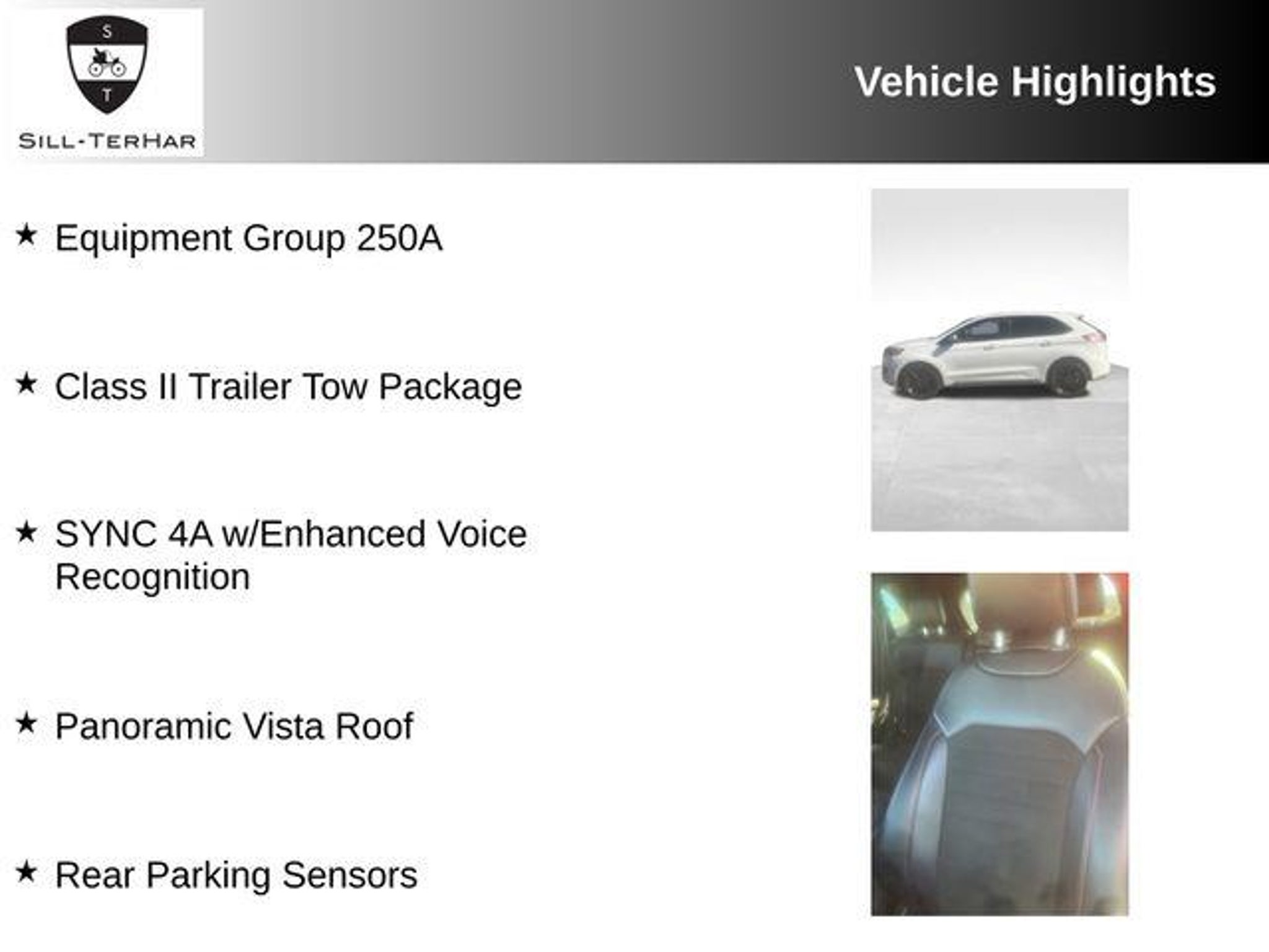 This 2024 Ford Edge ST Line is a rare find, offering a unique blend of style, performance, and advanced technology. With its striking White exterior and a powerful EcoBoost 2.0L I4 engine, this SUV is ready to elevate your driving experience. - This Edge ST Line is equipped with a host of premium features, including a Panoramic Vista Roof, Heated Steering Wheel, and a Class II Trailer Tow Package. - Other standout features include SYNC 4A with Enhanced Voice Recognition, Rear Parking Sensors, and a Star White Metallic Tri-Coat exterior. - The Edge ST Line also boasts impressive fuel efficiency, with an EPA-estimated 21 city/28 highway MPG. This vehicle's exceptional condition is evident in its low mileage of just 32,172. As a Certified Pre-Owned Ford, it has undergone a rigorous inspection and comes with the peace of mind of a comprehensive warranty. You can trust that this Edge ST Line has been meticulously maintained and is ready to provide you with years of reliable service. Imagine yourself behind the wheel, enjoying the responsive handling and the refined interior. The ActiveX-trimmed heated bucket seats and the intuitive technology features will make every drive a pleasure. Whether you're commuting, running errands, or embarking on a weekend adventure, this Edge ST Line is up for the task. At our dealership, we pride ourselves on delivering exceptional customer service and a seamless buying experience. We invite you to schedule a test drive and experience the exceptional quality and performance of this 2024 Ford Edge ST Line for yourself. Let us demonstrate how this versatile and well-equipped SUV can enhance your daily driving and elevate your lifestyle. We're confident that once you see and feel the difference, you'll be eager to make this Edge ST Line your own. Visit us today and let us help you discover the perfect vehicle to meet your needs and exceed your expectations.