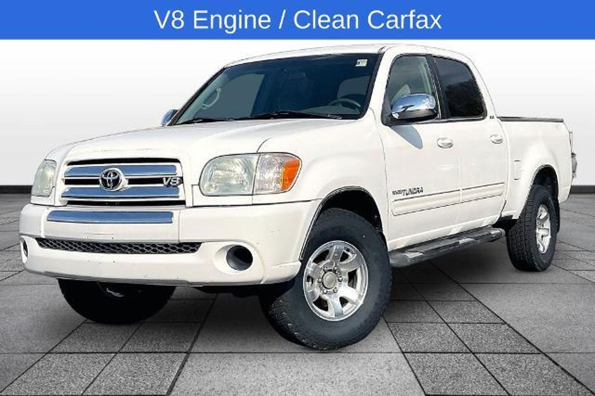**FORD OF DALTON WHOLESALE TO THE PUBLIC AUCTION VEHICLE** These are a select offering of used cars, trucks, and SUVs that have traditionally been sold to independent dealers and small used car lots. They are generally higher mileage, older, lower-priced vehicles that are perhaps flawed in some way. They are only offered for a limited time before being sent to auction. They are sold 100% AS-IS without any warranty coverage. They are sold with our best price listed on the windshield with no negotiation necessary!! Contact dealer for more information. Recent Arrival! Clean CARFAX. White 2005 Toyota Tundra SR5 4WD 5-Speed Automatic with Overdrive 4.7L V8 DOHC VVT-i 32V 4.7L V8 DOHC VVT-i 32V, 4WD, Taupe Cloth, ABS brakes, Air Conditioning, AM/FM Stereo CD w/6 Speakers, Cloth Seat Trim, Fog Lamps, Remote keyless entry, Towing Package.