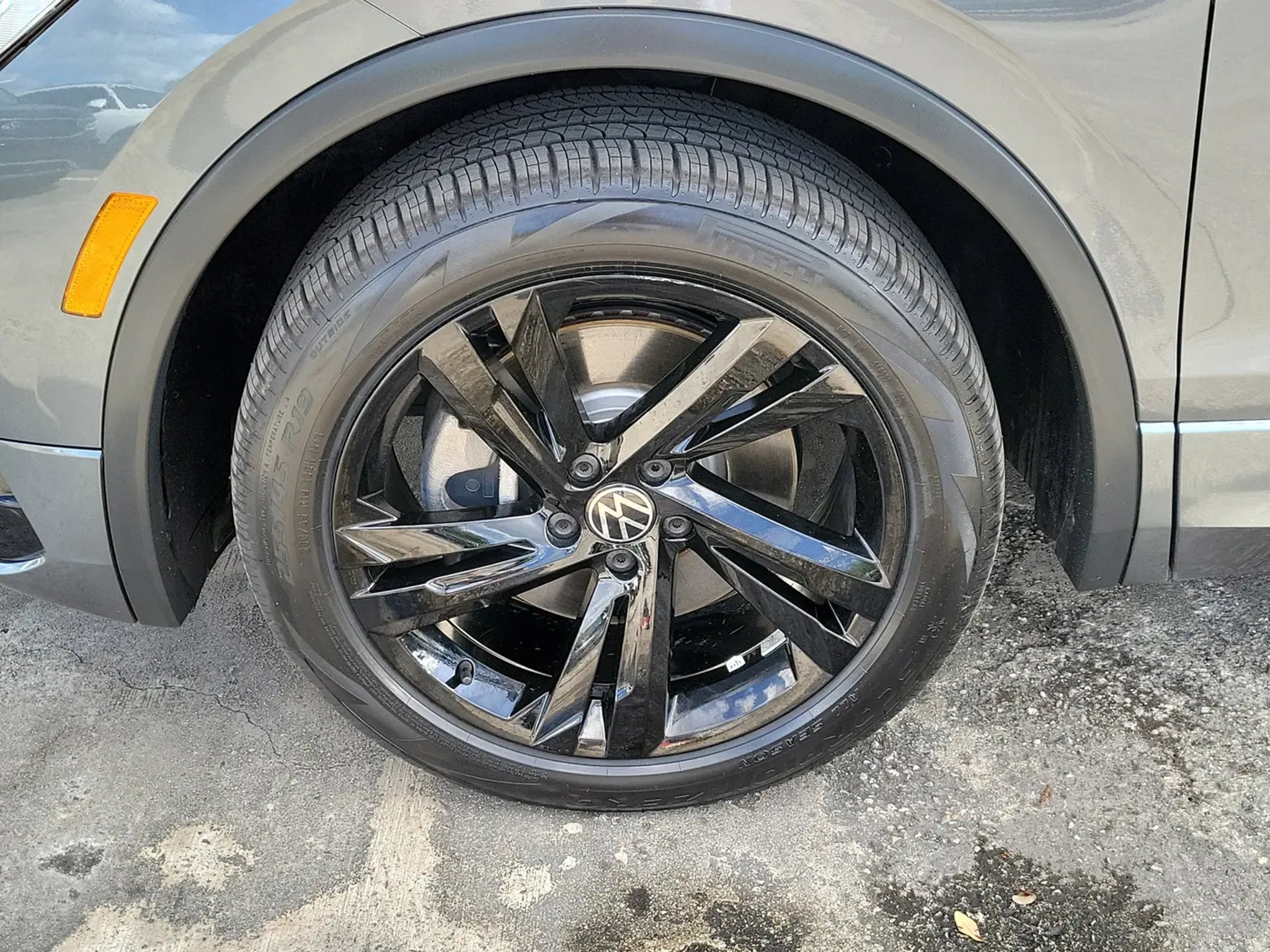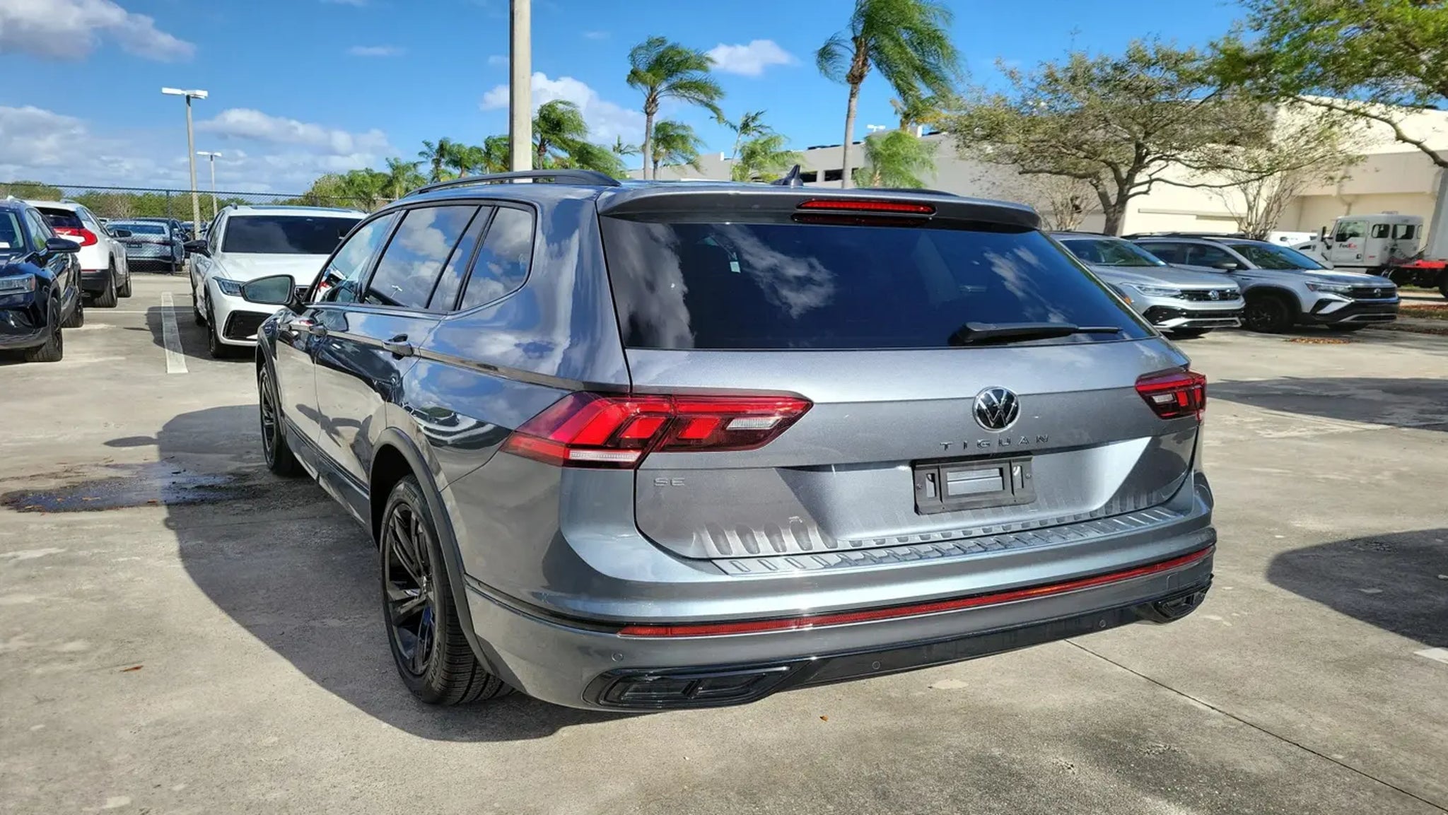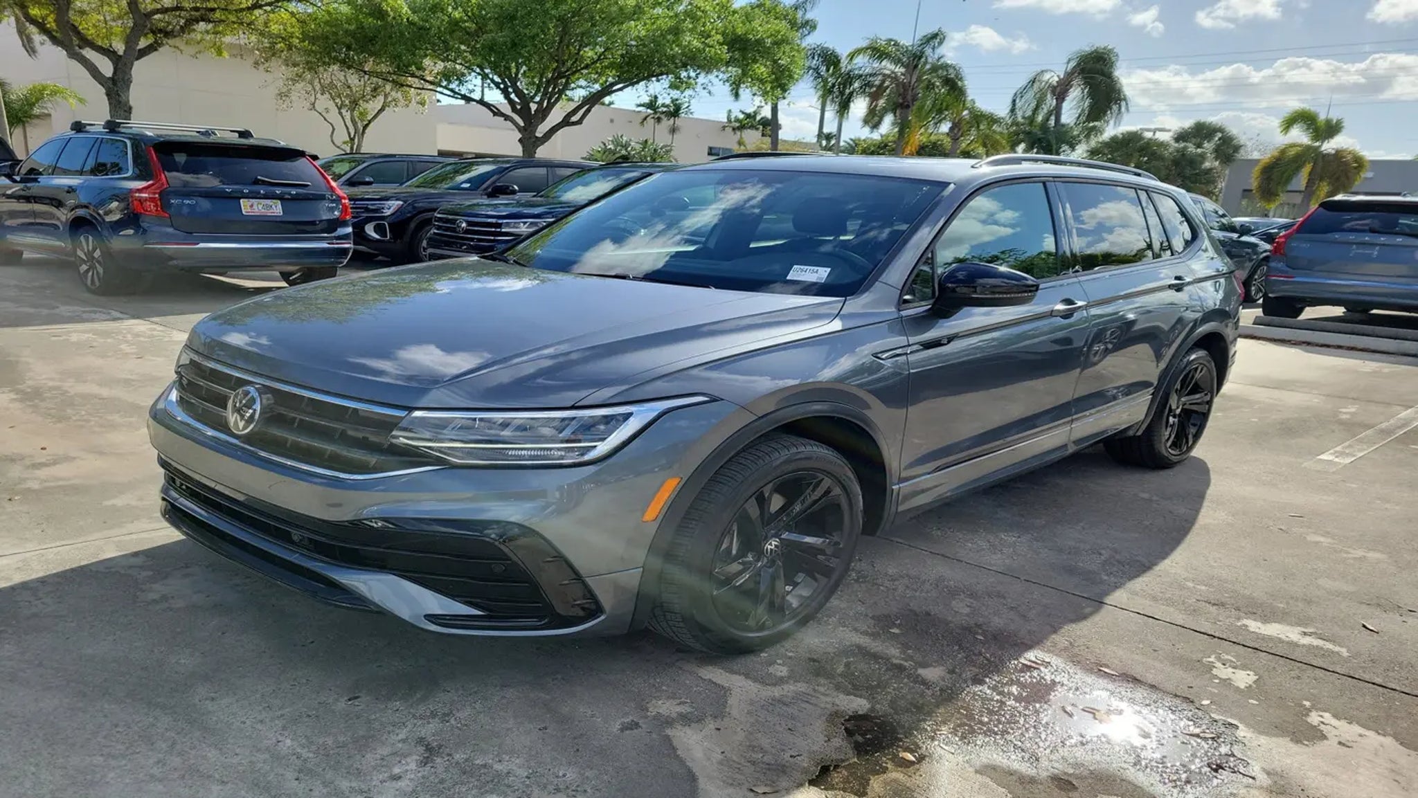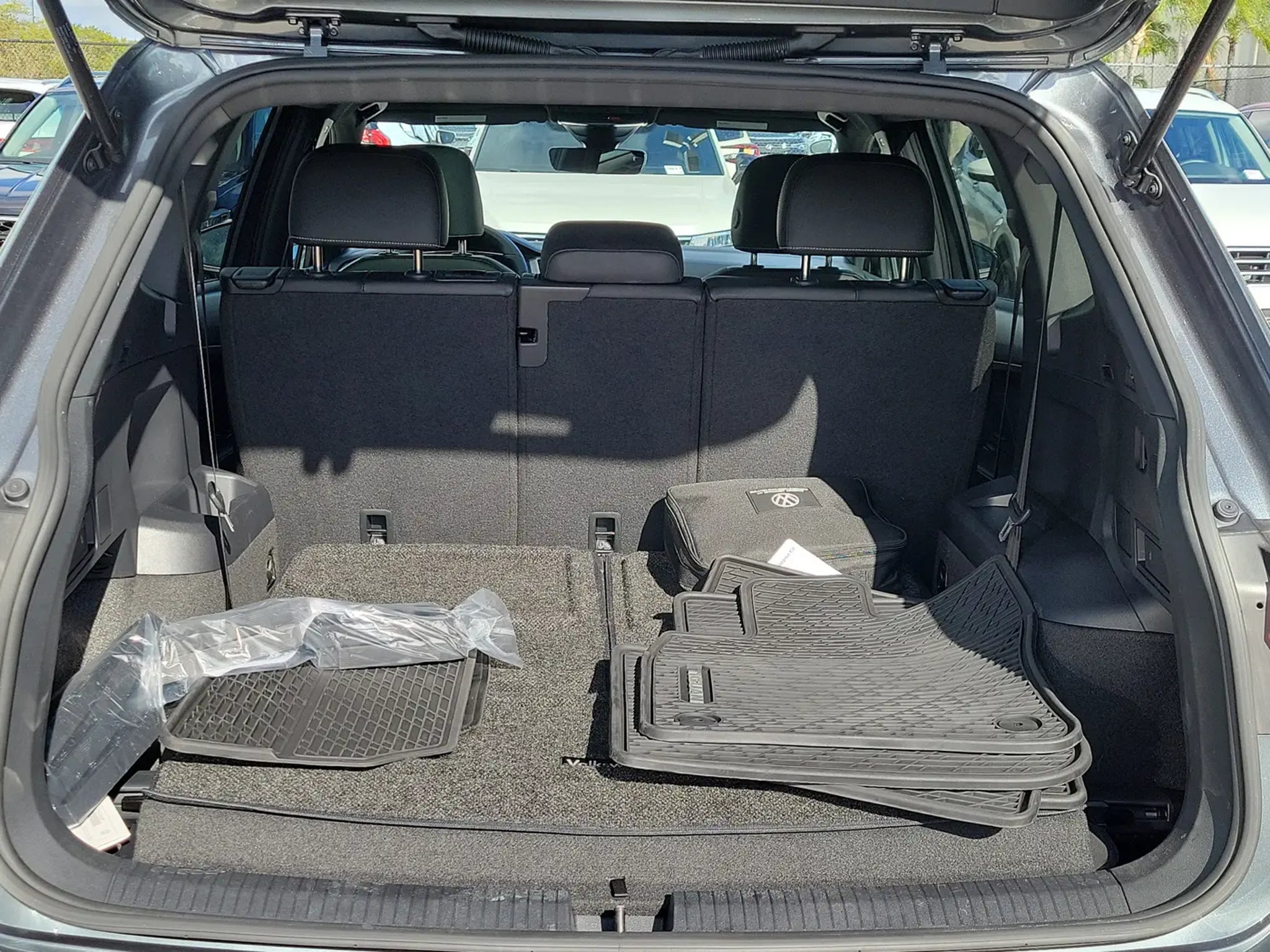 CARFAX One-Owner. Platinum Gray Metallic 2023 Volkswagen Tiguan 2.0T SE R-Line Black 2.0L TSI DOHC 8-Speed Automatic with Tiptronic FWD 3-Row Rubber Monster Mats w/Logo Kit (Set of 5), 3.33 Axle Ratio, 3rd row seats: bench, 4-Wheel Disc Brakes, 4-Wheel Independent Suspension, 6 Speakers, ABS brakes, Air Conditioning, Alloy wheels, AM/FM radio: SiriusXM with 360L, Auto-dimming Rear-View mirror, Auto-Dimming Rearview Mirror w/HomeLink Connect, Automatic temperature control, Brake assist, Bumpers: body-color, Cargo Area Retractable Privacy Cover, Compass, Credit - Power Rear Liftgate Removed, Delay-off headlights, Driver door bin, Driver vanity mirror, Dual front impact airbags, Dual front side impact airbags, Electronic Stability Control, Emergency communication system: VW Car-Net Safe & Secure 5-year, Exterior Parking Camera Rear, First Aid Kit, Four wheel independent suspension, Front anti-roll bar, Front Bucket Seats, Front Center Armrest, Front dual zone A/C, Front reading lights, Fully automatic headlights, Heated door mirrors, Heated Front Comfort Seats, Heated front seats, Heavy Duty Trunk Liner w/VW CarGo Blocks, Illuminated entry, Leather Shift Knob, Leather steering wheel, Low tire pressure warning, Occupant sensing airbag, Outside temperature display, Overhead airbag, Overhead console, Panic alarm, Passenger door bin, Passenger vanity mirror, Perforated V-Tex Leatherette Seating Surfaces, Power door mirrors, Power driver seat, Power Liftgate, Power moonroof, Power steering, Power windows, Radio data system, Radio: MIB3 Composition Media AM/FM/HD, Rain sensing wipers, Rear anti-roll bar, Rear reading lights, Rear seat center armrest, Rear window defroster, Rear window wiper, Remote keyless entry, Roadside Assistance Kit, Security system, Speed control, Speed-sensing steering, Split folding rear seat, Spoiler, Sport steering wheel, Steering wheel mounted audio controls, Tachometer, Telescoping steering wheel, Tilt steering wheel, Traction control, Trip computer, Turn signal indicator mirrors, Variably intermittent wipers, VW Car-Net Safe & Secure 5-Year Plan, and Wheels: 19 Black Painted Twin 5-Spoke Alloy.Odometer is 8764 miles below market average! 23/30 City/Highway MPGCALL USED CAR SALES FOR INFORMATION AND IMMEDIATE ASSISTANCE .