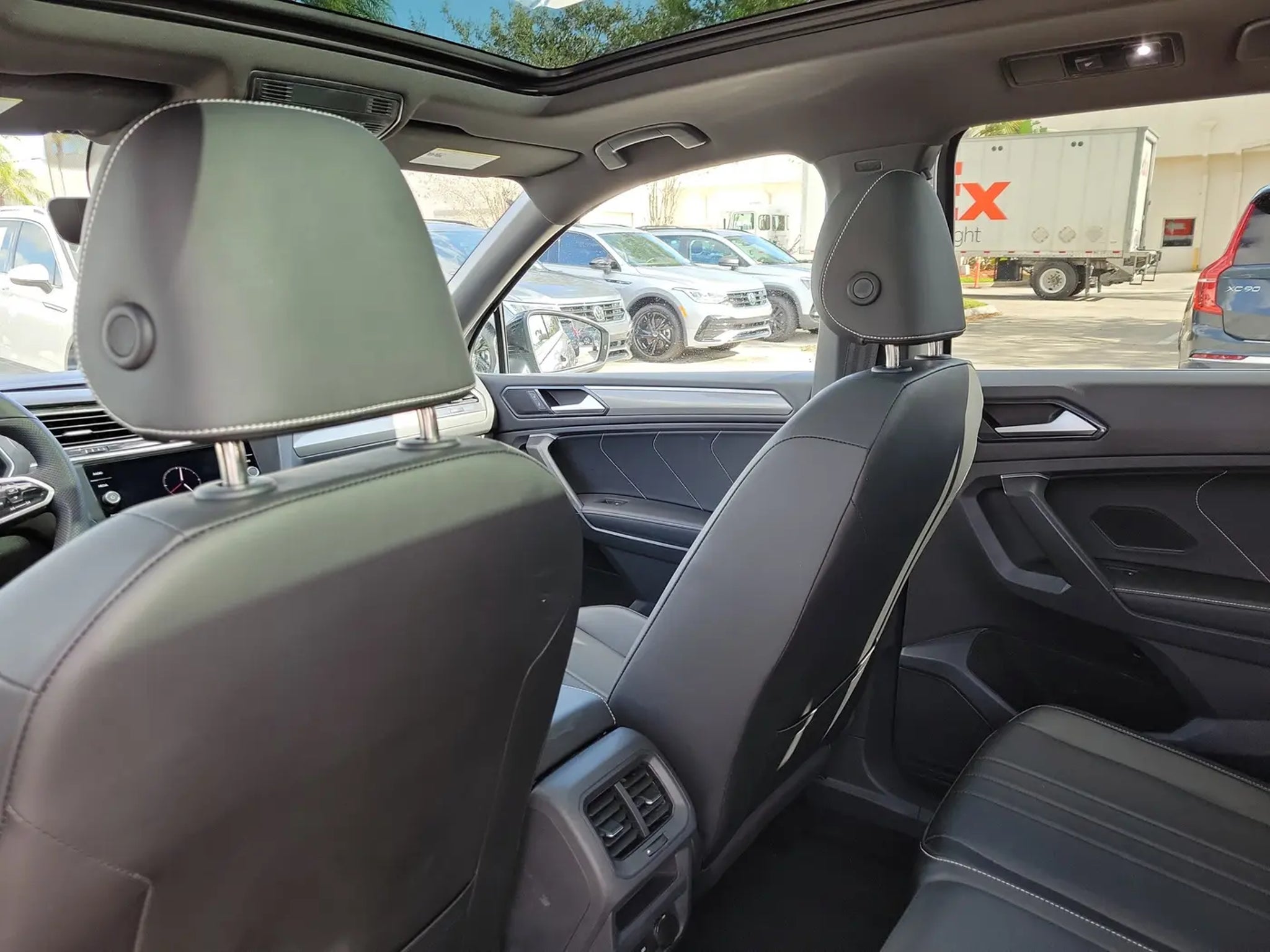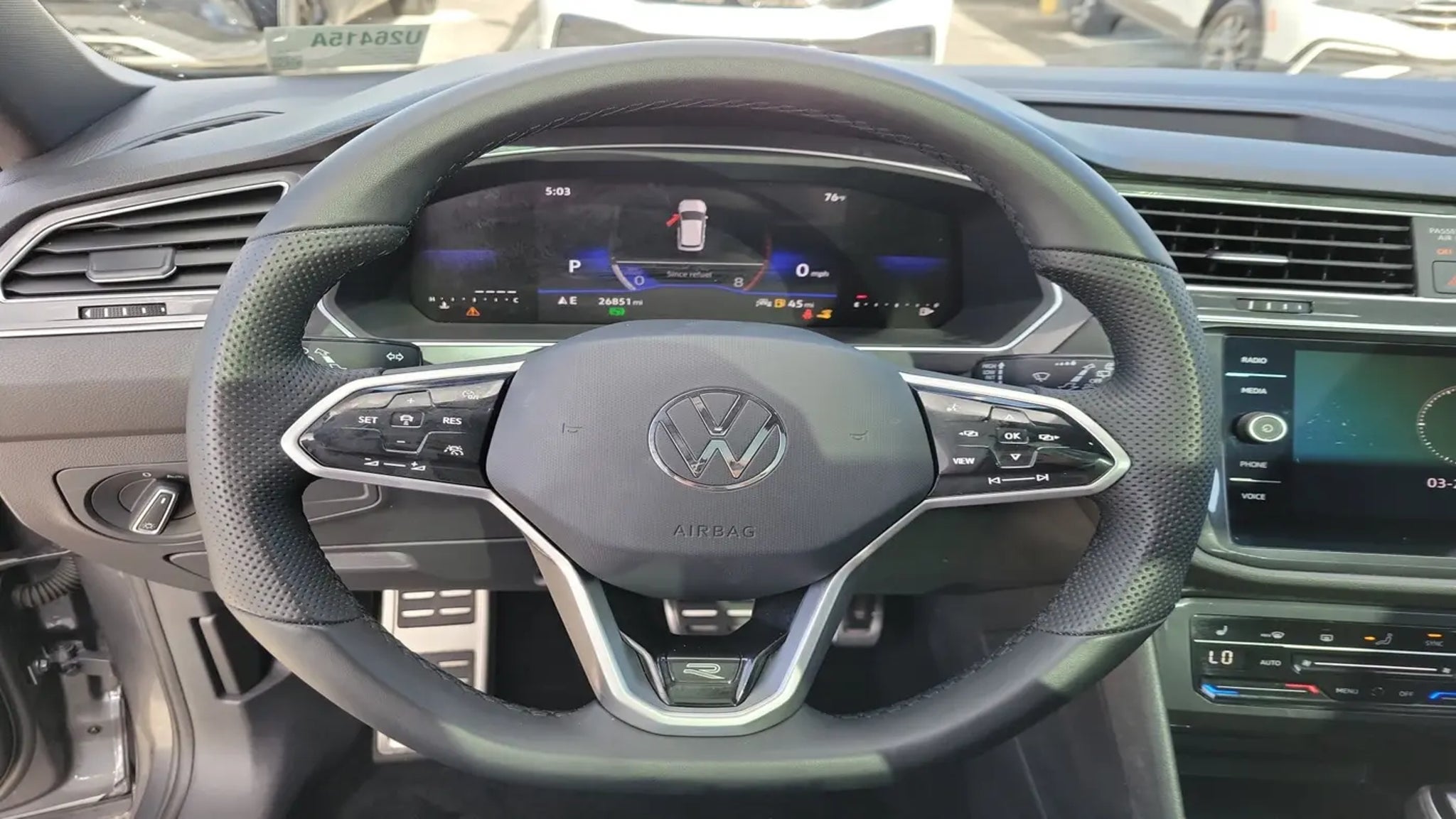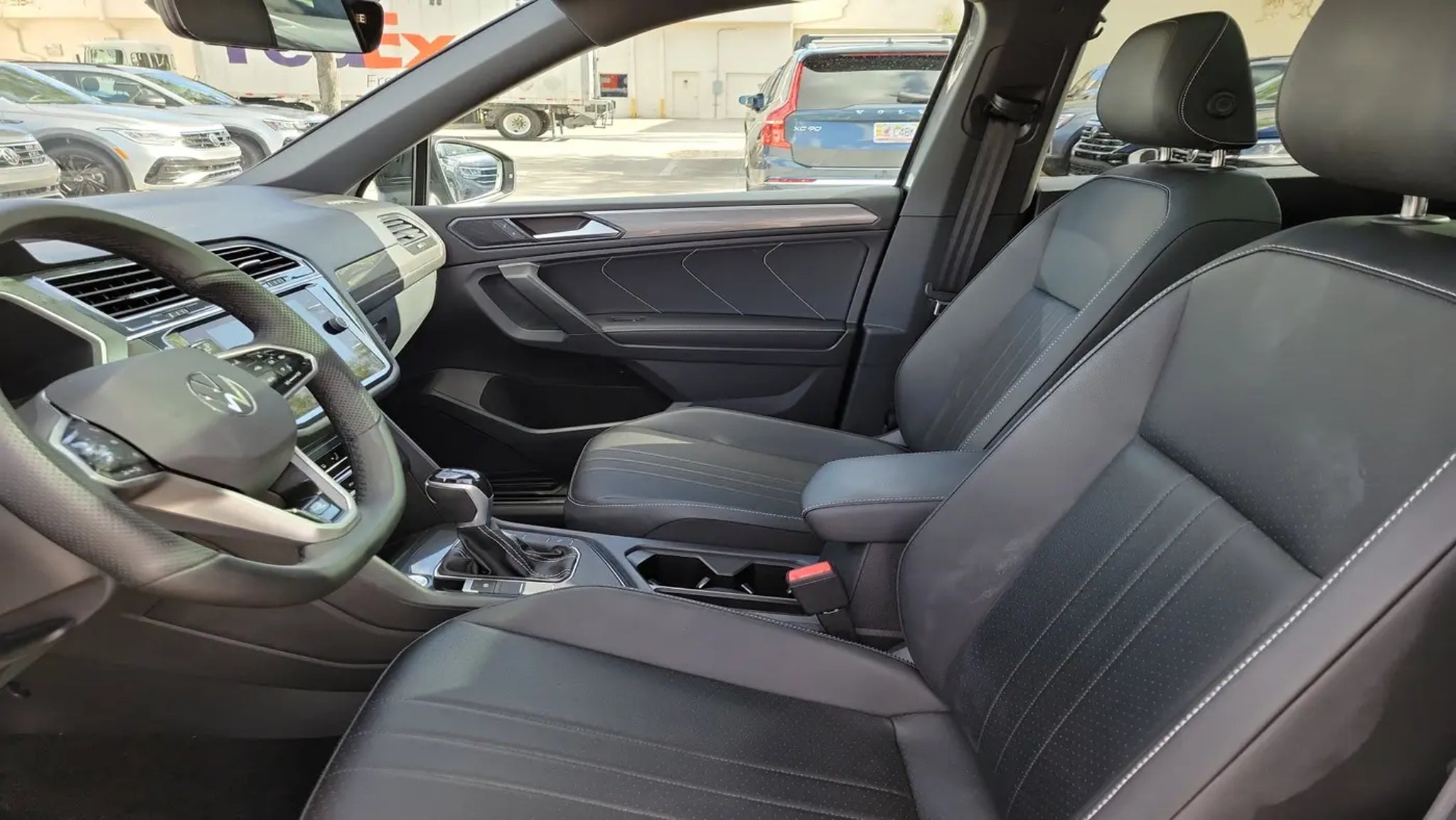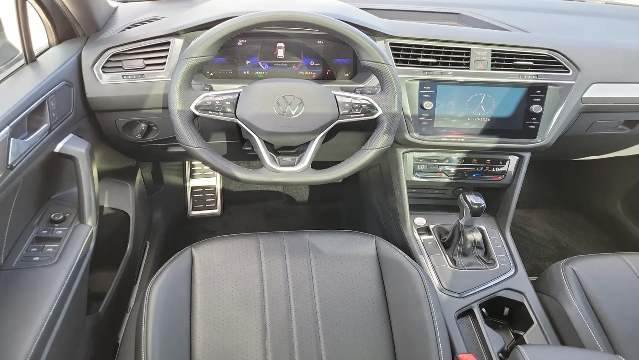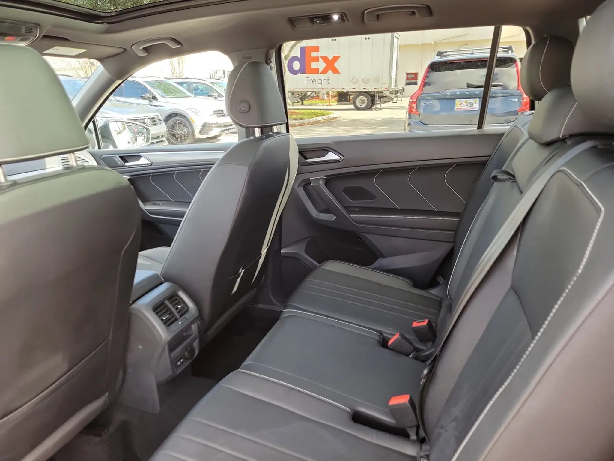 CARFAX One-Owner. Platinum Gray Metallic 2023 Volkswagen Tiguan 2.0T SE R-Line Black 2.0L TSI DOHC 8-Speed Automatic with Tiptronic FWD 3-Row Rubber Monster Mats w/Logo Kit (Set of 5), 3.33 Axle Ratio, 3rd row seats: bench, 4-Wheel Disc Brakes, 4-Wheel Independent Suspension, 6 Speakers, ABS brakes, Air Conditioning, Alloy wheels, AM/FM radio: SiriusXM with 360L, Auto-dimming Rear-View mirror, Auto-Dimming Rearview Mirror w/HomeLink Connect, Automatic temperature control, Brake assist, Bumpers: body-color, Cargo Area Retractable Privacy Cover, Compass, Credit - Power Rear Liftgate Removed, Delay-off headlights, Driver door bin, Driver vanity mirror, Dual front impact airbags, Dual front side impact airbags, Electronic Stability Control, Emergency communication system: VW Car-Net Safe & Secure 5-year, Exterior Parking Camera Rear, First Aid Kit, Four wheel independent suspension, Front anti-roll bar, Front Bucket Seats, Front Center Armrest, Front dual zone A/C, Front reading lights, Fully automatic headlights, Heated door mirrors, Heated Front Comfort Seats, Heated front seats, Heavy Duty Trunk Liner w/VW CarGo Blocks, Illuminated entry, Leather Shift Knob, Leather steering wheel, Low tire pressure warning, Occupant sensing airbag, Outside temperature display, Overhead airbag, Overhead console, Panic alarm, Passenger door bin, Passenger vanity mirror, Perforated V-Tex Leatherette Seating Surfaces, Power door mirrors, Power driver seat, Power Liftgate, Power moonroof, Power steering, Power windows, Radio data system, Radio: MIB3 Composition Media AM/FM/HD, Rain sensing wipers, Rear anti-roll bar, Rear reading lights, Rear seat center armrest, Rear window defroster, Rear window wiper, Remote keyless entry, Roadside Assistance Kit, Security system, Speed control, Speed-sensing steering, Split folding rear seat, Spoiler, Sport steering wheel, Steering wheel mounted audio controls, Tachometer, Telescoping steering wheel, Tilt steering wheel, Traction control, Trip computer, Turn signal indicator mirrors, Variably intermittent wipers, VW Car-Net Safe & Secure 5-Year Plan, and Wheels: 19 Black Painted Twin 5-Spoke Alloy.Odometer is 8764 miles below market average! 23/30 City/Highway MPGCALL USED CAR SALES FOR INFORMATION AND IMMEDIATE ASSISTANCE .