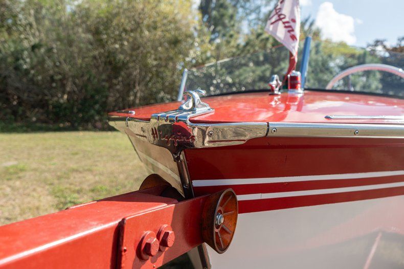Key Facts: 218ci Inline-Six Forward-Reverse Transmission White & Red Topsides Varnished Transom Red Vinyl Uphosltery Split Windscreen Navigation Lights Single-Axle Trailer