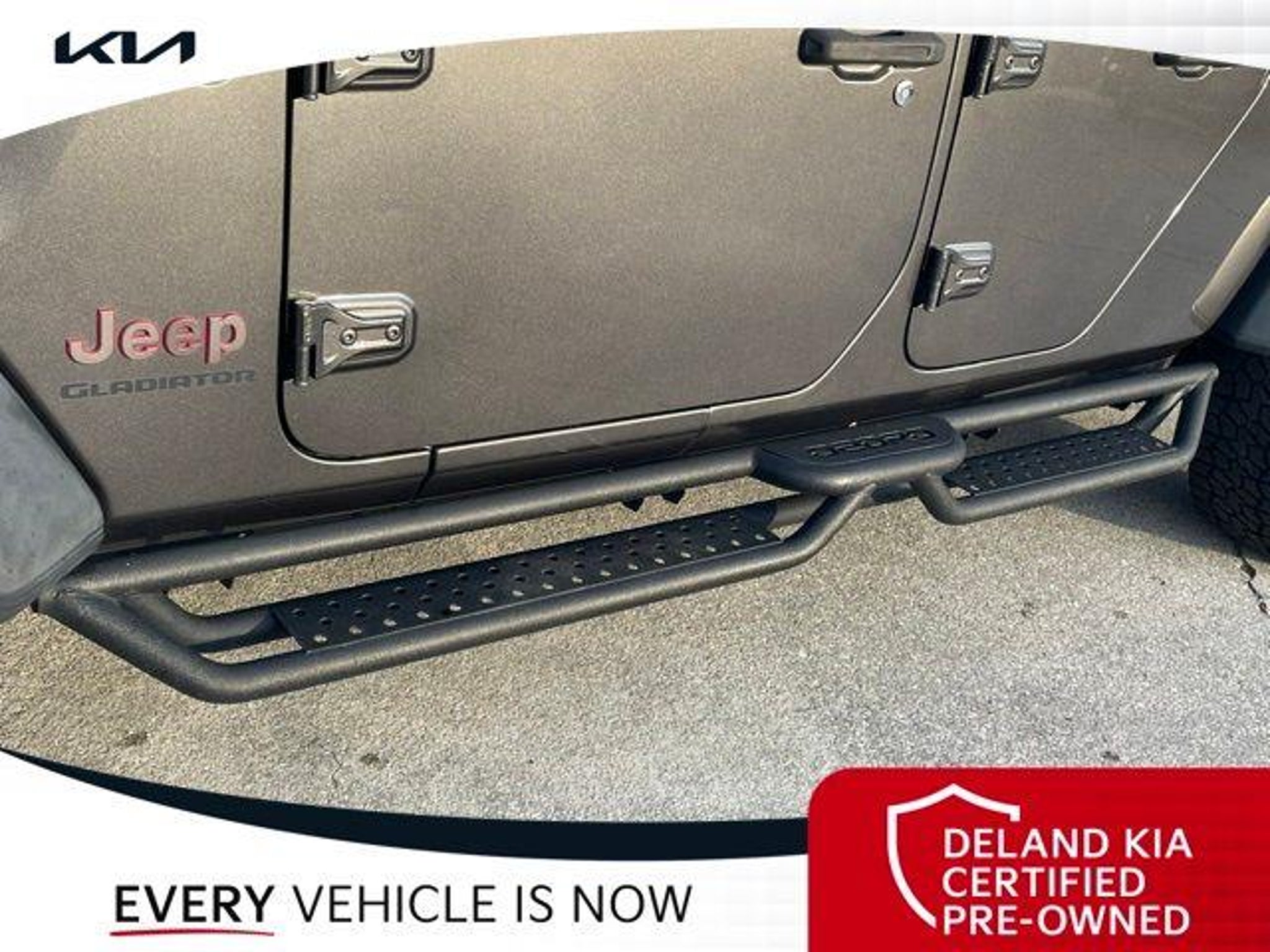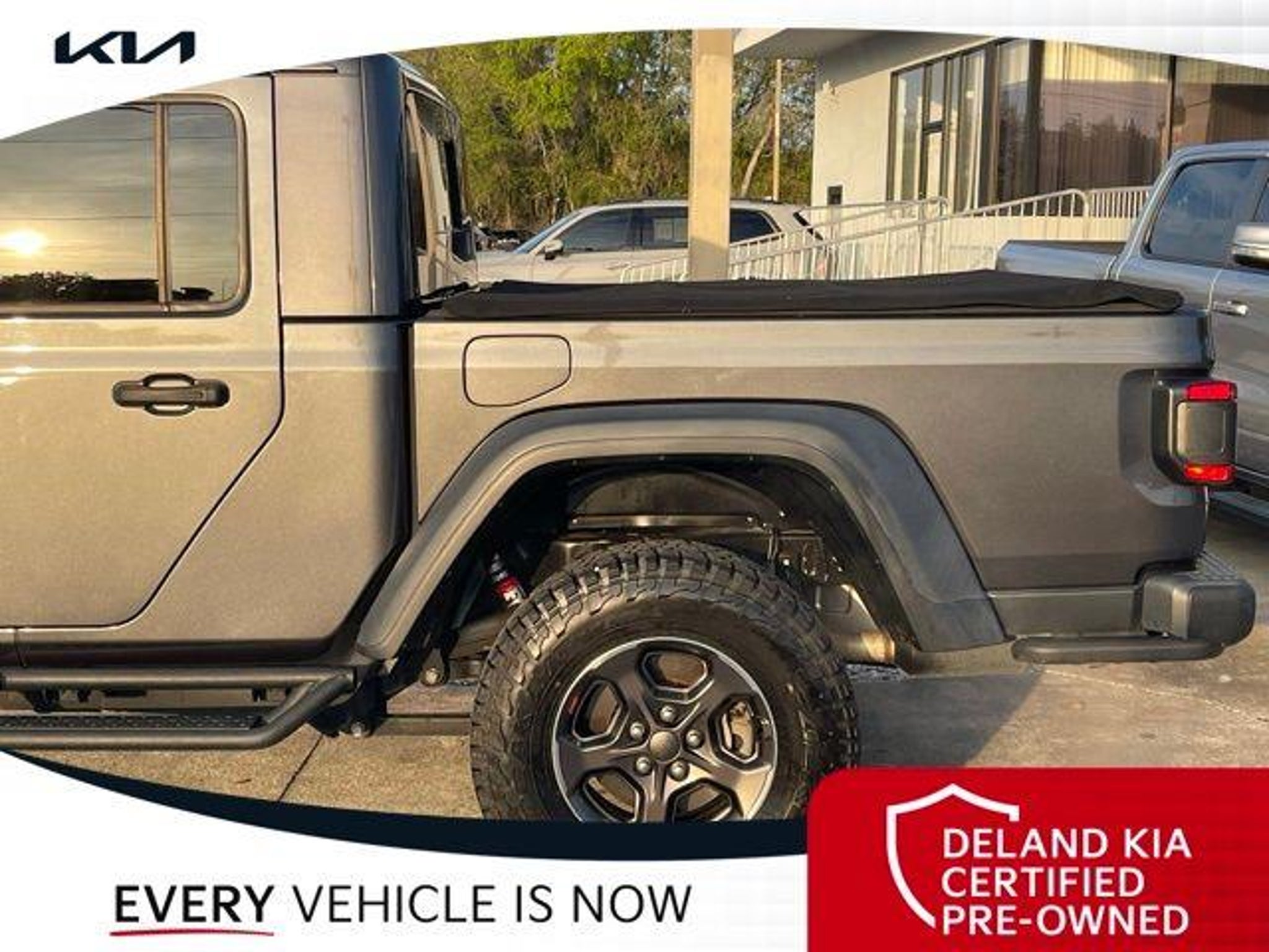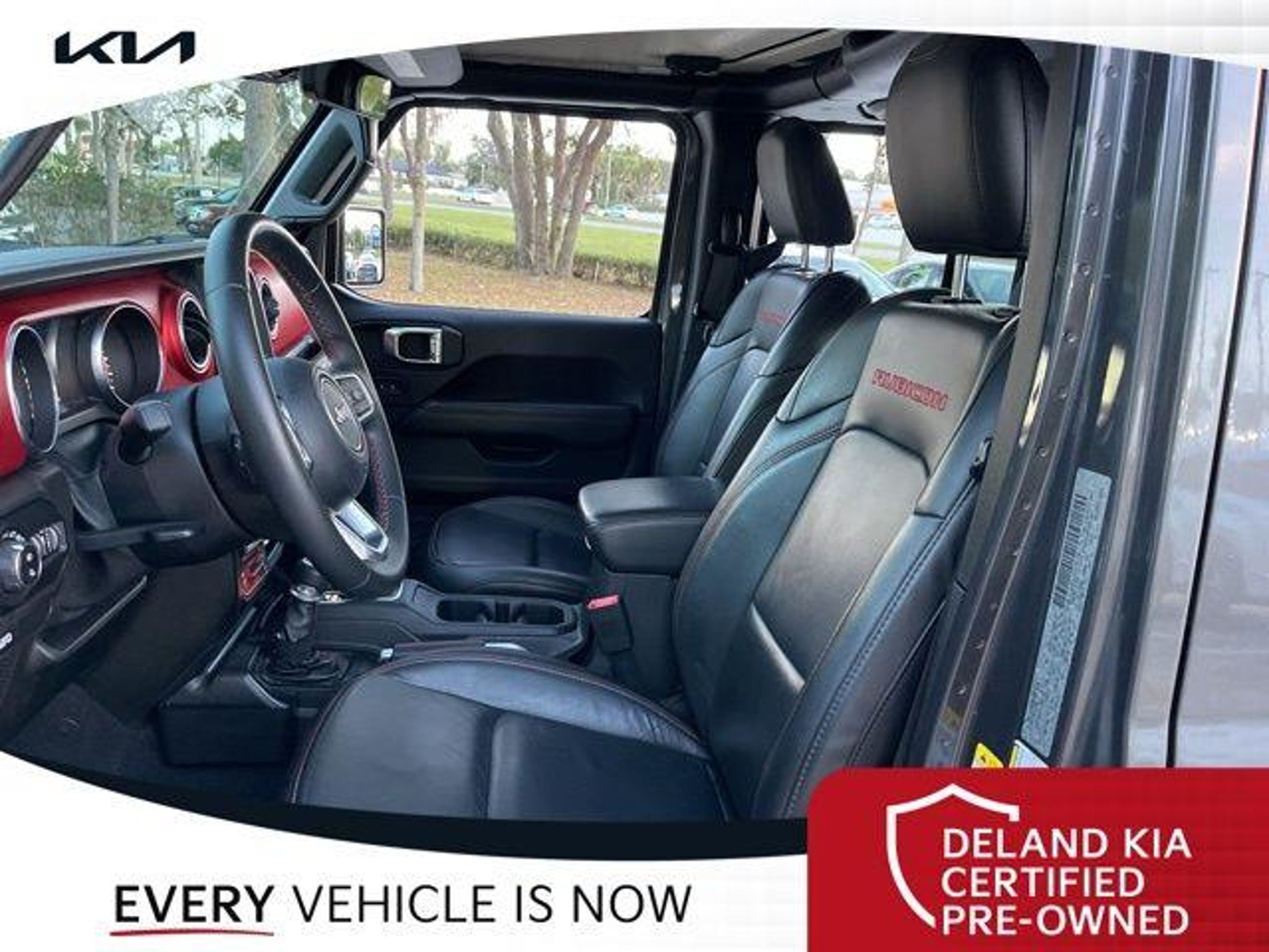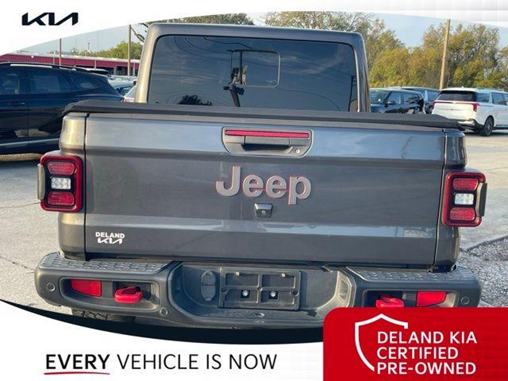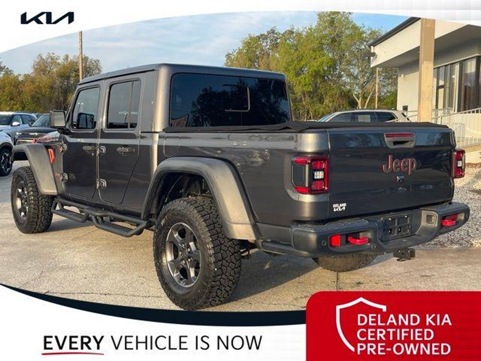 Recent Arrival! Granite Crystal Metallic Clearcoat 2020 Jeep Gladiator Rubicon 0 MONEY DOWN AVAILABLE***, KIA CERTIFIED***10 YR/100K WARRANTY***BUY WITH CONFIDENCE, LIFETIME OIL CHANGES, CARFAX ACCIDENT FREE, NAVIGATION, Backup Camera, Running Boards. Odometer is 11996 miles below market average! Deland Kia, We're Closer Than You Think!!!! Se habla Espanol!! Awards: * NACTOY 2020 North American Truck of the Year * 2020 KBB.com 10 Favorite New-for-2020 Cars Equipped with 8.4 Radio & Premium Audio Group (1-Year SiriusXM Guardian Trial, 5-Year SiriusXM Traffic Service, 5-Year SiriusXM Travel Link Service, Alpine Premium Audio System, Auto-Dimming Rear-View Mirror, Emergency/Assistance Call, For Details, Visit DriveUconnect.com, HD Radio, Radio: Uconnect 4C Nav w/8.4 Display, SiriusXM Traffic Plus, and SiriusXM Travel Link), Advanced Safety Group (Advanced Brake Assist and Full Speed Forward Collision Warning Plus), Cargo Group w/Trail Rail System (240 Amp Alternator, Exterior 115V AC Outlet, and Lockable Rear Underseat Storage), LED Lighting Group (Daytime Running Lamps LED Accents, Front LED Fog Lamps, LED Park Turn Lamps, LED Reflector Headlamps, and LED Taillamps), Quick Order Package 24R, Safety Group (Blind Spot & Cross Path Detection and ParkSense Rear Park Assist System), 4-Wheel Disc Brakes, 4.10 Rear Axle Ratio, 8 Speakers, 97 mph Maximum Speed Calibration, ABS brakes, Air Conditioning, Alloy wheels, AM/FM radio: SiriusXM, Apple CarPlay/Android Auto, Automatic temperature control, Bluetooth Wireless Speaker, Brake assist, Compass, Delay-off headlights, Driver door bin, Driver vanity mirror, Dual front impact airbags, Dual front side impact airbags, Electronic Stability Control, Front anti-roll bar, Front Bucket Seats, Front Center Armrest w/Storage, Front dual zone A/C, Front fog lights, Front reading lights, Fully automatic headlights, Garage door transmitter, Heated door mirrors, Illuminated entry, Integrated Off-Road Camera, Integrated roll-over protection, Leather steering wheel, Low tire pressure warning, Manufacturer's Statement of Origin, Occupant sensing airbag, Outside temperature display, Panic alarm, ParkView Rear Back-Up Camera, Passenger door bin, Passenger vanity mirror, Performance Suspension, Power door mirrors, Power steering, Power windows, Premium Black Sunrider Soft Top, Premium Cloth Low-Back Bucket Seats, Radio data system, Radio: Uconnect 4 w/7 Display, Rear anti-roll bar, Rear reading lights, Remote keyless entry, Roll-Up Tonneau Cover, Security system, Speed control, Split folding rear seat, Spray In Bedliner, Steel Front Bumper, Steering wheel mounted audio controls, Tachometer, Telescoping steering wheel, Tilt steering wheel, Traction control, Trip computer, Variably intermittent wipers, Voltmeter, and Wheels: 17 x 7.5 Granite Crystal AluminuM.