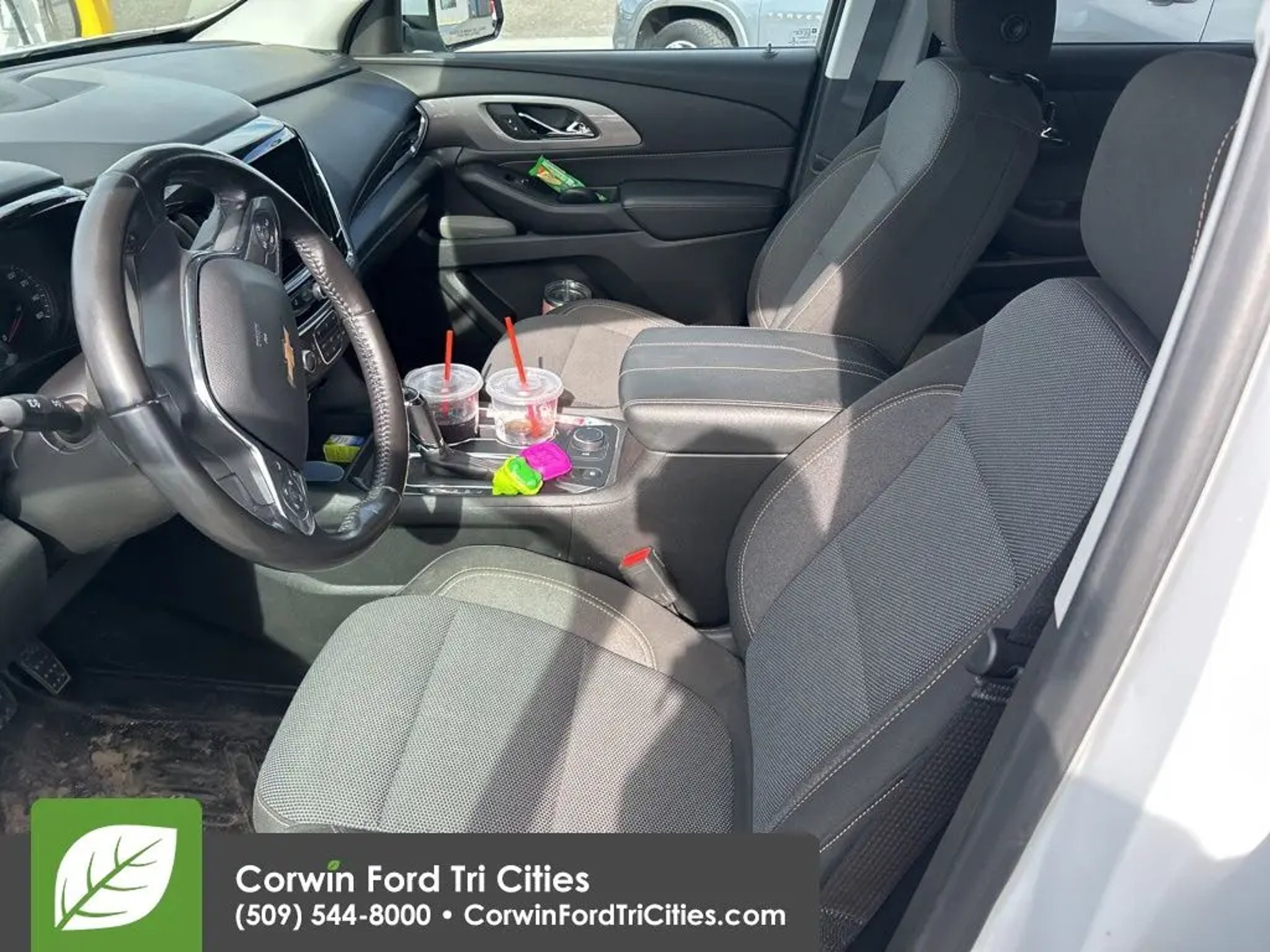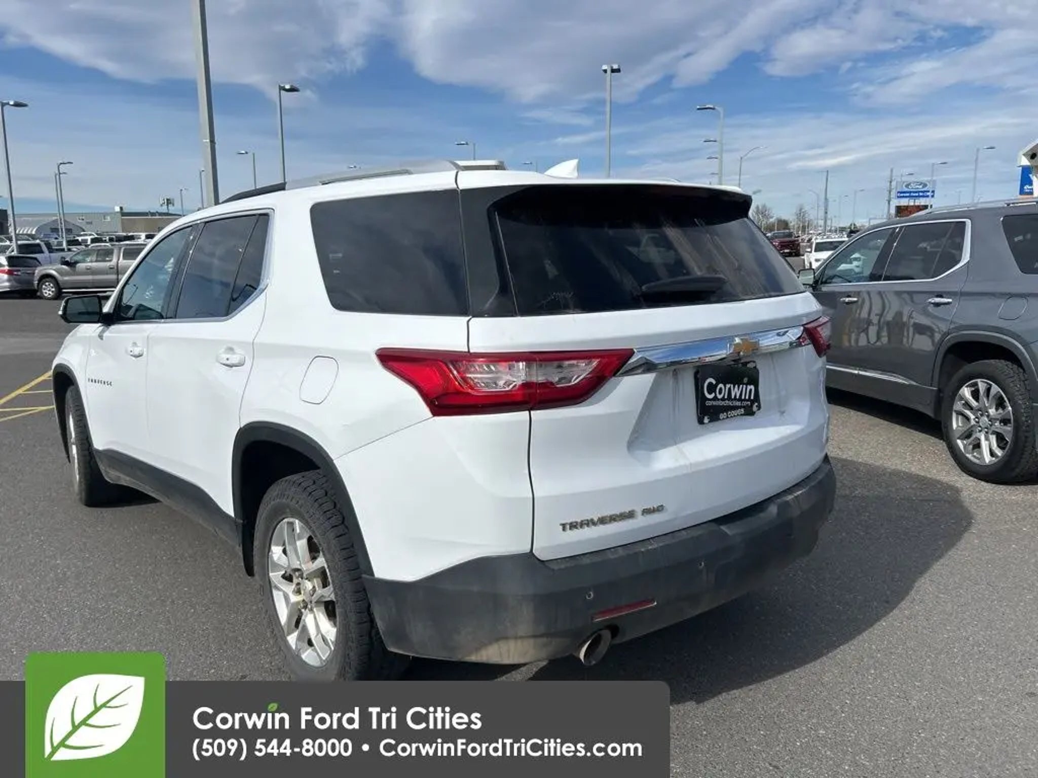 Confident and bold, our 2018 Chevrolet Traverse LT AWD offered in amazing Summit White is ready for duty! Powered by a 3.6 Liter V6 that delivers 310hp connected to a 9 Speed Automatic transmission for easy passing and towing. Whether taking the kids to school, commuting to work, or towing that toy on the weekends, our All Wheel Drive SUV is at your service, offering nearly 27mpg on the highway. As you approach our terrific Traverse, you will immediately notice the athletic design, LED lighting, HID headlamps, fog lamps, heated power mirrors, and fantastic alloy wheels. Once inside the LT cabin, you will be rewarded with comfortable heated front seats, a leather-wrapped steering wheel, cruise control, tri-zone automatic climate control, and the technology you need to master your busy day. It all starts with a color touchscreen, Android Auto®, Apple CarPlay®, Bluetooth®, and WiFi compatibility for on-the-go connectivity whenever you need it most! Safety for you and your passengers is imperative, so Chevrolet helps you avoid challenging driving situations with a backup camera, tire-pressure monitoring, stability/traction control, and many smart airbags. Our Traverse LT has style, space, and technology to spare! Save this Page and Call for Availability. We Know You Will Enjoy Your Corwin Ford Tri-City Test Drive Towards Ownership! See us today at Corwin Ford Tri-Cities. Family owned for over 100 years! Excellent selection of New and Used vehicles, Financing options. Serving Pasco, Kennewick, Richland, Walla Walla, Hermiston, Umatilla, Yakima, Spokane, Sunnyside, Grandview, Dayton, Prescott, Benton County, Franklin County, Yakima County, Spokane County, Adams County, Grant County, and the Greater Columbia Basin. *All Prices plus applicable sales tax and licensing. A negotiable documentary service fee up to $200 may be added to sales price or capitalized cost of the vehicle. One vehicle unless otherwise noted and subject to prior sale without notice. While supplies last. EPA mileage estimates are for newly manufactured vehicles only. Your actual mileage will vary depending on how you drive and maintain your vehicle. Awards: * JD Power Automotive Performance, Execution and Layout (APEAL) Study * 2018 KBB.com 10 Most Affordable 3-Row Vehicles * 2018 KBB.com Best Family Cars * 2018 KBB.com 10 Most Awarded Brands