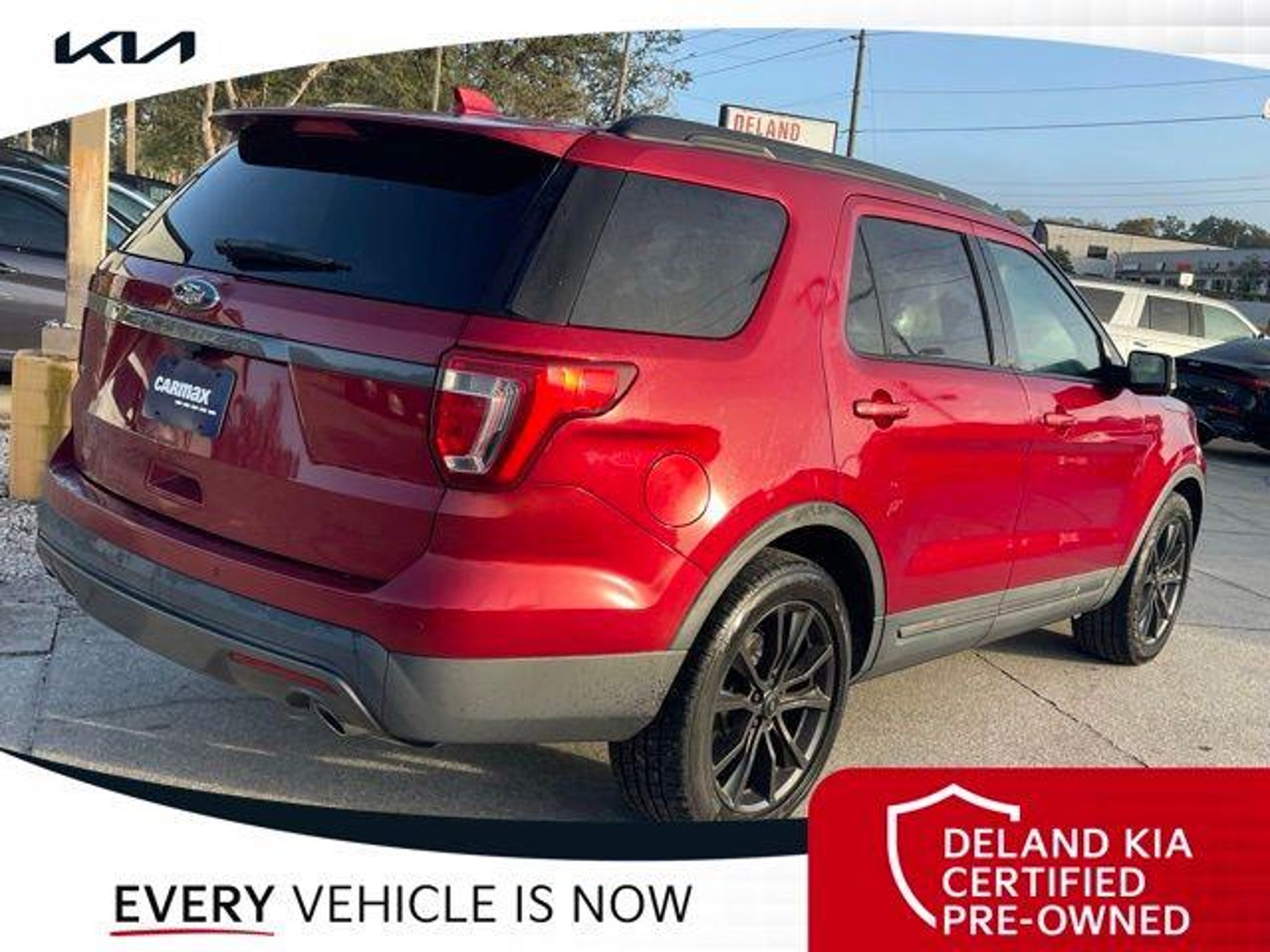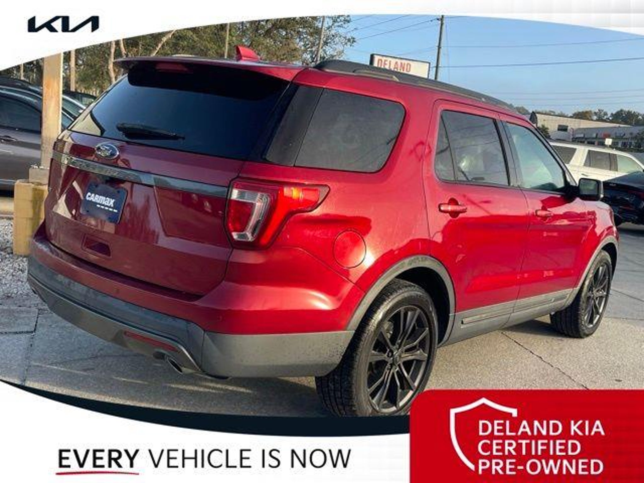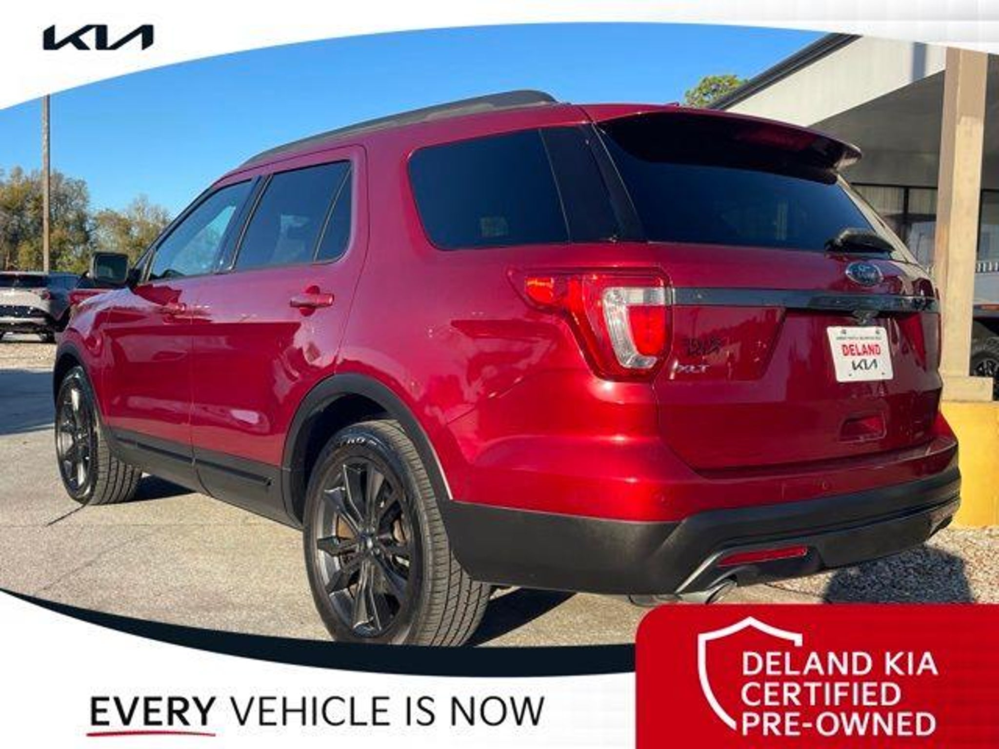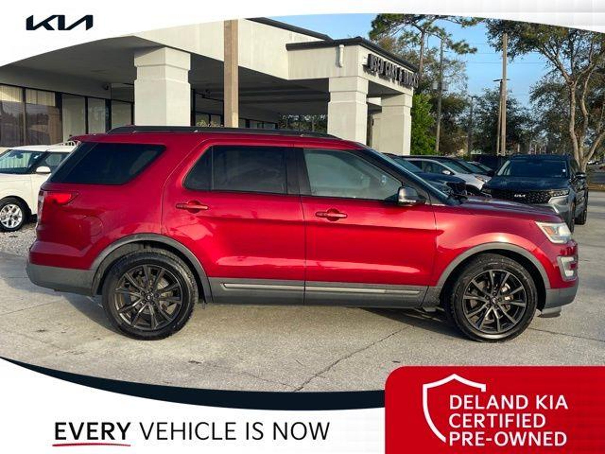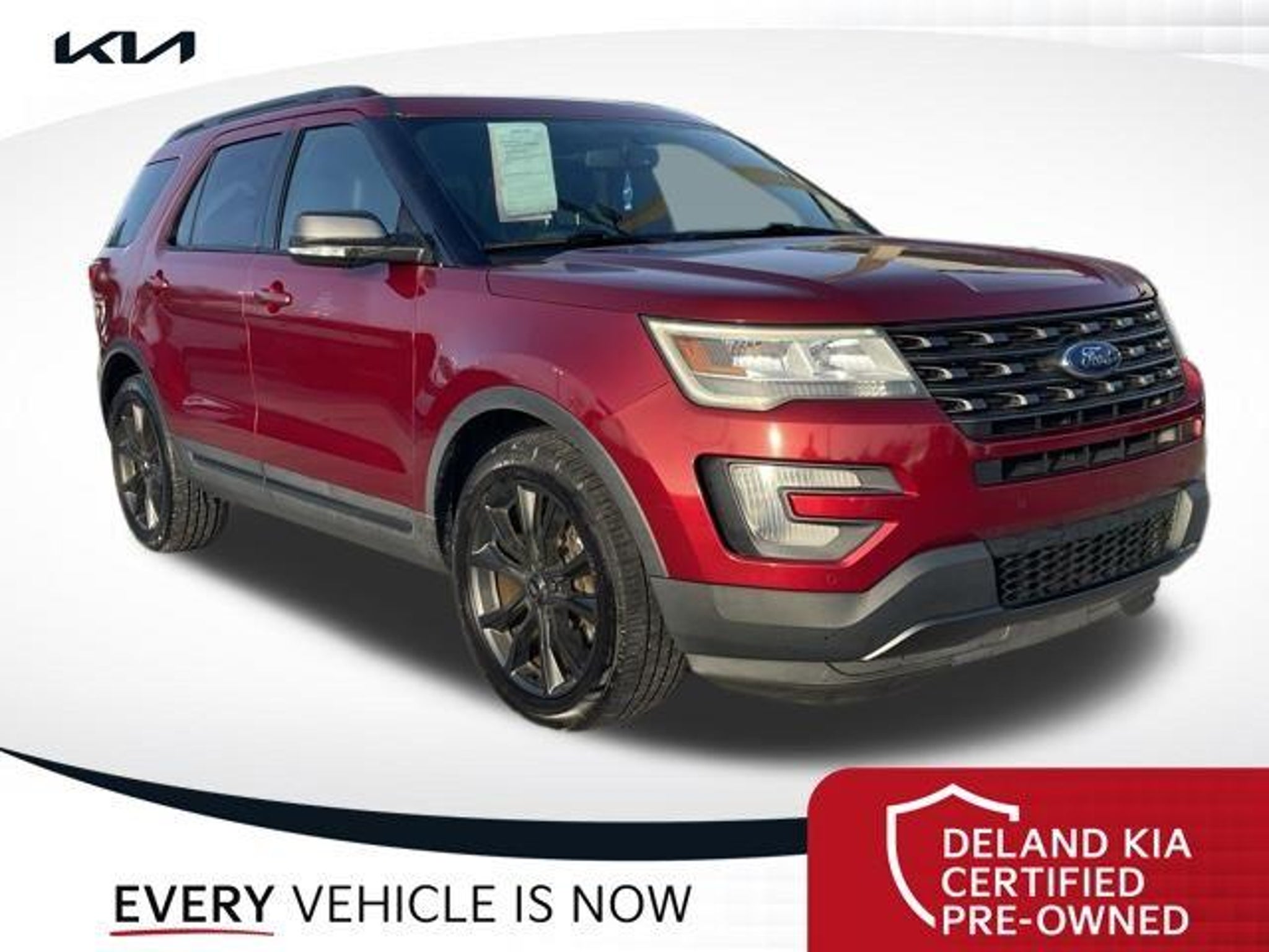Recent Arrival! Ruby Red Metallic 2017 Ford Explorer XLT 0 MONEY DOWN AVAILABLE***, KIA CERTIFIED***10 YR/100K WARRANTY***BUY WITH CONFIDENCE, LIFETIME OIL CHANGES, CARFAX ACCIDENT FREE, NAVIGATION, Backup Camera, Keyless Access w/Push Button Start. Odometer is 29459 miles below market average! Deland Kia, We're Closer Than You Think!!!! Se habla Espanol!! Awards: * 2017 KBB.com 10 Most Awarded Brands * 2017 KBB.com Brand Image Awards Equipped with Comfort Package (Leather Heated Bucket Seats), Driver Connect Package (2 Driver Configurable 4.2 Color LCD Displays and Auto-Dimming Rear-View Mirror), Equipment Group 202A (Dual-Zone Electronic Automatic Temperature Ctrl, Forward Sensing System, Hands-Free Foot-Activated Liftgate, Heated Steering Wheel, and Remote Start System), XLT Appearance Package (20 Wheels, Black Roof Rack Side Rails, Dark Earth Gray Unique Door-Trim Panel Insert, EXPLORER Badge on Hood, EXPLORER Unique Branded Front Floor Mats, Lower Bodyside Cladding Insert, Lower Door Trim, Lower Front & Rear Bumper Covers, Magnetic Met-Painted Grille Bars w/Mesh Insert, Perforated Leather-Trimmed Bucket Seats, Sideview Mirror Caps, and Wheels: 20 x 8.5 Magnetic Met Painted 10-Spoke), XLT Technology Feature Bundle (Auto-Dimming Driver's Sideview Mirror, BLIS Blind Spot Information System, and Voice-Activated Touchscreen Navigation System), 18 Painted Aluminum Wheels, 3.39 Non-Limited-Slip Axle Ratio, 3rd row seats: split-bench, 4-Wheel Disc Brakes, 6 Speakers, ABS brakes, Air Conditioning, Alloy wheels, AM/FM radio: SiriusXM, Brake assist, Bumpers: body-color, CD player, Compass, Delay-off headlights, Driver door bin, Driver vanity mirror, Dual front impact airbags, Dual front side impact airbags, Electronic Stability Control, Emergency communication system: 911 Assist, Exterior Parking Camera Rear, Four wheel independent suspension, Front anti-roll bar, Front Bucket Seats, Front Center Armrest, Front fog lights, Front reading lights, Fully automatic headlights, Heated door mirrors, Illuminated entry, Knee airbag, Leather steering wheel, Low tire pressure warning, Occupant sensing airbag, Outside temperature display, Overhead airbag, Overhead console, Panic alarm, Passenger door bin, Passenger vanity mirror, Power door mirrors, Power driver seat, Power passenger seat, Power steering, Power windows, Radio: AM/FM Stereo w/Single-CD/MP3 Capable, Rear air conditioning, Rear anti-roll bar, Rear Parking Sensors, Rear reading lights, Rear seat center armrest, Rear window defroster, Rear window wiper, Remote keyless entry, Roof rack: rails only, Security system, Speed control, Speed-sensing steering, Speed-Sensitive Wipers, Split folding rear seat, Spoiler, Steering wheel mounted audio controls, SYNC Communication & Entertainment System, Tachometer, Telescoping steering wheel, Tilt steering wheel, Traction control, Trip computer, Turn signal indicator mirrors, Twin Panel Moonroof, and Variably intermittent wipers.