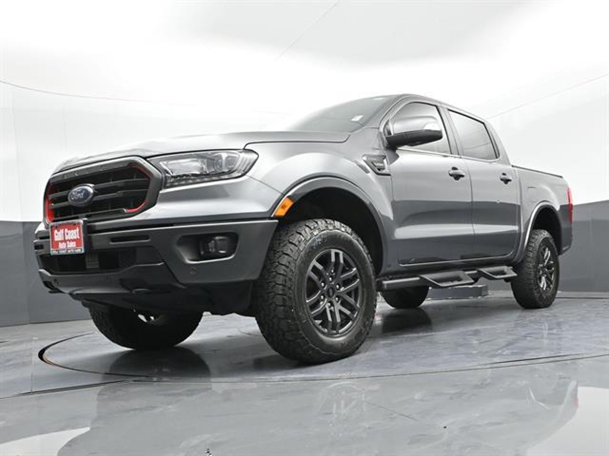 Check out this sleek Gray 2022 Ford Ranger Lariat 4x4 SuperCrew with a 5.1 ft. short bed, perfect for work or play. Powered by an efficient EcoBoost 2.3L Turbo I4 engine paired with a 10-speed shiftable automatic transmission, this Ranger delivers robust performance and towing capability. The Lariat trim offers a premium experience with leather-trimmed upholstery, heated front seats, power-adjustable driver and passenger seats, and dual-zone automatic climate control. Tech features include an 8-inch SYNC infotainment touchscreen with Apple CarPlay and Android Auto, FordPass Connect with Wi-Fi hotspot, push-button start, and a rearview camera. Advanced safety options like lane keeping assist, blind spot monitoring with trailer coverage, front automatic emergency braking with pedestrian detection, and rear cross-traffic alert provide confidence on every drive. Add in stylish LED headlights, fog lights, and a power-locking tailgate for convenience and curb appeal. Ready to tackle your next adventure, this Ford Ranger blends rugged capability with modern comfort.