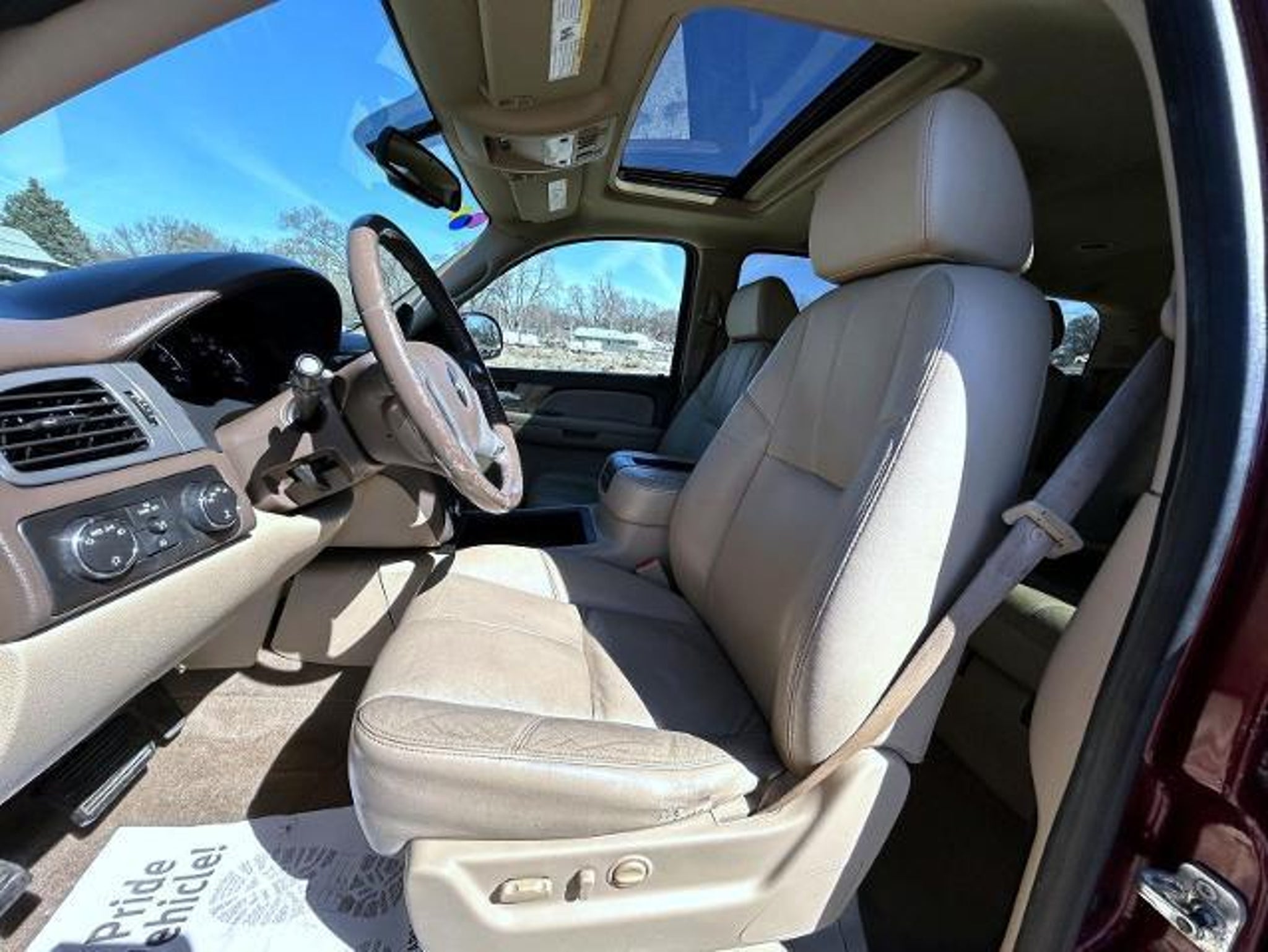 Deep Ruby Metallic 2009 Chevrolet Tahoe LT Z71 4WD 6-Speed Automatic Electronic with Overdrive 5.3L V8 4WD, Light Cashmere/Dark Cashmere Leather, 17 x 7.5 5-Spoke Aluminum Wheels, 3.42 Rear Axle Ratio, 3rd row seats: split-bench, 4-Wheel Disc Brakes, 6 Speakers, 6-Way Power Driver Seat Adjuster, ABS brakes, Air Conditioning, Alloy wheels, AM/FM radio: XM, AM/FM Stereo w/6-Disc In-Dash CD Changer, AM/FM Stereo w/MP3 Compatible CD/DVD Player, Auto-Dimming Inside Rear-View Mirror, Automatic Tri-Zone Air Conditioning, Bodyside moldings, Bumpers: body-color, CD player, Color-Keyed Door Handles, Compass, Delay-off headlights, Driver door bin, Driver Manual Lumbar Control, Driver vanity mirror, Dual front impact airbags, Electronic Stability Control, Emergency communication system: OnStar Directions & Connections, Floor Console, Front anti-roll bar, Front Bucket Seats, Front Center Armrest, Front dual zone A/C, Front fog lights, Front Halogen Fog Lamps, Front License Plate Bracket, Front reading lights, Front Reclining Bucket Seats, Front wheel independent suspension, Fully automatic headlights, Heated door mirrors, Heavy-Duty Rear Locking Differential, Illuminated entry, Low tire pressure warning, Occupant sensing airbag, OnStar 1-Year Directions & Connections Plan, Outside temperature display, Overhead airbag, Overhead console, Panic alarm, Passenger door bin, Passenger vanity mirror, Power door mirrors, Power driver seat, Power Folding & Adjustable Heated Outside Mirrors, Power Front Passenger Seat Adjuster, Power Heated Manual-Folding Outside Mirrors, Power passenger seat, Power steering, Power Tilt-Sliding Sunroof, Power windows, Premium Smooth Ride Suspension Package, Radio data system, Rear air conditioning, Rear anti-roll bar, Rear audio controls, Rear Audio System Controls, Rear reading lights, Rear seat center armrest, Rear Seat Entertainment System, Rear window defroster, Rear window wiper, Remote keyless entry, Remote Vehicle Starter System, Roof rack, Roof-Mounted Black Luggage Rack Center Rails, Security system, Speed control, Split folding rear seat, Spoiler, Steering wheel mounted audio controls, Tachometer, Tilt steering wheel, Traction control, Trip computer, Ultrasonic Rear Parking Assist, Universal Home Remote, Variably intermittent wipers, Voltmeter, XM Radio, 4WD, Light Cashmere/Dark Cashmere Leather. Step into affordability and reliability when you shop for your next pre-owned vehicle at Woodhouse Ford of Omaha. Whether you?re in need of a rugged truck or fuel-efficient SUV, our diverse