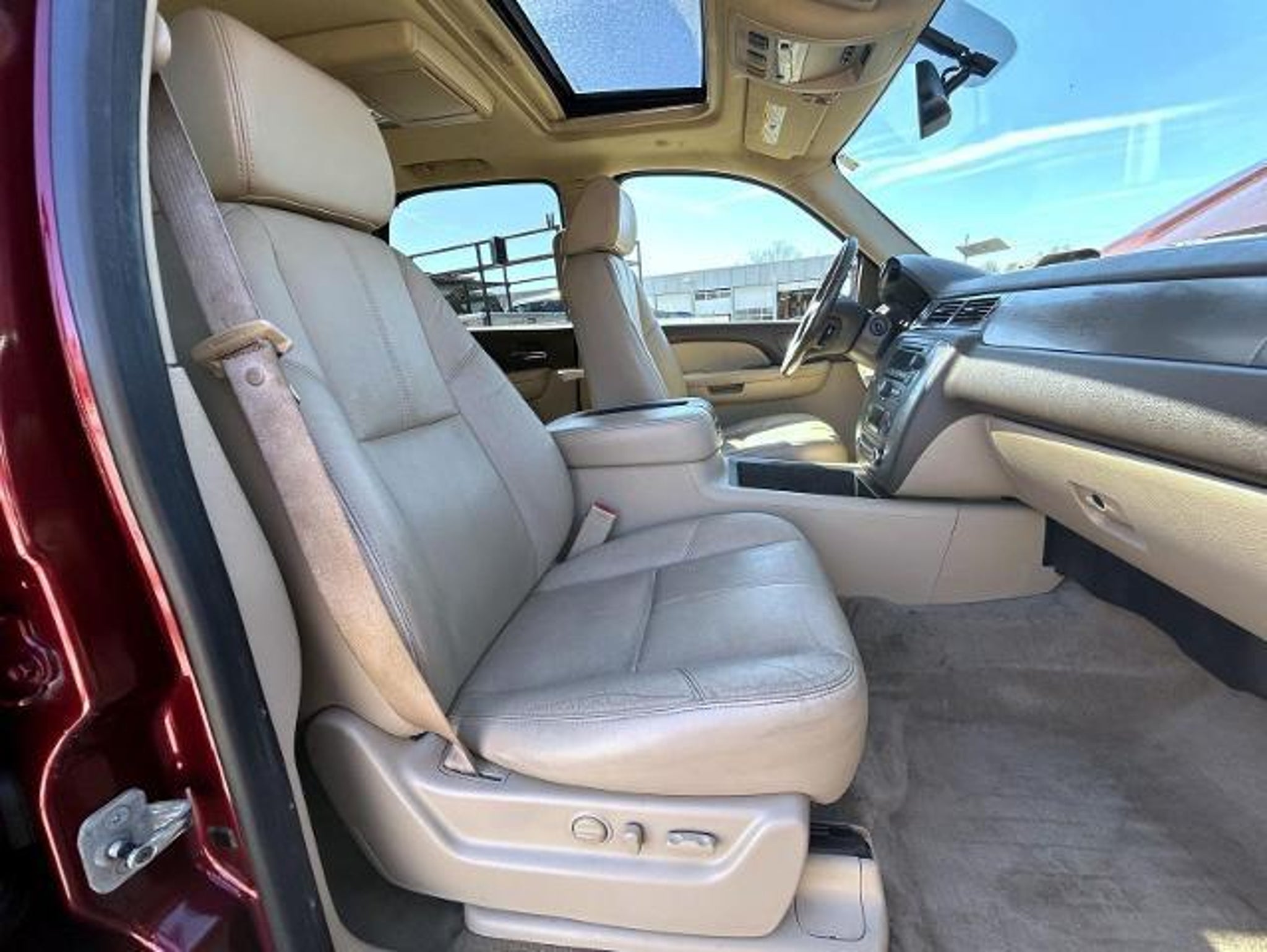 Deep Ruby Metallic 2009 Chevrolet Tahoe LT Z71 4WD 6-Speed Automatic Electronic with Overdrive 5.3L V8 4WD, Light Cashmere/Dark Cashmere Leather, 17 x 7.5 5-Spoke Aluminum Wheels, 3.42 Rear Axle Ratio, 3rd row seats: split-bench, 4-Wheel Disc Brakes, 6 Speakers, 6-Way Power Driver Seat Adjuster, ABS brakes, Air Conditioning, Alloy wheels, AM/FM radio: XM, AM/FM Stereo w/6-Disc In-Dash CD Changer, AM/FM Stereo w/MP3 Compatible CD/DVD Player, Auto-Dimming Inside Rear-View Mirror, Automatic Tri-Zone Air Conditioning, Bodyside moldings, Bumpers: body-color, CD player, Color-Keyed Door Handles, Compass, Delay-off headlights, Driver door bin, Driver Manual Lumbar Control, Driver vanity mirror, Dual front impact airbags, Electronic Stability Control, Emergency communication system: OnStar Directions & Connections, Floor Console, Front anti-roll bar, Front Bucket Seats, Front Center Armrest, Front dual zone A/C, Front fog lights, Front Halogen Fog Lamps, Front License Plate Bracket, Front reading lights, Front Reclining Bucket Seats, Front wheel independent suspension, Fully automatic headlights, Heated door mirrors, Heavy-Duty Rear Locking Differential, Illuminated entry, Low tire pressure warning, Occupant sensing airbag, OnStar 1-Year Directions & Connections Plan, Outside temperature display, Overhead airbag, Overhead console, Panic alarm, Passenger door bin, Passenger vanity mirror, Power door mirrors, Power driver seat, Power Folding & Adjustable Heated Outside Mirrors, Power Front Passenger Seat Adjuster, Power Heated Manual-Folding Outside Mirrors, Power passenger seat, Power steering, Power Tilt-Sliding Sunroof, Power windows, Premium Smooth Ride Suspension Package, Radio data system, Rear air conditioning, Rear anti-roll bar, Rear audio controls, Rear Audio System Controls, Rear reading lights, Rear seat center armrest, Rear Seat Entertainment System, Rear window defroster, Rear window wiper, Remote keyless entry, Remote Vehicle Starter System, Roof rack, Roof-Mounted Black Luggage Rack Center Rails, Security system, Speed control, Split folding rear seat, Spoiler, Steering wheel mounted audio controls, Tachometer, Tilt steering wheel, Traction control, Trip computer, Ultrasonic Rear Parking Assist, Universal Home Remote, Variably intermittent wipers, Voltmeter, XM Radio, 4WD, Light Cashmere/Dark Cashmere Leather. Step into affordability and reliability when you shop for your next pre-owned vehicle at Woodhouse Ford of Omaha. Whether youâre in need of a rugged truck or fuel-efficient SUV, our diverse