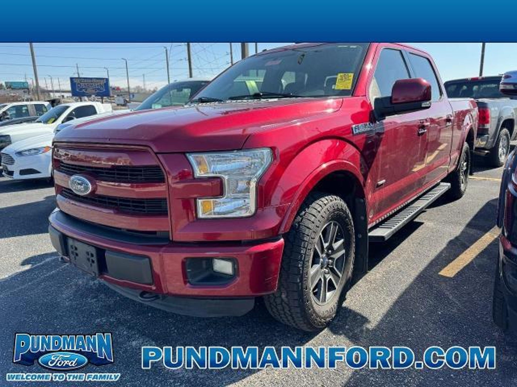 Call Now, 636-946-6611 Ruby Red Metallic 2015 Ford F-150 Lariat 4WD 6-Speed Automatic Electronic 3.5L V6 4WD. Only at Pundmann Ford in St Charles!! 636-946-6611. Recent Arrival! Awards: * Green Car Journal 2015 Green Car Technology Award * NACTOY 2015 North American Truck of the Year * 2015 KBB.com Brand Image Awards Based on 2017 EPA mileage ratings. Use for comparison purposes only. Your mileage will vary depending on how you drive and maintain your vehicle, driving conditions and other factors.