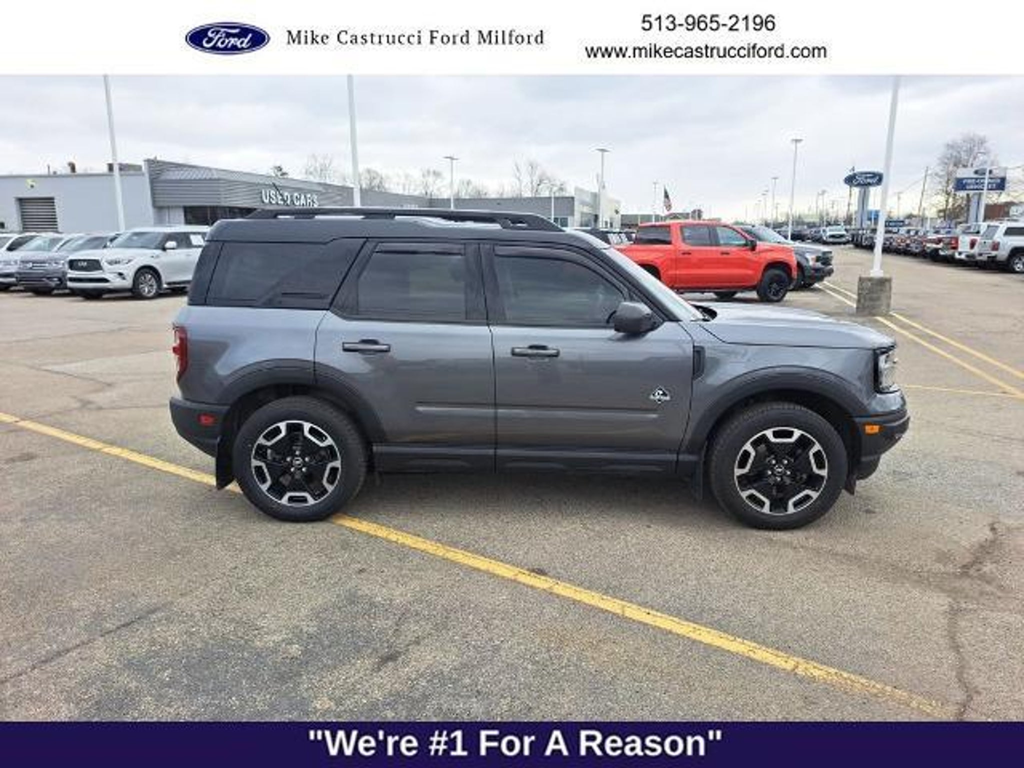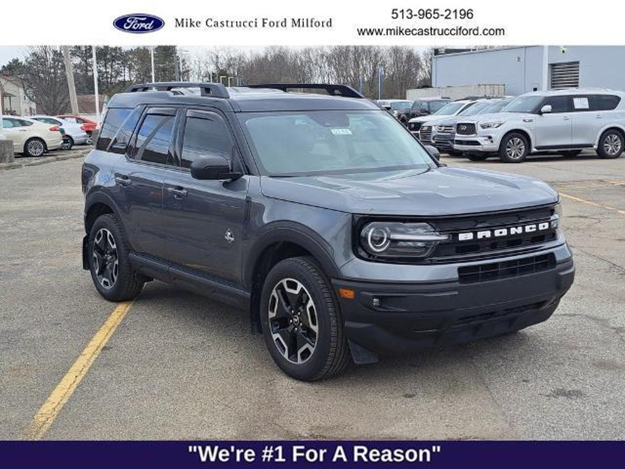 Mike Castrucci Ford is Cincinnatis and Surrounding Tri-State Number #1 Ford store. Come see why we have earned this honor with are pricing and customer service. We are pumped up to offer this outstanding 2022 Ford Bronco Sport in Carbonized Gray Metallic and comes with the following features; Carbonized Gray Metallic 2022 Ford Bronco Sport Outer Banks 4WD 8-Speed Automatic 1.5L EcoBoost Recent Arrival! Odometer is 12193 miles below market average! 25/28 City/Highway MPG Mike Castrucci Ford established community-oriented roots in 1958, welcoming the flourishing populations of Milford, Cincinnati, and everywhere in between. Owner Mike Castrucci has played a major role in lending a hand to local organizations, serving, and strengthening the Milford community through involvement and sponsorship. Without the support of our local society, we wouldn't be able to prosper and strive to meet our goal of being the best Ford dealer in Milford, OH, and across the entire region. As you enter our showroom, you will be greeted by similar loyal faces, and it will feel like you are joining the family. More than 60 years of trust and commitment are apparent at your premier Milford, OH, Ford dealer and we always listen intently to your driving needs so that your buying or leasing experience is seamless from start to finish. Please stop by and see us at 1020 OH-28, Milford OH 45150. You can also visit us online at www.mikecastrucciford.com and call us! 855-441-9650!