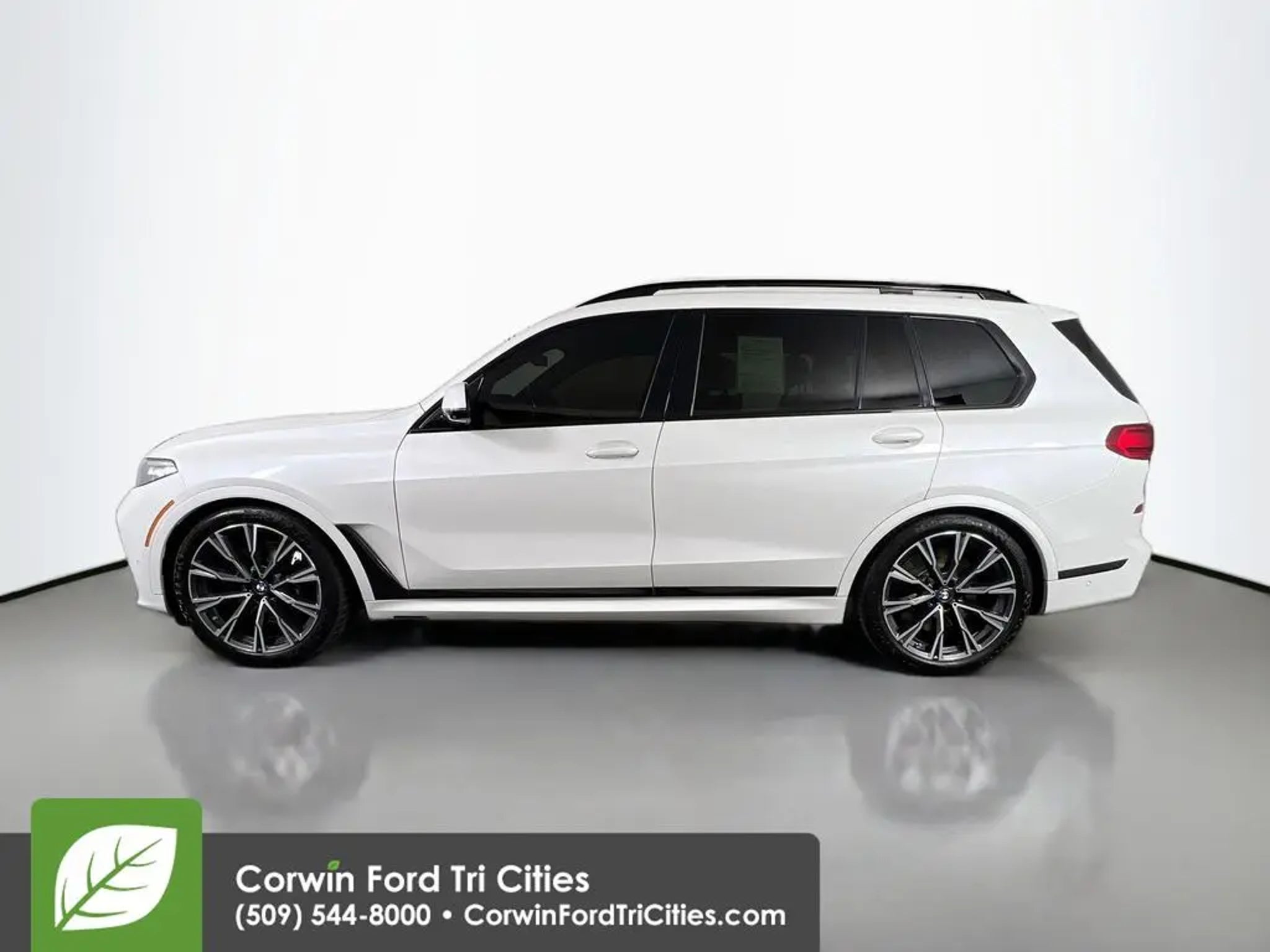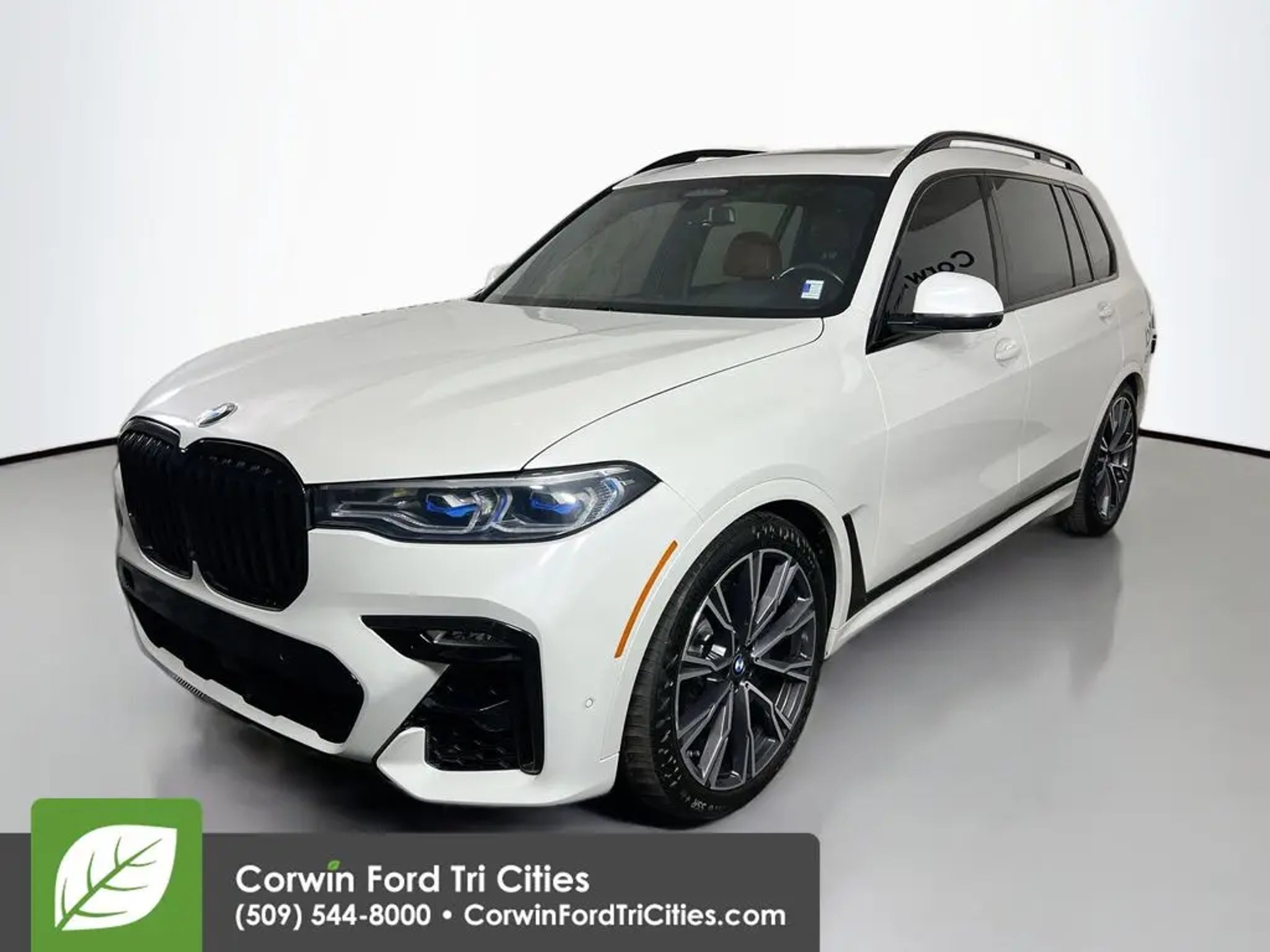 Our 2020 BMW X7 M50i xDrive with the Executive Package delivers dynamic advantages for families who prefer performance driving in Mineral White Metallic! Powered by a Twin-TurboCharged 4.4 Liter V8 providing 523hp to paddle-shifted 8 Speed Steptronic Automatic transmission. This All Wheel Drive SUV also boasts an M-tuned suspension, M Sport brakes, and an M Sport rear differential for additional athletic capability, and it sees nearly 21mpg on the highway. Bold style comes into play with our X7's adaptive LED lighting, panoramic sunroof, hands-free liftgate, aero bodywork, roof rails, and 22-inch wheels. The sophisticated look draws attention with a masterful style. Well-equipped for modern adventure, our M50i cabin pampers your family with heated leather power front seats, heated/cooled cupholders, versatile second/third rows, Sky Lounge LED roof, a power M steering wheel, four-zone automatic climate control, keyless access, and Live Cockpit Professional technology. It keeps you connected on the go with two 12.3-inch displays, full-color navigation, WiFi compatibility, Apple CarPlay®, Bluetooth®, and Harman Kardon audio. There's ample cargo space for premium functionality, too! BMW's Active Driving Assistant is standard to protect you during difficult situations with blind-spot monitoring, automatic braking, forward collision warning, a rearview camera, lane-departure warning, and more. Exclusive and exhilarating, our X7 M50i is engineered to excel! Save this Page and Call for Availability. We Know You Will Enjoy Your Corwin Ford Tri-City Test Drive Towards Ownership! See us today at Corwin Ford Tri-Cities. Family owned for over 100 years! Excellent selection of New and Used vehicles, Financing options. Serving Pasco, Kennewick, Richland, Walla Walla, Hermiston, Umatilla, Yakima, Spokane, Sunnyside, Grandview, Dayton, Prescott, Benton County, Franklin County, Yakima County, Spokane County, Adams County, Grant County, and the Greater Columbia Basin. *All Prices plus applicable sales tax and licensing. A negotiable documentary service fee up to $200 may be added to sales price or capitalized cost of the vehicle. One vehicle unless otherwise noted and subject to prior sale without notice. While supplies last. EPA mileage estimates are for newly manufactured vehicles only. Your actual mileage will vary depending on how you drive and maintain your vehicle.