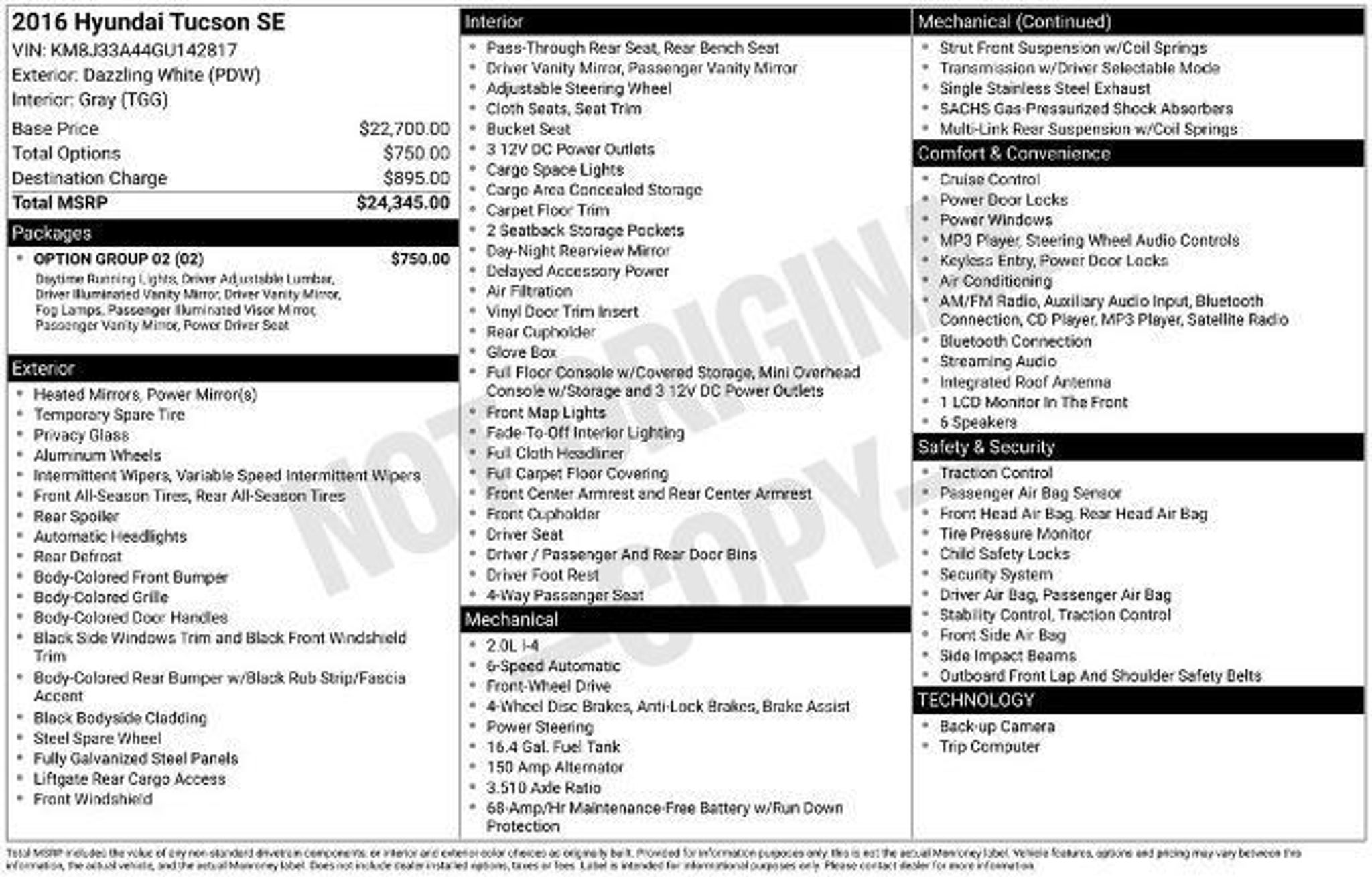 2016 Hyundai Tucson SE Sale Price Includes $1,000 Finance Savings. Contact Dealer For Details. 23/31 City/Highway MPG Priced below KBB Fair Purchase Price! Awards: * 2016 IIHS Top Safety Pick, Top Safety Pick * 2016 KBB.com 10 Best SUVs Under $25,000 * 2016 KBB.com Best Buy Awards Finalist * 2016 KBB.com 10 Best All-Wheel Drive Vehicles Under $25,000 * 2016 KBB.com 5-Year Cost to Own Awards Reviews: * Turbocharged engine delivers peppy acceleration and good fuel economy; plenty of advanced safety and infotainment features are available; comfortable ride on rough roads. Source: Edmunds