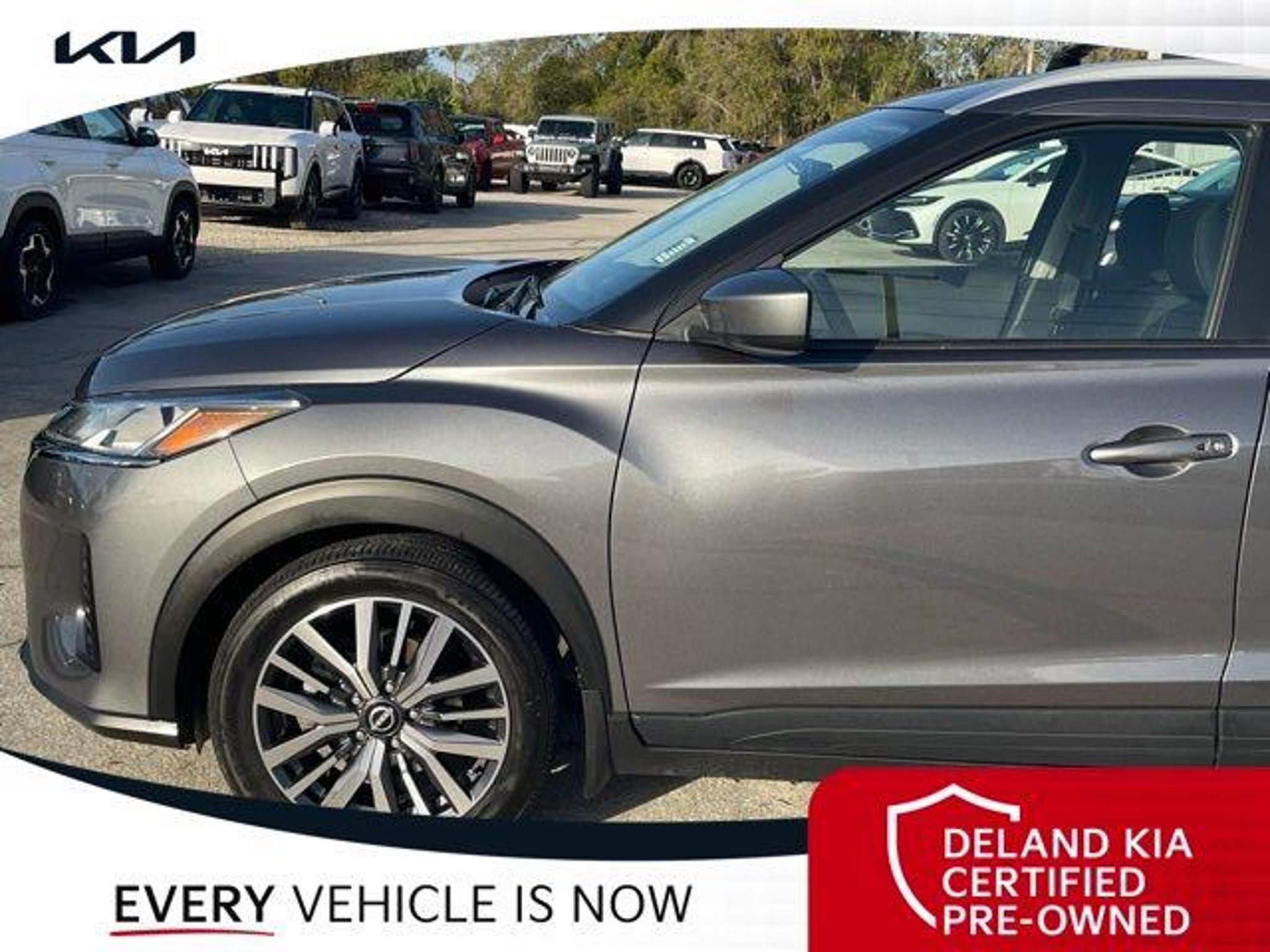 Discover the 2024 Nissan Kicks SV, a remarkable compact crossover that combines style, technology, and efficiency in one sleek package. With its striking exterior design and well-appointed interior, this Kicks is the perfect companion for your urban adventures. Featuring a host of impressive features, the 2024 Kicks SV offers unparalleled value. Enjoy the convenience of "” - 0 MONEY DOWN AVAILABLE*** - LIFETIME OIL CHANGES - CARFAX ACCIDENT FREE - LEATHER - AndroidTM Auto/Apple Carplay - Backup Camera - Bluetooth - Keyless Access w/Push Button Start - Smartphone App Integration - Touchscreen Controls Additionally, the Kicks SV comes equipped with the INTERIOR ELECTRONICS PACKAGE, which includes Interior Ambient Lighting, Frameless Auto-Dimming Mirror, Universal Remote, and Door Pocket Light. The EXTERIOR PACKAGE adds Crossbars, Exhaust Finisher, and External Ground Lighting with the Nissan logo. Under the hood, the Kicks SV boasts a 1.6L 4-Cylinder DOHC 16V engine paired with a CVT with Xtronic transmission, delivering an impressive 31 city/36 highway MPG. The vehicle's front-wheel-drive configuration ensures a smooth and efficient ride, no matter the terrain. Safety is a top priority, and the Kicks SV is equipped with a suite of advanced features, including Remote Keyless Entry, Traction Control, ABS Brakes, Low Tire Pressure Warning, Electronic Stability Control, Heated Door Mirrors, and Illuminated Entry, among others. Step inside the Kicks SV and experience the perfect blend of style and technology. The spacious cabin offers ample room for passengers and cargo, with a split-folding rear seat and a host of connectivity options, including Apple CarPlay and Android Auto. Don't miss your chance to own this exceptional 2024 Nissan Kicks SV. Visit our showroom today and let our knowledgeable sales team guide you through all the features and benefits this vehicle has to offer. We're confident you'll be impressed by the Kicks SV's unbeatable combination of performance, efficiency, and value. Deland Kia, We're Closer Than You Think!!!! Se habla Espanol!