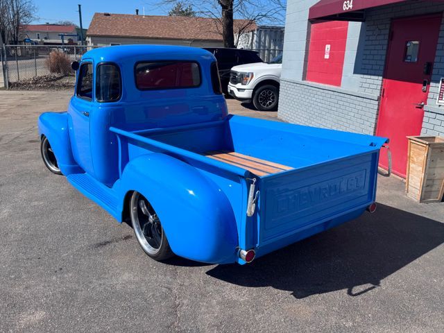 TODAY WE PRESENT THIS BEAUTIFUL 1954 CHEVROLET 3100 5 WINDOW RESTOMOD PICKUP. SHE NOW POWERED BY A 5.3 LITRE FUEL INJECTED LS ENGINE MATED TO AN 200R4 AUTOMATIC TRANSMISSION. THE SUSPENSION HAS BEEN UPDATED WITH FRONT DISC BRAKES, TUBULAR A-ARMS AND POWER RACK-N-PINION STEERING AND 18/20� RIDDLER ALLOY WHEELS WITH NEW TIRES. THE EXTERIOR IS STRAIGHT AND REFINISH IN THIS BRIGHT BLUE FINISH. THE BED HAS A NEW WOODEN FLOOR AND THE FUEL TANK HAS BEEN RELOCATED TO THE BACK UNDER THE BED. THE INTERIOR WAS REFINISHED IN A BLACK AND BLUE DIAMOND STITCH PATTERN WITH BLUE PIPING. ITS ALSO EQUIPPED WITH A DOLPHIN CUSTOM GAUGES AND A IDIDIT BILLET TILT STEERING COLUMN. PLEASE FEEL FREE TO CALL ASK QUESTIONS OR MAKE AN OFFER ANYTIME @ 314-941-5226