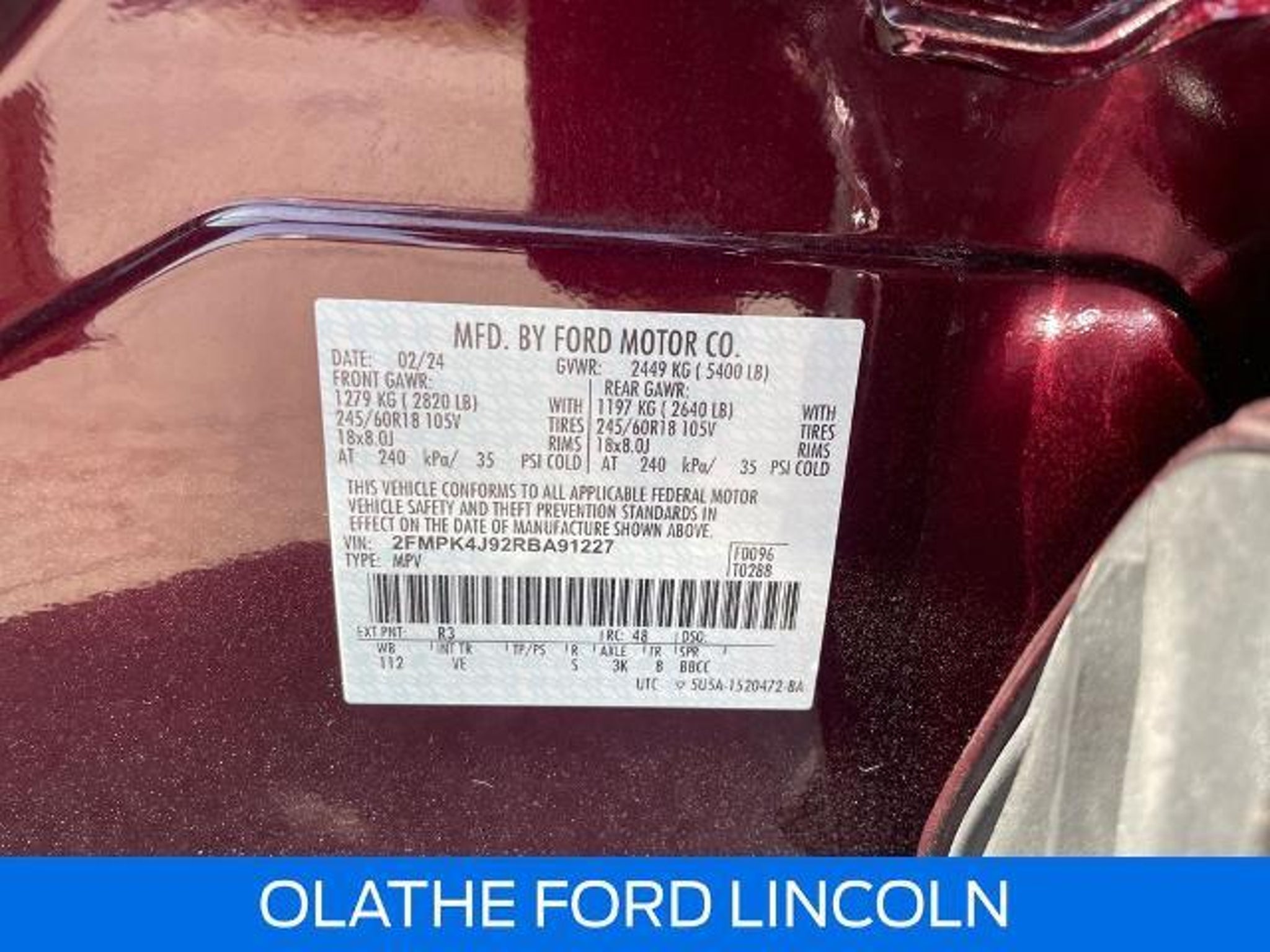 2024 Ford Edge SEL Burgundy Velvet Metallic Tinted Clearcoat AWD **APPLE CARPLAY/ANDROID AUTO**, **FORDPASS CONNECT**, **VISTA MOONROOF**, The 2024 Ford Edge SEL AWD delivers the perfect balance of performance, comfort, and modern technology in a sleek midsize SUV. Powered by a responsive turbocharged EcoBoost engine and equipped with confident all-wheel drive, the Edge SEL provides smooth acceleration and sure-footed handling in all conditions. Inside, youll find a spacious, refined cabin with premium materials, a large touchscreen with SYNC 4A infotainment, wireless Apple CarPlay and Android Auto, and advanced driver-assist features through Ford CoPilot360. With bold styling, impressive cargo space, and the capability you expect from Ford Motor Company, this 2024 Edge SEL AWD is ready to elevate your daily drive and weekend adventuresThe 2024 Ford Edge SEL AWD delivers the perfect balance of performance, comfort, and modern technology in a sleek midsize SUV. Powered by a responsive turbocharged EcoBoost engine and equipped with confident all-wheel drive, the Edge SEL provides smooth acceleration and sure-footed handling in all conditions. Inside, youll find a spacious, refined cabin with premium materials, a large touchscreen with SYNC 4A infotainment, wireless Apple CarPlay and Android Auto, and advanced driver-assist features through Ford CoPilot360. With bold styling, impressive cargo space, and the capability you expect from Ford Motor Company, this 2024 Edge SEL AWD is ready to elevate your daily drive and weekend adventures 110V/150W AC Power Outlet, Convenience Package, Fog Lamps w/Iconic Silver Bezel, Panoramic Vista Roof, Perimeter Alarm, Power Liftgate, Remote Start System, Universal Garage Door Opener (UGDO), Wireless Charging Pad, 3.80 Axle Ratio, 4-Wheel Disc Brakes, 6 Speakers, ABS brakes, ActiveX Trimmed Heated Bucket Seats, Air Conditioning, Alloy wheels, AM/FM radio: SiriusXM with 360L, AM/FM Stereo, Auto High-beam Headlights, Auto-dimming Rear-View mirror, Automatic temperature control, Brake assist, Bumpers: body-color, Compass, Delay-off headlights, Driver door bin, Driver vanity mirror, Dual front impact airbags, Dual front side impact airbags, Electronic Stability Control, Emergency communication system: SYNC 4 911 Assist, FordPass Connect, Four wheel independent suspension, Front anti-roll bar, Front Bucket Seats, Front Center Armrest w/Storage, Front dual zone A/C, Front reading lights, Fully automatic headlights, Heated door mirrors, Heated front seats, Heated Steering Wheel, Il