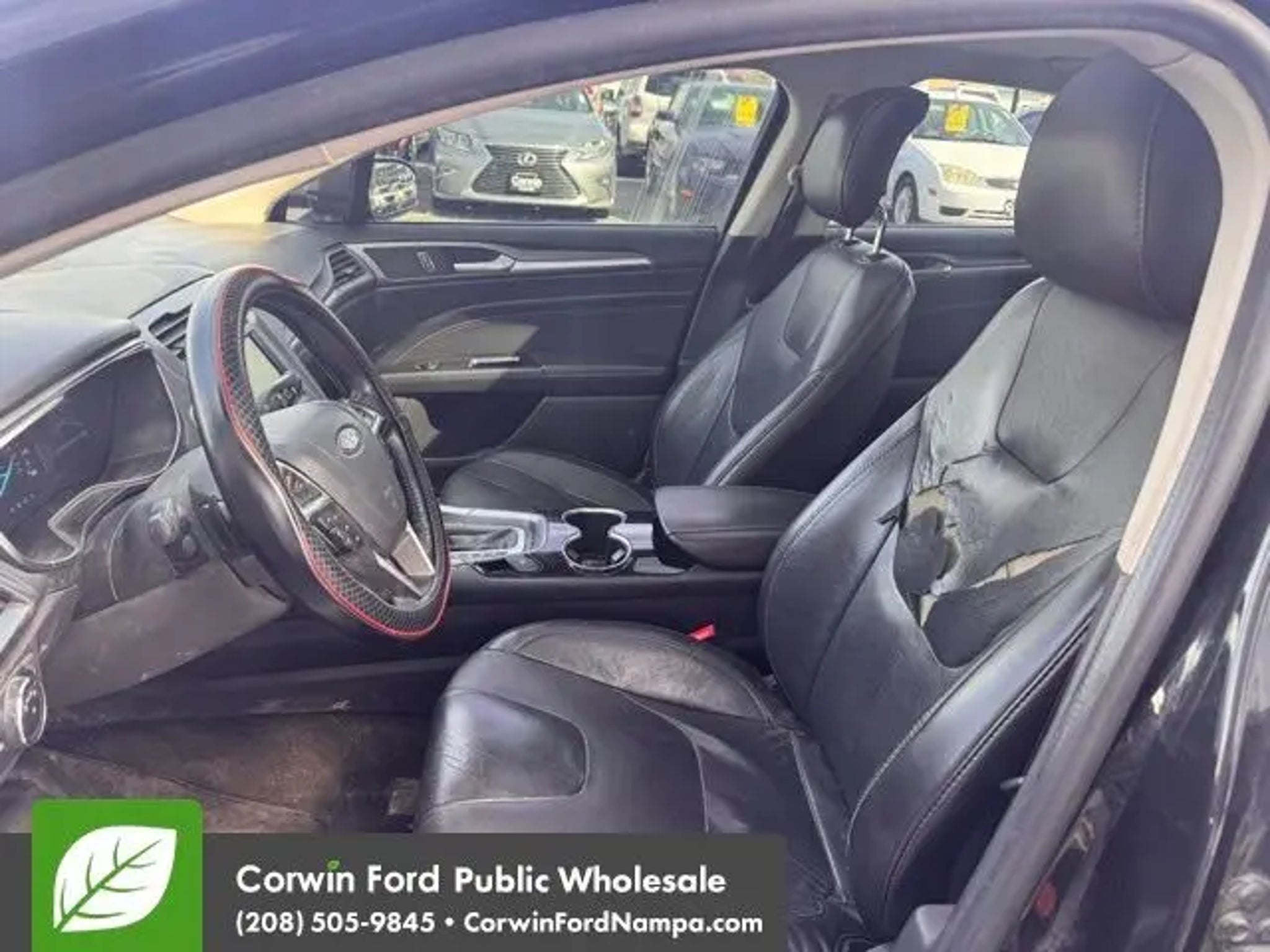 Feast your eyes on our exquisite 2014 Ford Fusion Titanium AWD Sedan shown in dramatic Tuxedo Black. Powered by a TurboCharged 2.0 Liter EcoBoost 4 Cylinder offers 240hp paired to a paddle-shifted 6 Speed SelectShift Automatic transmission. This All Wheel Drive collaboration offers an exhilarating ride with the confidence you need while achieving nearly 33mpg on the road. Fusion's elegant Titanium interior features every creature comfort you desire. You'll love the cutting-edge technology of FordSync with full-color navigation, available SiriusXM, a premium Sony 12 speaker HD audio system w/911 assist, and an incredible 8-inch central LCD touchscreen serving as your command center. Our Titanium embodies luxury with heated leather seats, ambient lighting, a leather-wrapped steering wheel, and dual temperature controls. Ford's safety innovation reigns supreme with airbags, ABS w/stability control, tire pressure monitoring, SOS post-crash alert, and MyKey. You'll also appreciate the convenience of a rearview camera, a reverse sensing system, remote start, and more. You have to get behind the wheel of this Fusion Titanium sedan to feel the vibe. Save this Page and Call for Availability. We Know You Will Enjoy Your Test Drive Towards Ownership! Corwin Ford Nampa! Friendly service and aggressive pricing is why we are your new and pre-owned vehicle dealer serving, Nampa, Boise, Meridian, Caldwell, Kuna, Eagle, Emmett, Idaho City, Wilder, New Plymouth, Star, Middleton, Weiser, Payette, Horseshoe Bend, Mountain Home, Idaho, and surrounding states.