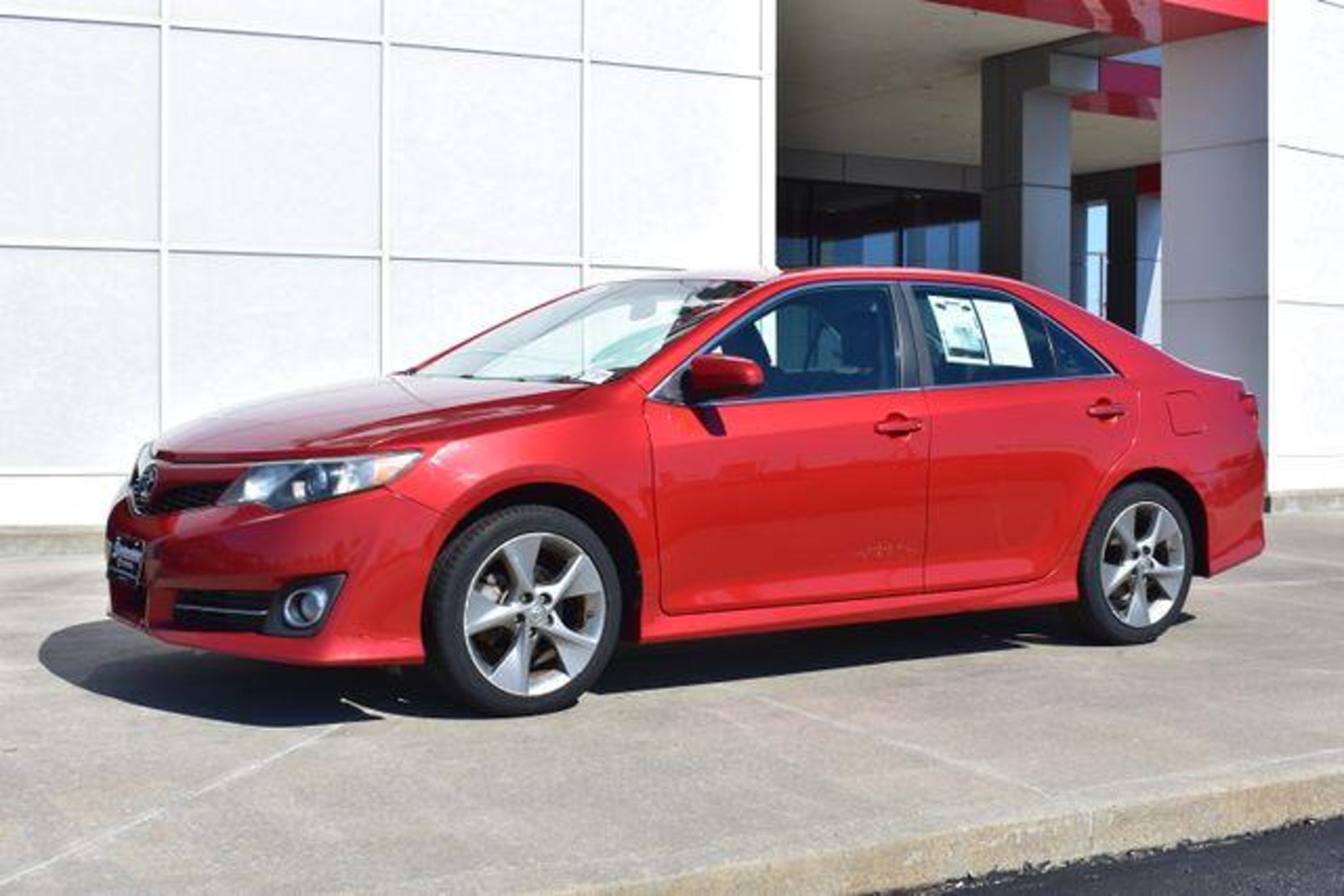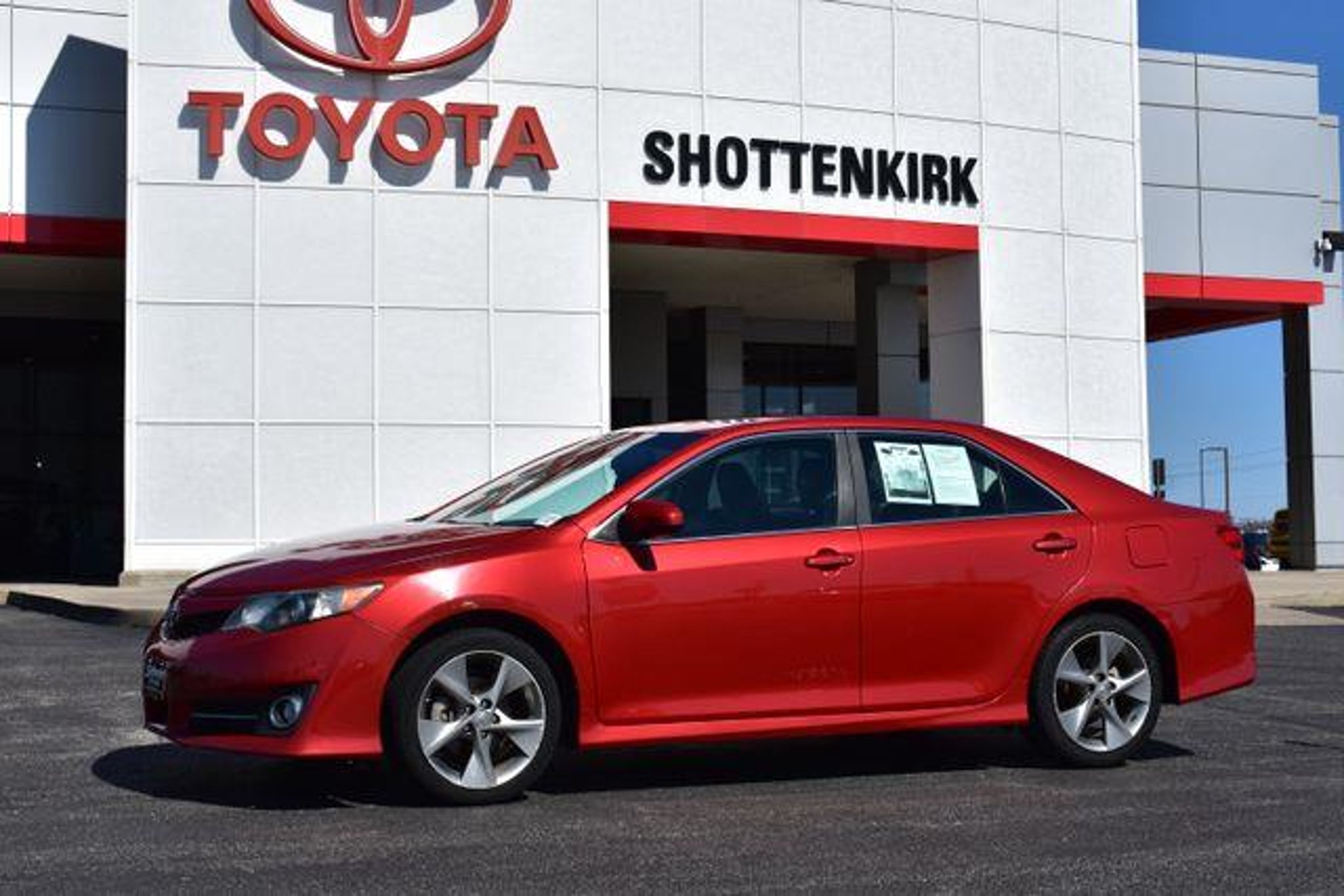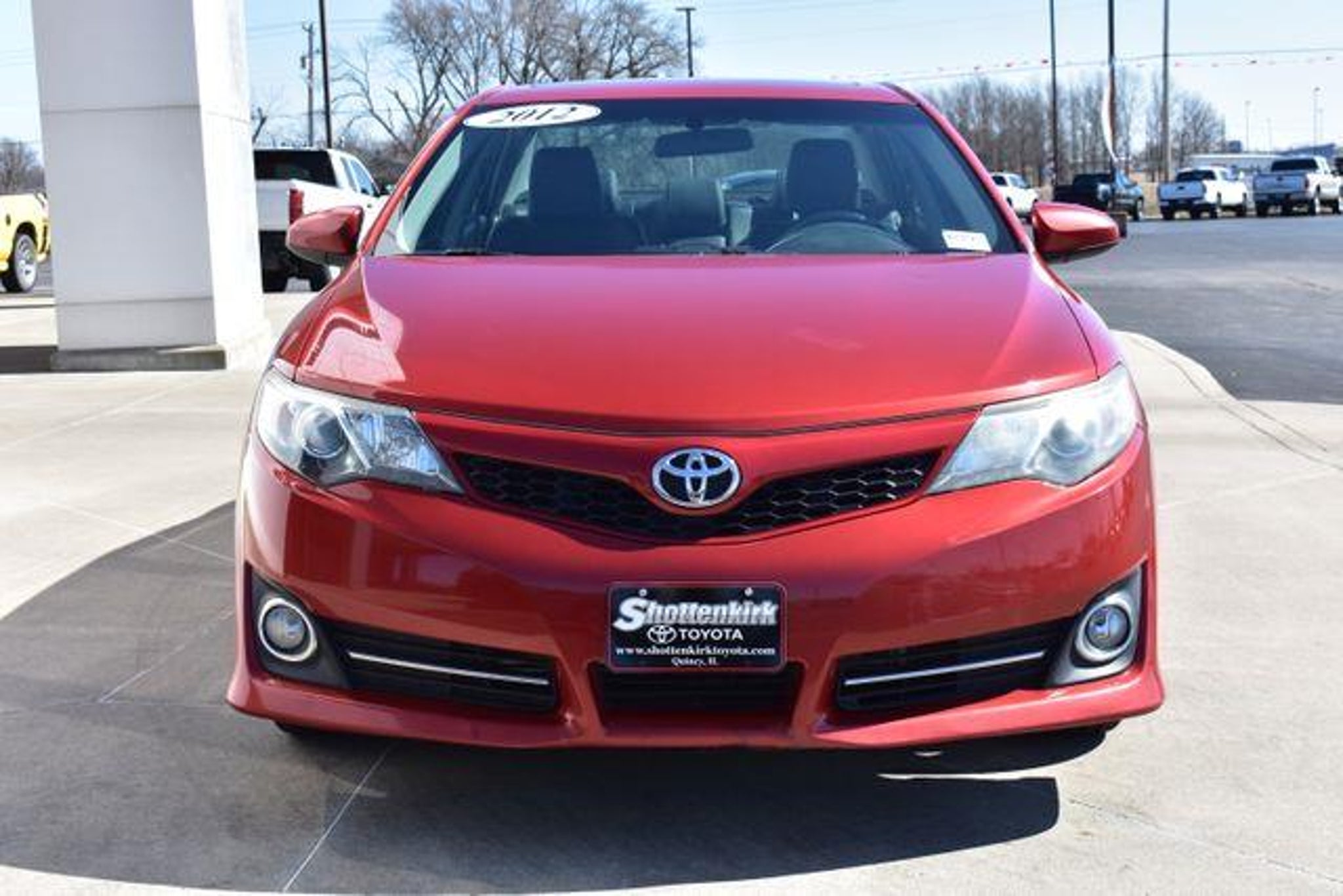 [ 2012 Toyota Camry Barcelona Red Metallic SE 2.5L I4 SMPI DOHC 6-Speed Automatic FWD Sunroof/Moonroof 6-Speed Automatic FWD Barcelona Red Metallic Black w/Fabric Seat Trim or Leather-Trimmed Ultrasuede Seats 6 Speakers ABS brakes Air Conditioning Alloy wheels AM/FM radio Bumpers: body-color CD player Driver door bin Driver vanity mirror Electronic Stability Control Fabric Seat Trim Front Bucket Seats Front Center Armrest Front reading lights Front Sport Bucket Seats Fully automatic headlights Heated door mirrors Illuminated entry Leather Shift Knob Low tire pressure warning Outside temperature display Overhead console Panic alarm Passenger door bin Passenger vanity mirror Power door mirrors Power steering Power windows Rear window defroster Remote keyless entry Speed control Split folding rear seat Spoiler Steering wheel mounted audio controls Telescoping steering wheel Tilt steering wheel Traction control. Awards: * 2012 KBB.com Best Resale Value Awards * 2012 KBB.com 10 Most Comfortable Cars Under $30 000 * 2012 KBB.com 10 Best Sedans Under $25 000 Shottenkirk Toyota of Quincy Illinois has been serving the needs of Tri-State motorists for years. Offering top notch new and used Toyota sales service and parts in a friendly environment that puts a premium on service not prices! We're proud to be a primary destination for Toyota shoppers from Jacksonville Springfield Carthage Il. Hannibal Kirksville Troy St.Louis Columbia Mo. And the Mt.Pleasant Keokuk Farmington Fort Madison Iowa areas. Whether you visit us to buy a new Toyota like a Camry Corolla Rav4 Venza Highlander Sequoia Prius Tacoma Tundra Yaris 4Runner and Sienna or an used Toyota or to get service for your existing vehicle you'll get the same impeccable service. We have an outstanding reputation for quality and a no-hassle buying experience.You may also visit us at Shottenkirk Toyota.com.] [Our Toyota dealership is happy to help drivers in Quincy, IL and surrounding areas in finding Toyota cars, trucks and SUVs for sale. We believe that after just a few moments of sifting through our abundant inventory, motorists will find the perfect vehicle for their needs. We also offer competitive finance packages and service options as well! Did we mention that most of your automotive requests can be booked entirely online? Starting online can save you lots of valuable time. Our website will serve you well if you're looking to apply for financing, schedule a service appointment, or browse service specials. ]