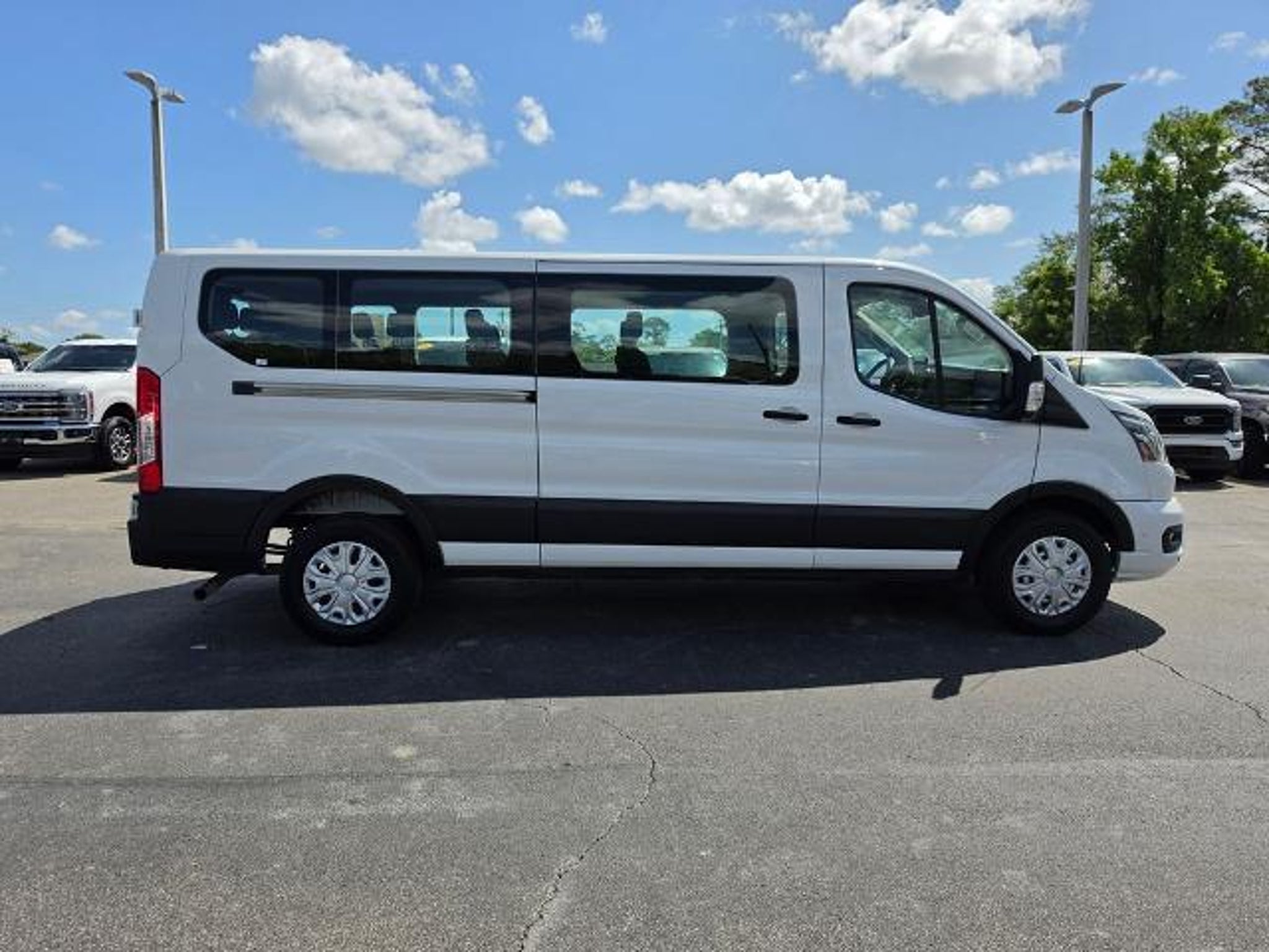 Discover the versatility and capability of the 2023 Ford Transit-350 XLT. This impressive van is ready to take on your toughest tasks with its exceptional performance and thoughtful features. - Back Up Alarm with 102 dB(A) warning capability - 15-Passenger Seating with 1st row: 2 seats, 2nd row: 3 seats, 3rd row: 3 seats, 4th row: 3 seats and 5th row: 4 seats - Order Code 302A Indulge in the convenience of the Radio: AM/FM Stereo w/SYNC 4 & Nav, along with the comfort of the Cloth Front Bucket Seats and the versatility of the 3.73 Axle Ratio. Stay connected and in control with the Electronic Air Temperature Control and the Steering Wheel Mounted Audio Controls. Experience the ultimate in safety and security with features like the Front Sensing System, Reverse Sensing System, Side Sensing System, and the powerful Brake Assist. Enjoy the added peace of mind provided by the Electronic Stability Control and Traction Control systems. Elevate your driving experience with the convenience of the Remote Keyless Entry, the Power Windows, and the Power Door Mirrors. Stay well-lit with the Fully Automatic Headlights and the Front Fog Lamps, while the Variably Intermittent Wipers ensure clear visibility in any weather. Discover the perfect blend of functionality and style with the 16 Steel Wheels with Full Silver Cover. Indulge in the comfort of the Tilt and Telescoping Steering Wheel, and the Driver's Seat Mounted Armrest. This 2023 Ford Transit-350 XLT is ready to take on your toughest challenges. Experience the power, versatility, and uncompromising quality that only a Ford can deliver. Visit our showroom today and let us help you find the perfect vehicle for your needs. The listed online price reflects a $1,000 finance incentive and a $1,000 qualifying retail trade-in incentive; absence of either or both incentives will result in an increase of up to $2,000 to the final sale price.