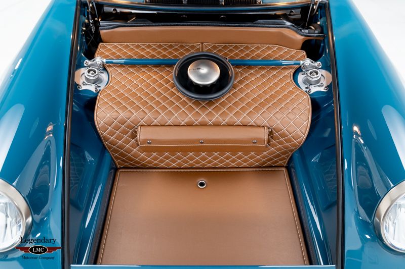 LMC is very proud to offer for sale this 1990 Porsche 911 Reimagined by Singer “Classic Study” known as “The Michigan Commission.” Representing one of the final Classic Study restorations completed by Singer, this bespoke creation blends air-cooled heritage with modern engineering at the highest level. With close to $300,000 USD in factory options and showing just 381 miles from new, it is offered today by its original commissioning owner in virtually as-delivered condition—an exceptionally rare opportunity to acquire one of the last and most comprehensively specified Classic Studies ever produced. Every Singer begins as a steel unibody 964-generation 911, stripped to bare metal and reinforced before being fitted with lightweight carbon-fiber bodywork. This example is finished in striking Michigan Blue, accented by subtle ghosted stripes and contrasting orange “PORSCHE” side script, a combination that perfectly captures the balance between elegance and motorsport intent. The iconic long-hood profile, center-exit exhaust, and meticulously detailed brightwork reflect Singer’s obsessive approach to craftsmanship and proportion. The cabin is a masterclass in bespoke design. Upholstered in rich Cognac leather with contrasting Alabaster stitching, the interior exudes warmth and refinement while retaining a purposeful sporting character. Every surface—from the dash to the seat bolsters—has been hand-finished to Singer’s exacting standards, combining classic Porsche cues with contemporary materials and ergonomics. Mechanically, “The Michigan Commission” is specified with Singer’s coveted 4.0-litre naturally aspirated flat-six, delivering thrilling performance, razor-sharp throttle response, and an unmistakable air-cooled soundtrack. The engine is enhanced by the visually stunning and performance-focused velocity stack intake system, paired with the optional 6-speed manual gearbox for precise driver engagement. Handling is elevated through Öhlins adjustable suspension, while immense stopping power is provided by Brembo carbon ceramic brakes—a rare and highly desirable specification within the Classic Study program. Further performance and functional upgrades include a titanium exhaust system, reducing weight while amplifying the engine’s signature note, and a hood center-fill fuel tank, a motorsport-inspired detail that underscores the car’s competition-bred character. Notably, the entire car received full paint protection film (PPF) application by Singer prior to delivery, preserving its flawless finish from day one. With such low mileage, singular ownership, and a specification nearing the pinnacle of what was available through the Classic Study program, this 1990 Singer 911 represents far more than a restored Porsche—it is a hand-built, coachcrafted interpretation of the ultimate air-cooled 911. For the discerning collector, it presents a rare chance to secure one of the final Classic Studies in virtually as-new condition, finished in a distinctive and highly curated color combination that ensures it stands apart in any world-class collection.